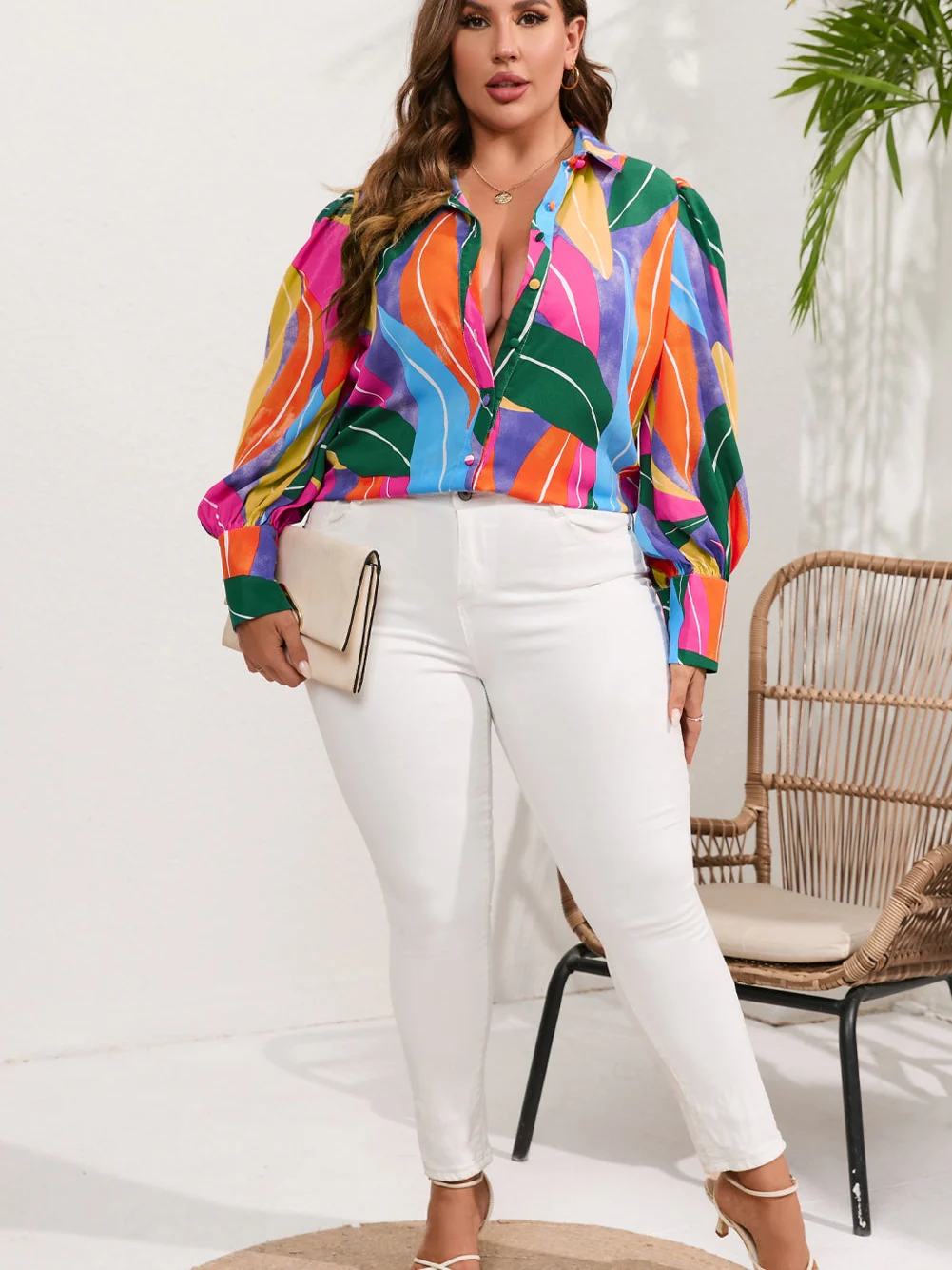 Multicolor Flora Print Plus Size Shirt