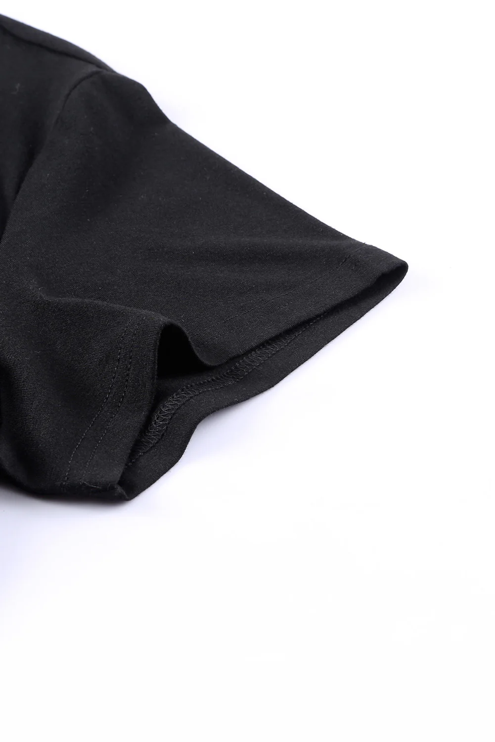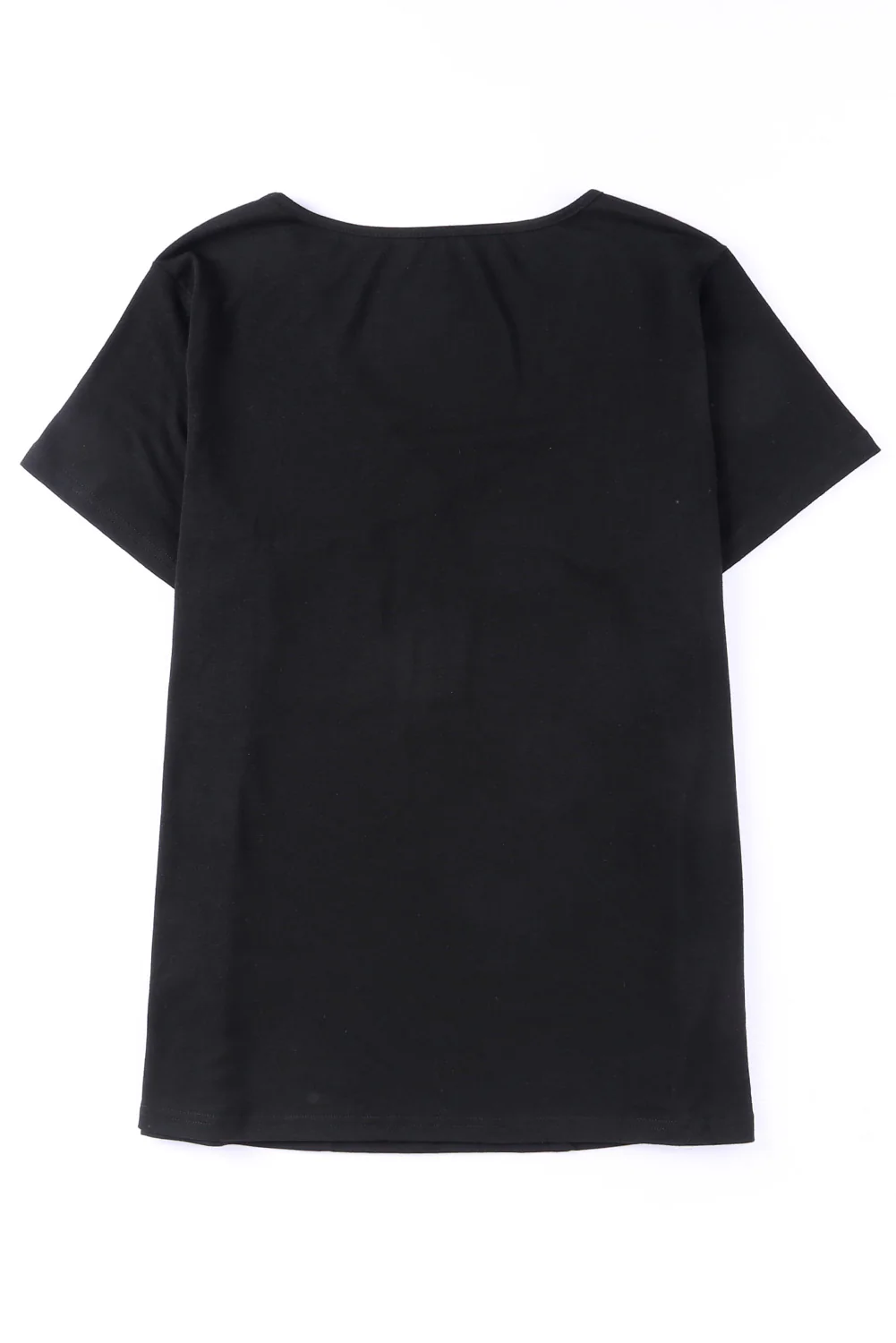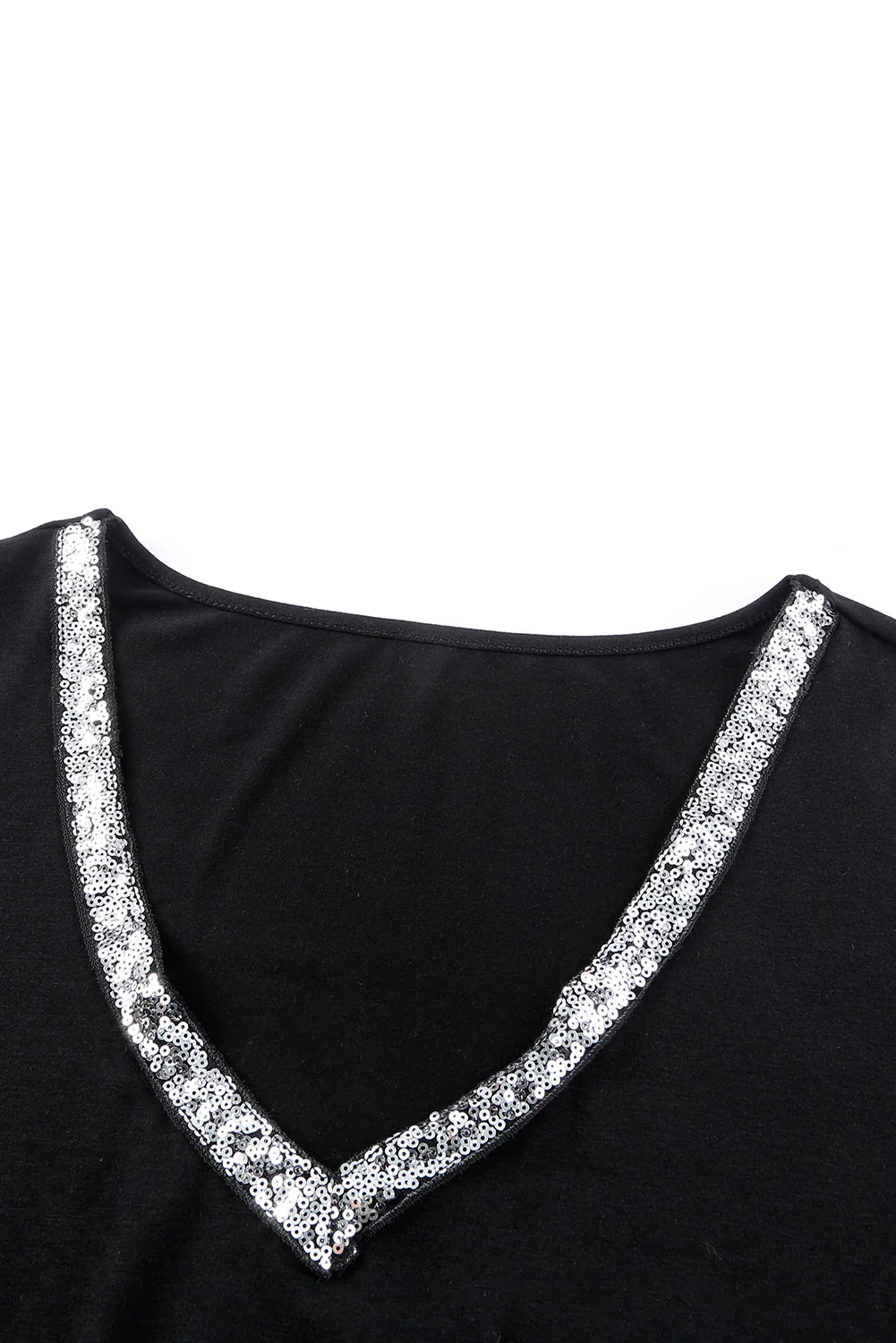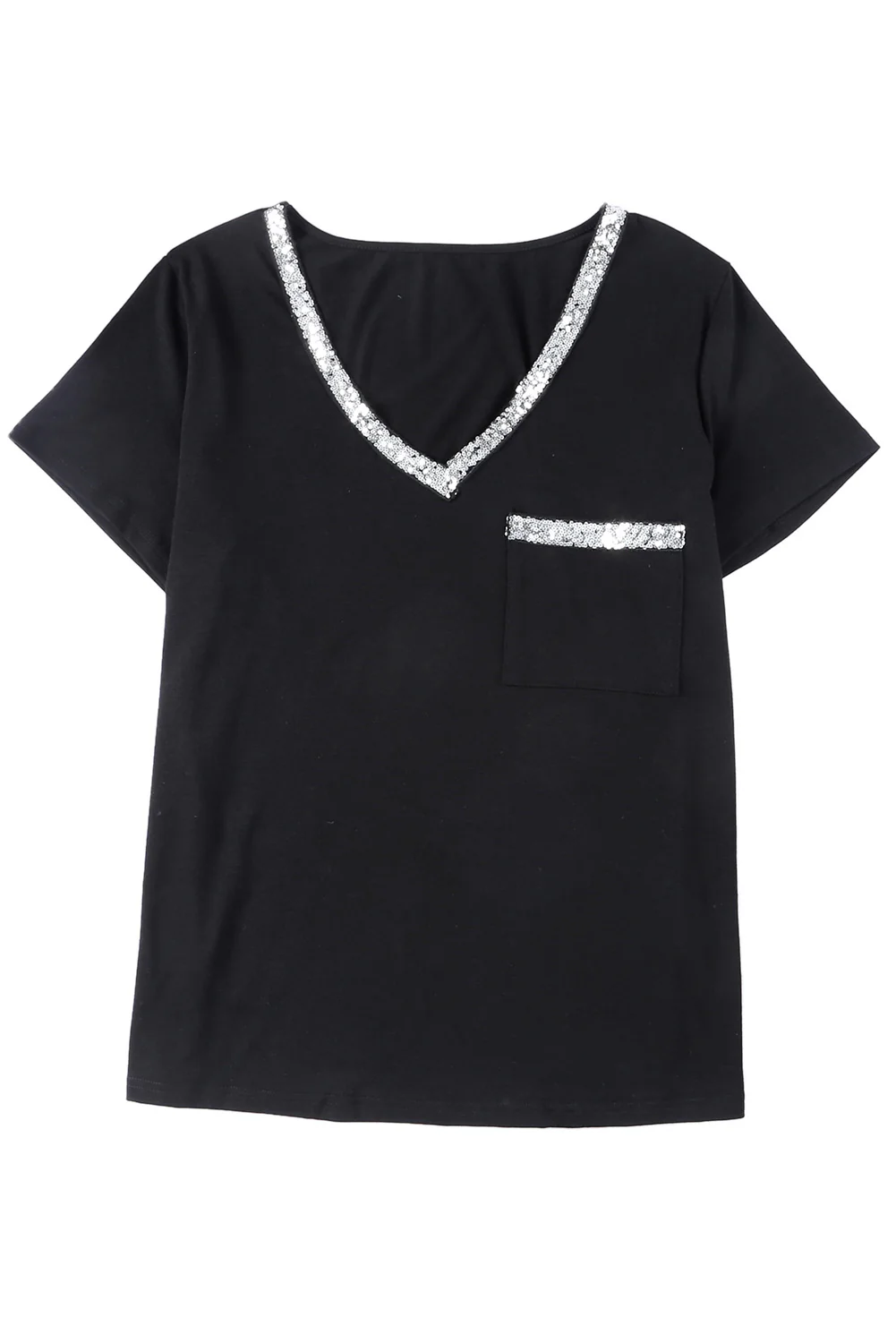 Black Sequin Trim V Neck Chest Pocket Plus Size Tee