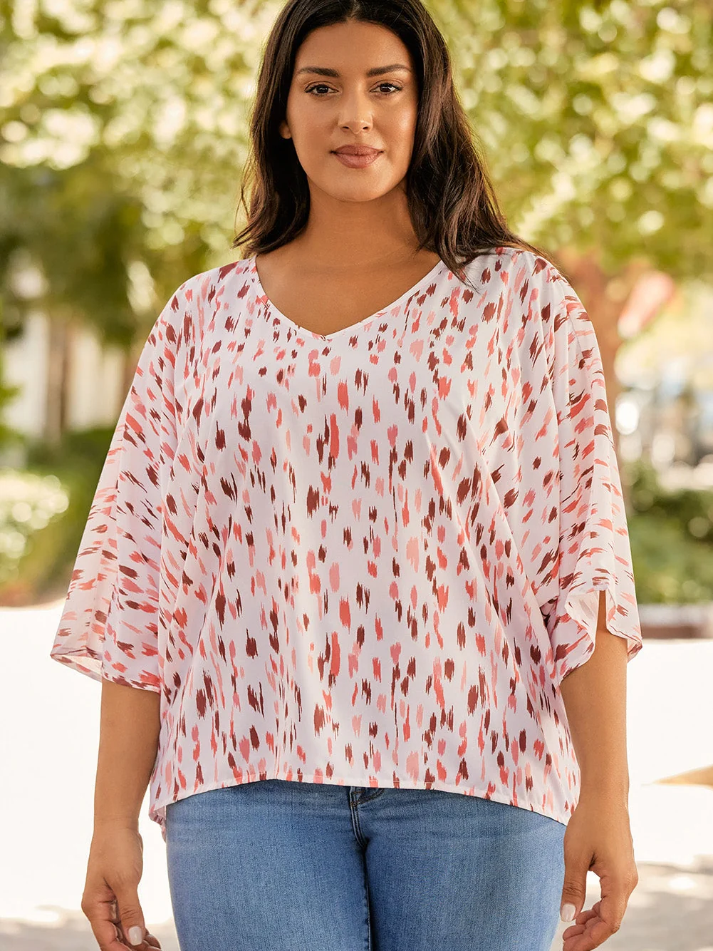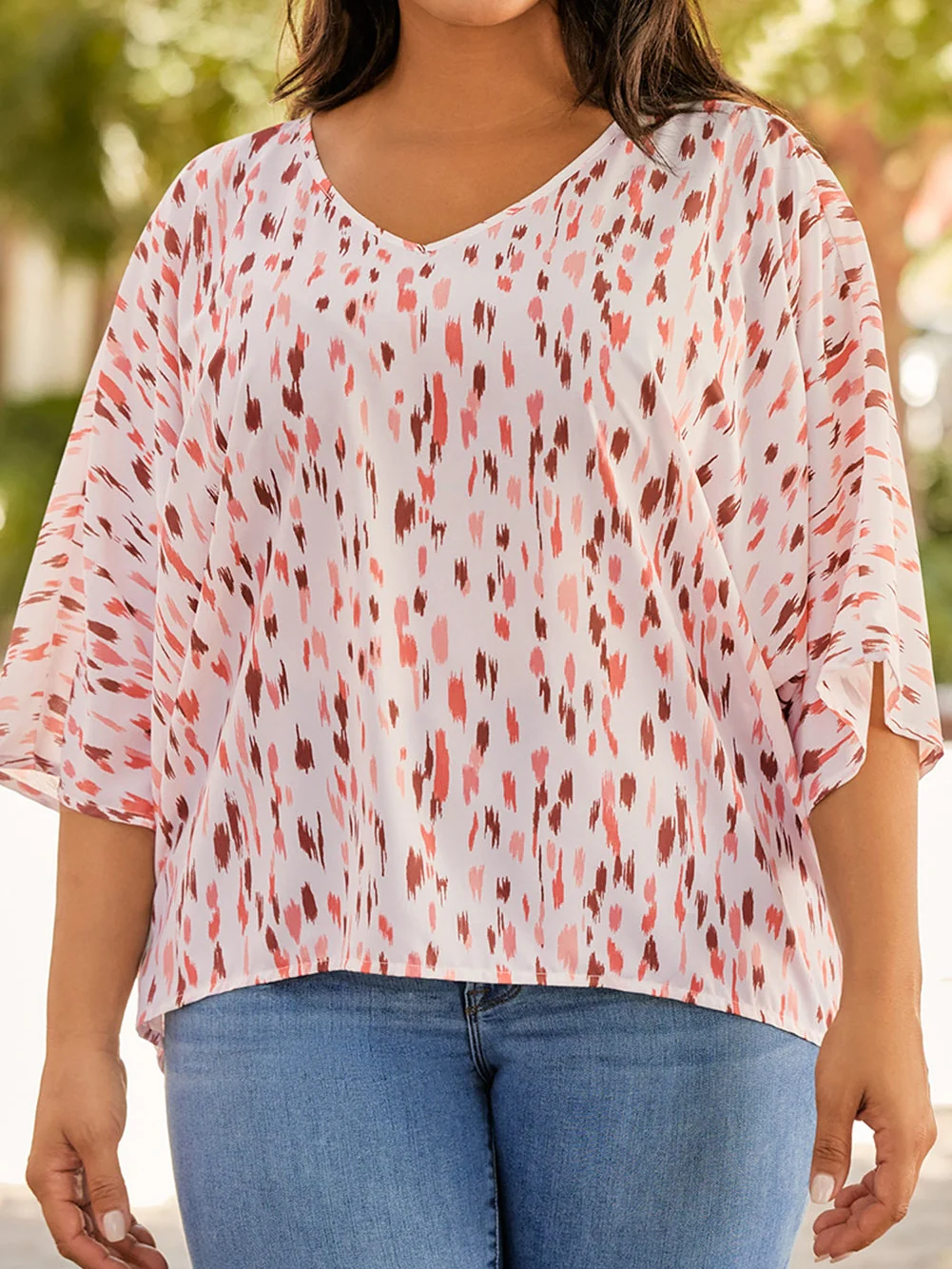 Pink Leopard Print Oversized Dolman Sleeve Plus Size Blouse