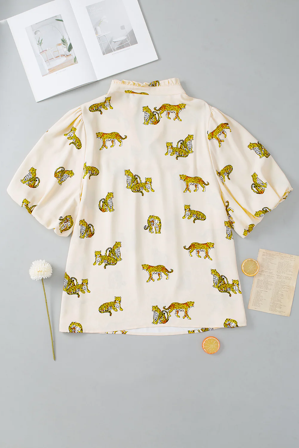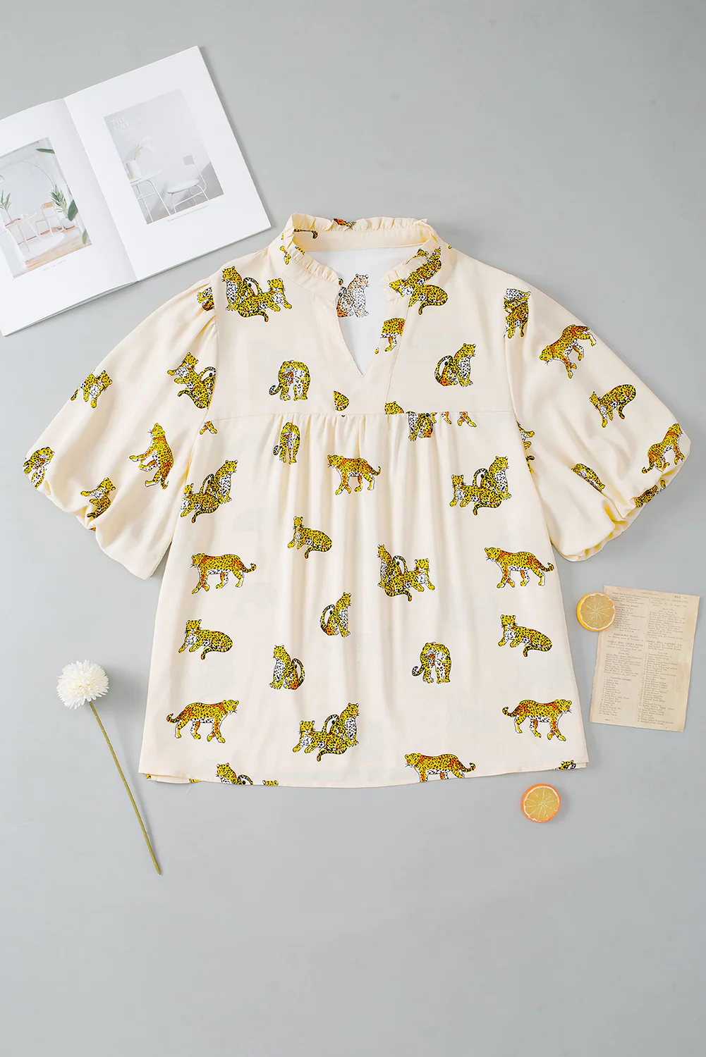 Wild Cheetah Print Beige Plus Size Puff Sleeve Blouse