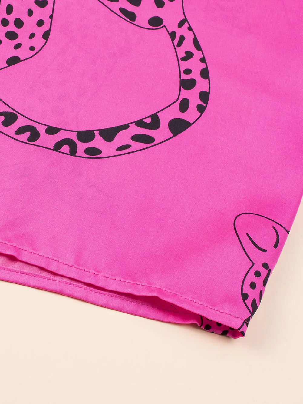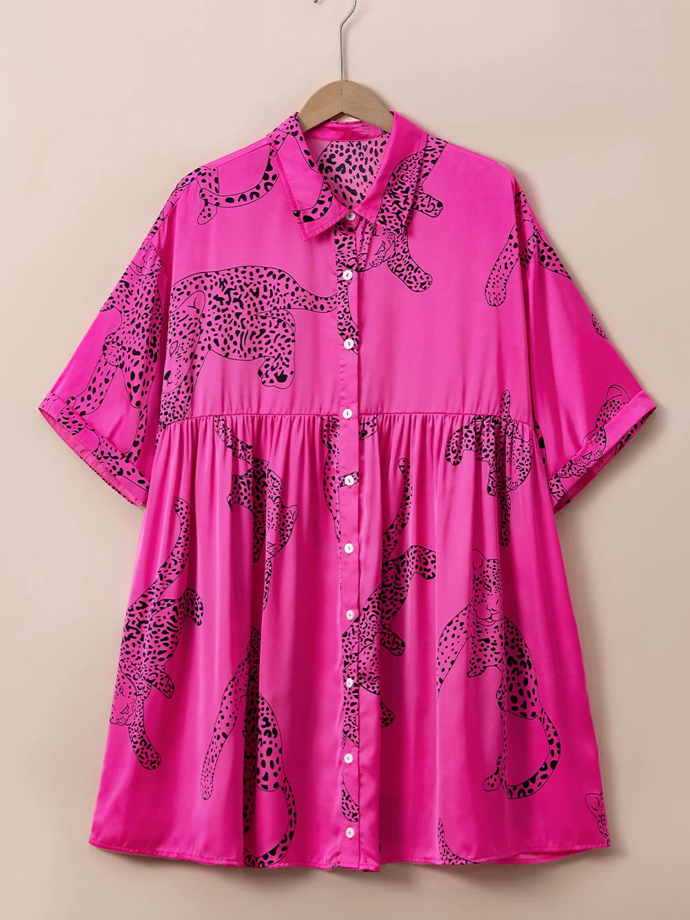 Rose Cheetah Print Half Sleeve Buttoned Plus Size Mini Dress
