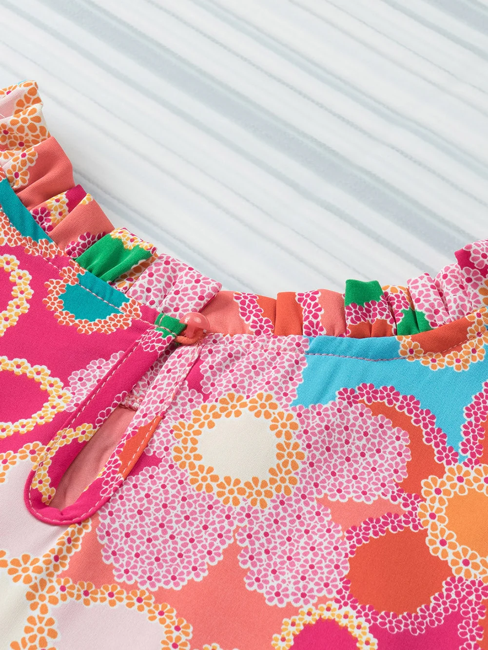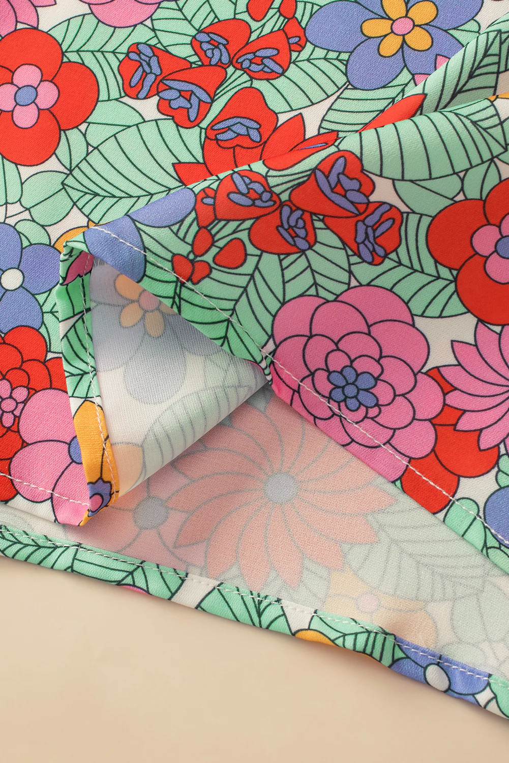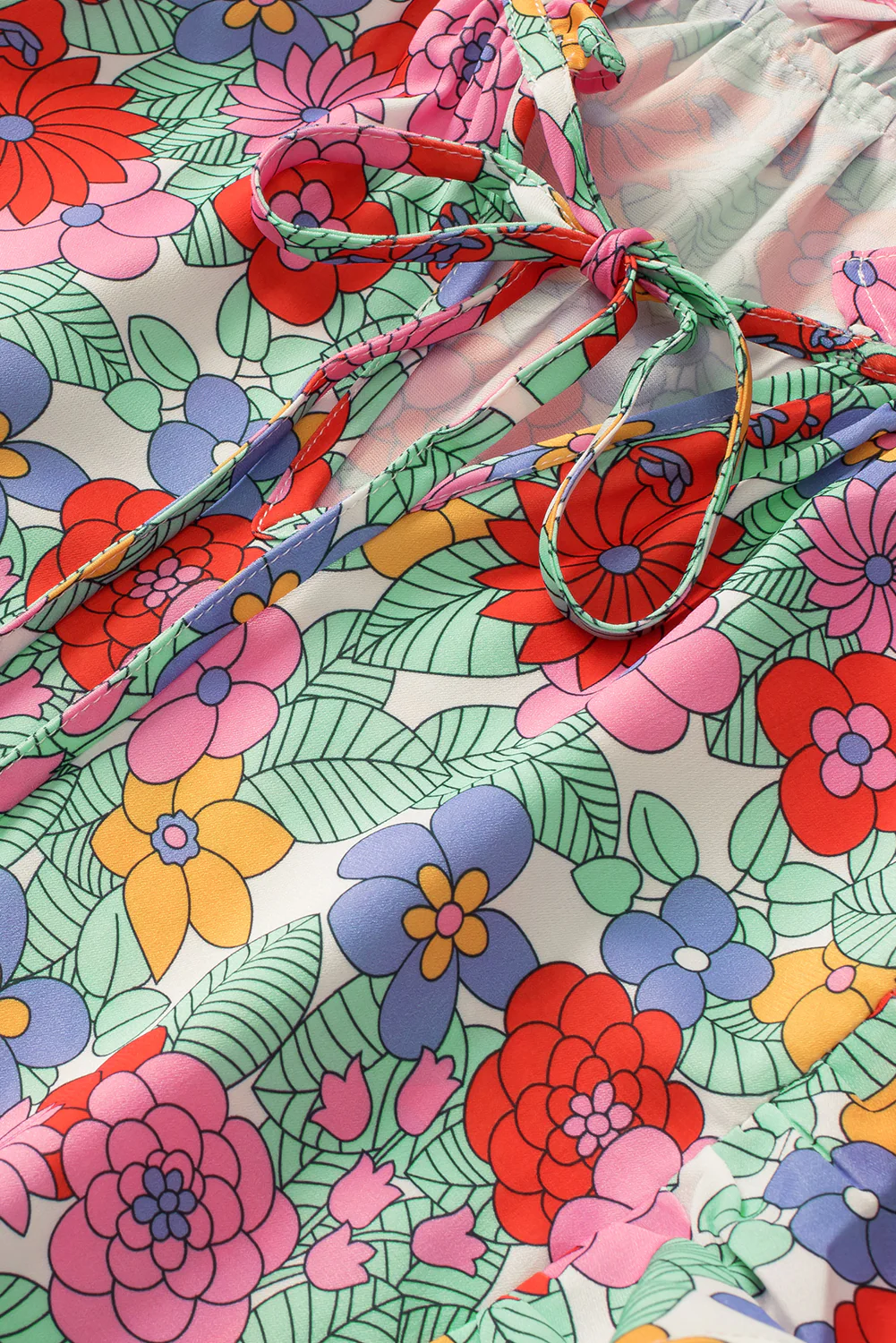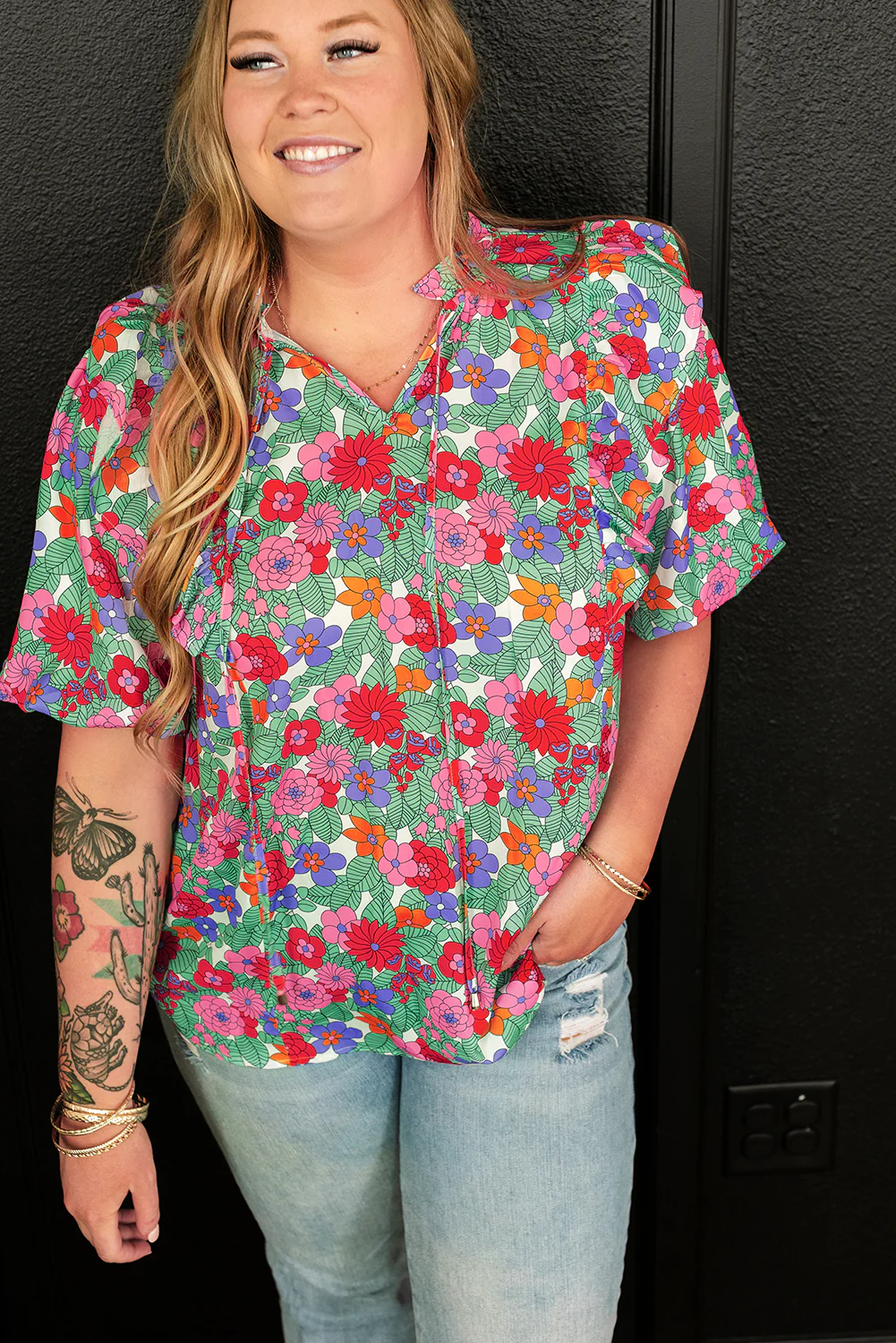 Multicolour Plus Size Floral Print Ruffle V Neck Bubble Sleeve Blouse
