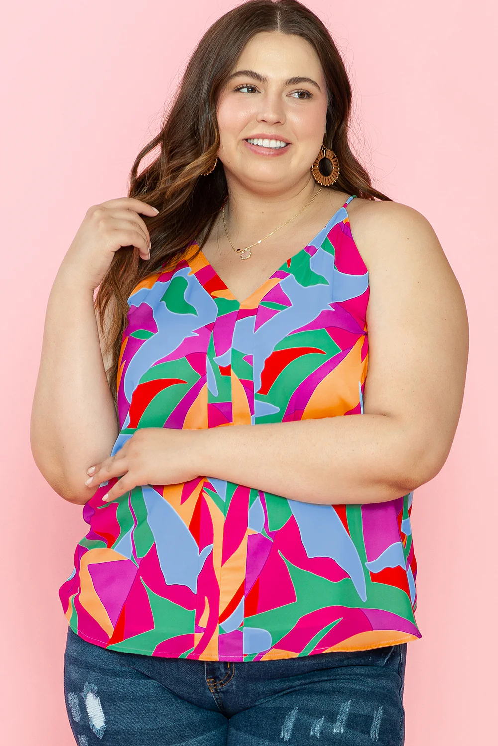Multicolour Plus Size Abstract Print V Neck Racerback Tank Top