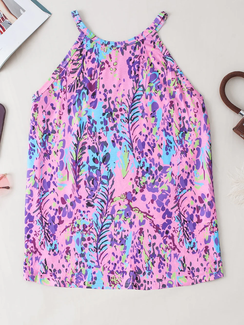 Multicolor Floral Print Round Neck Plus Size Tank Top