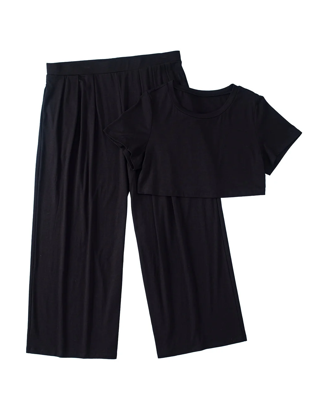 Black Plus Size Crop T-Shirt and Pleated Wide Leg Pants Set