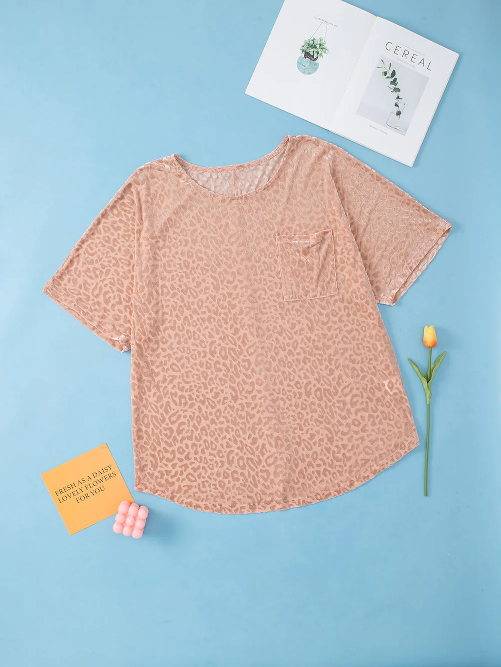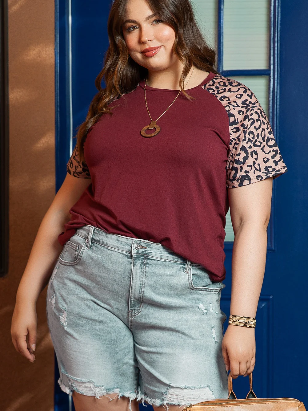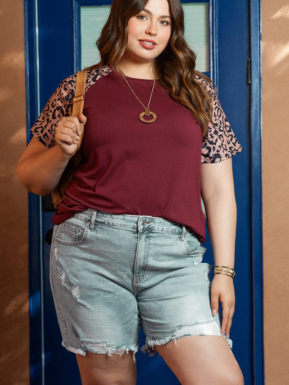Plus Size Khaki Leopard Print V-Neck T-shirt