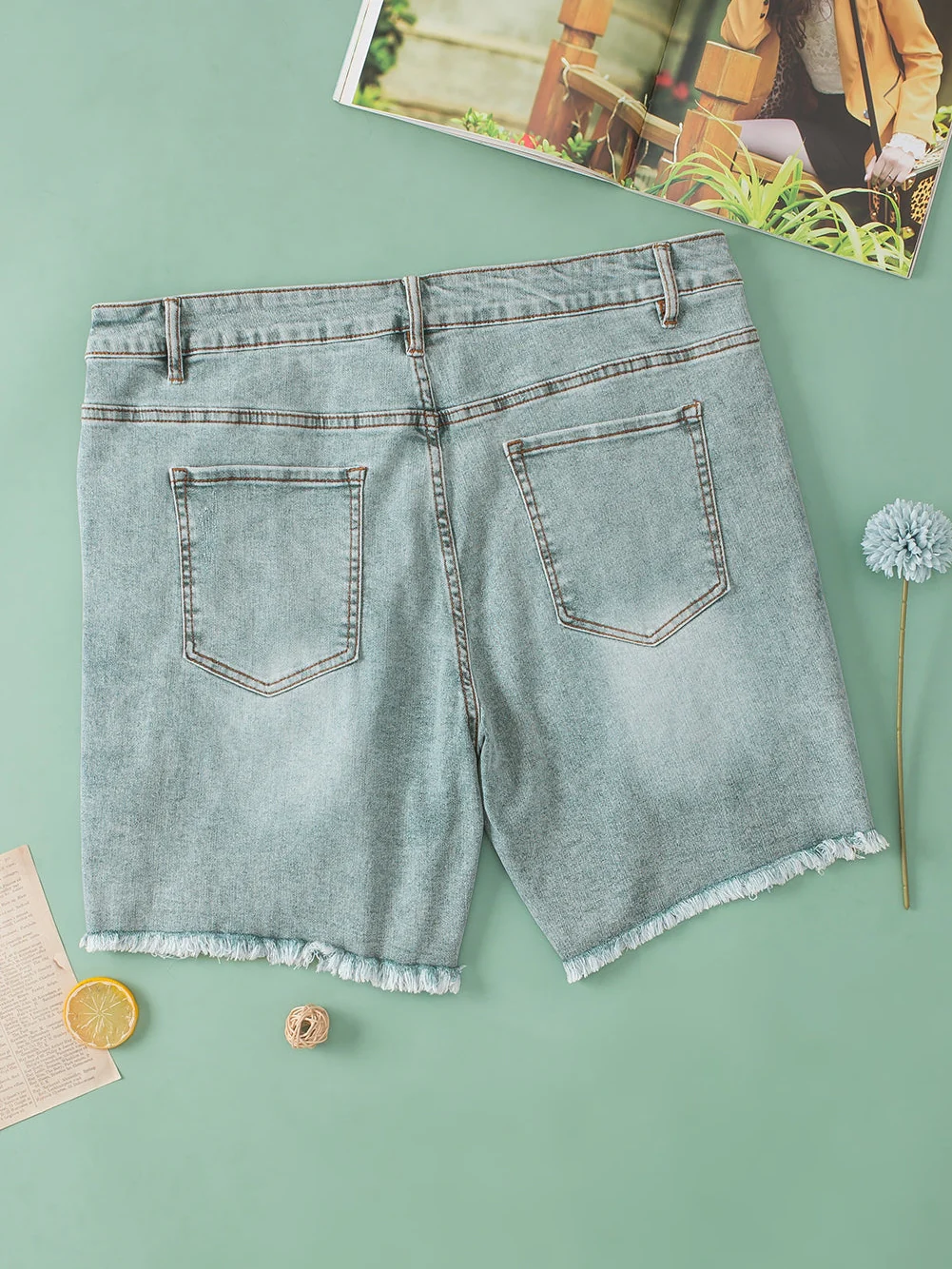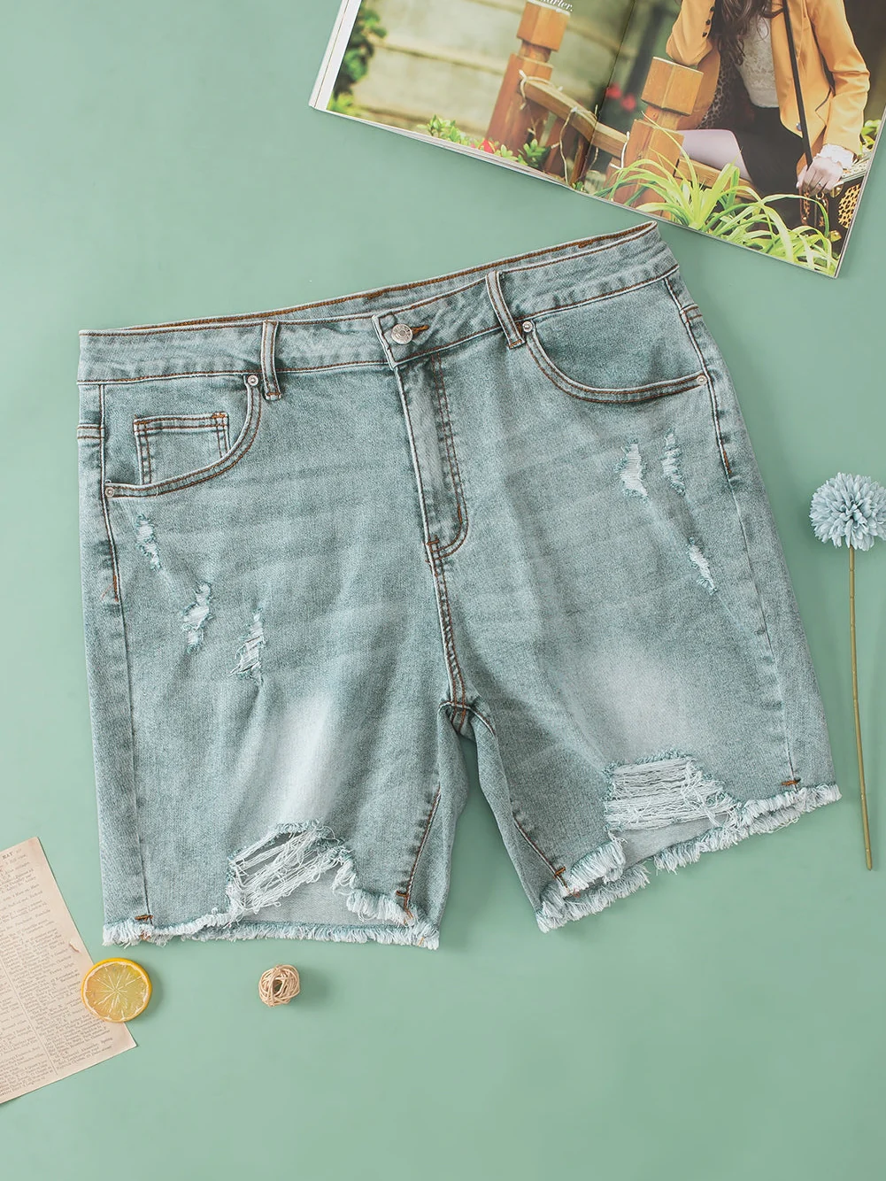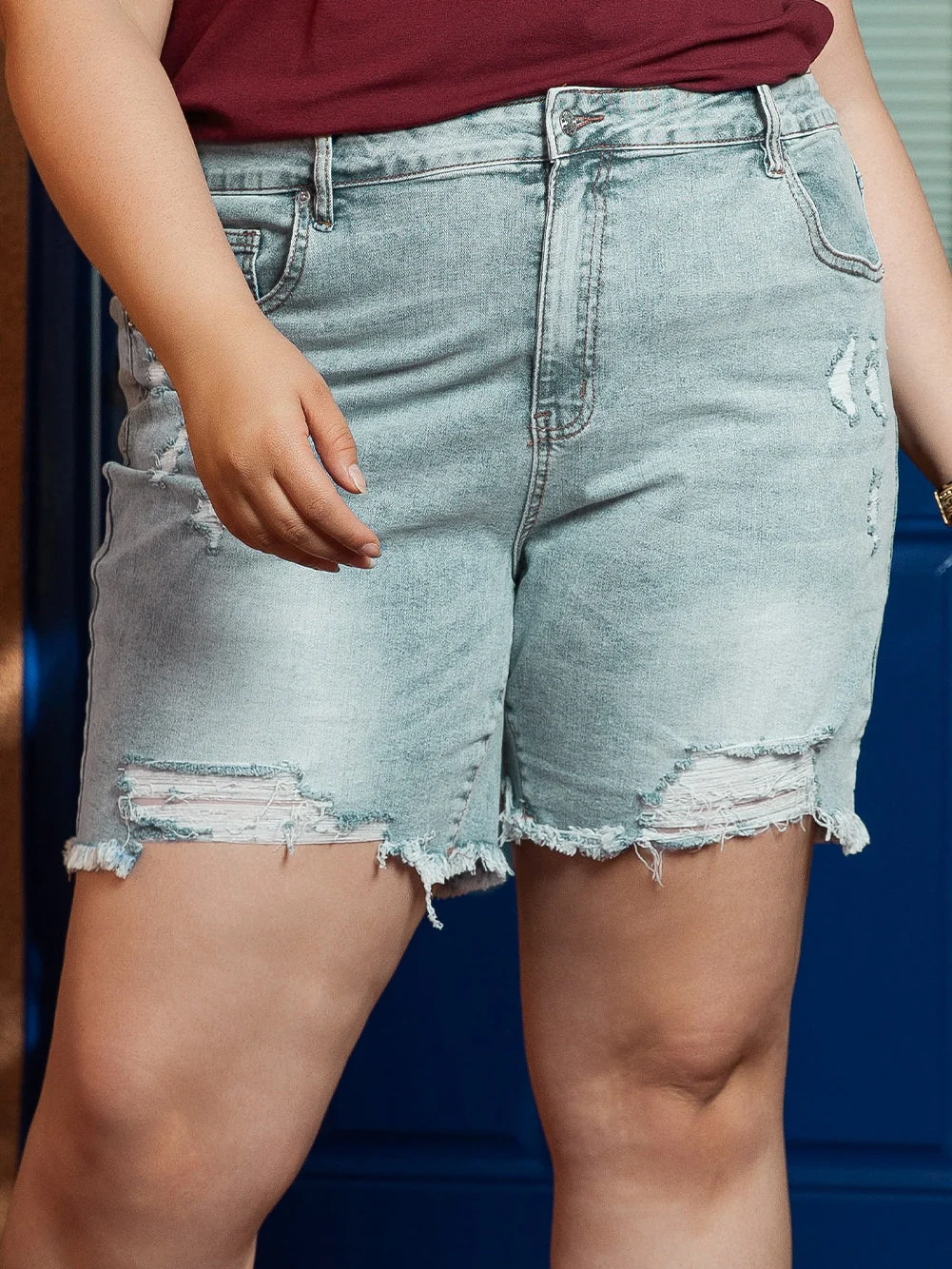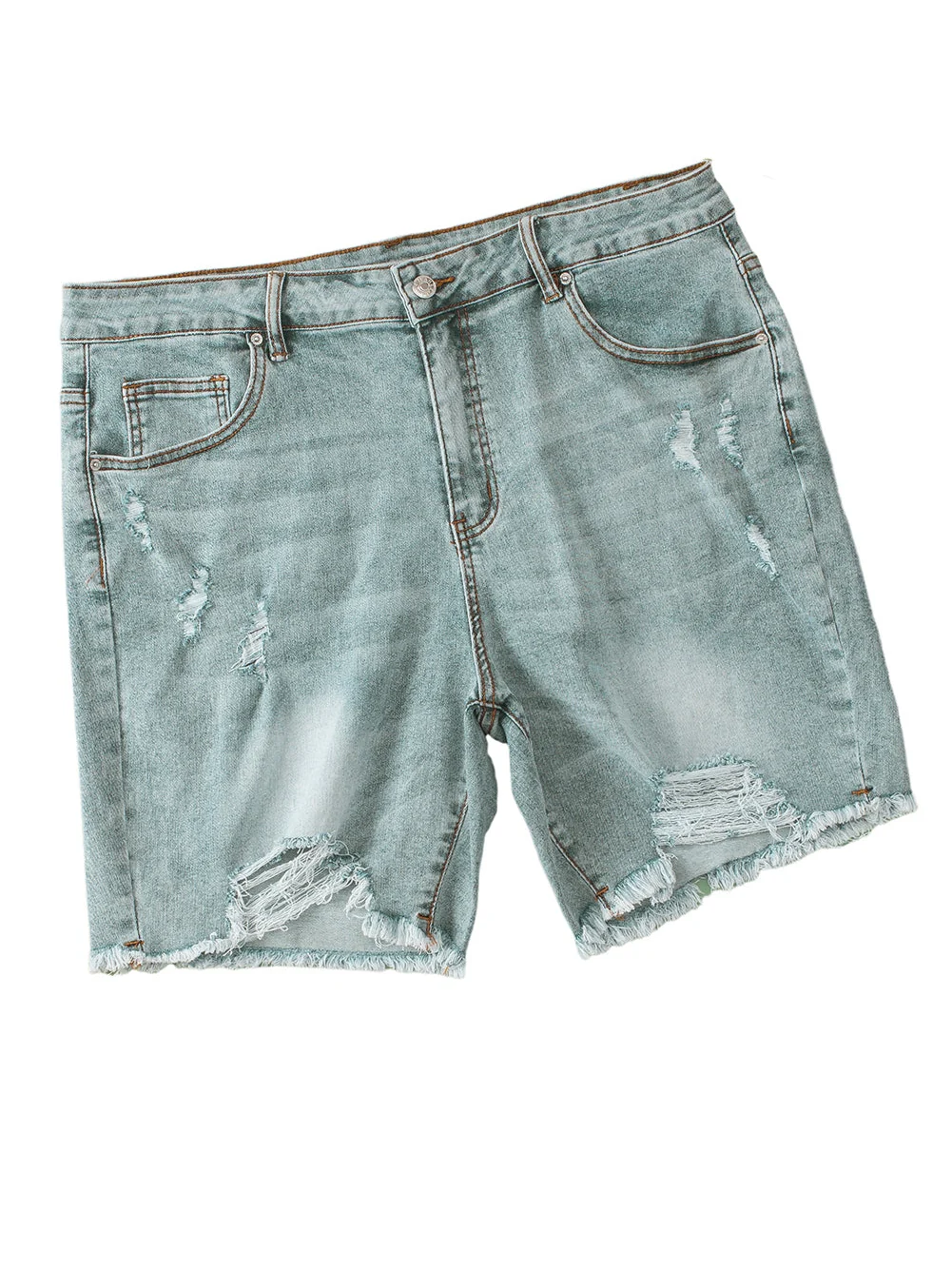 Light Blue Plus Size Distressed Rolled Hem Denim Shorts