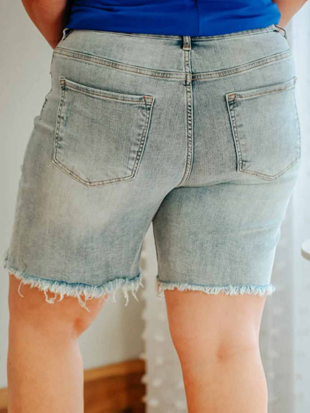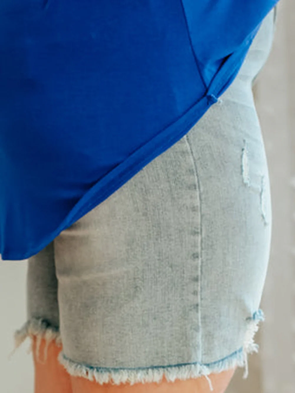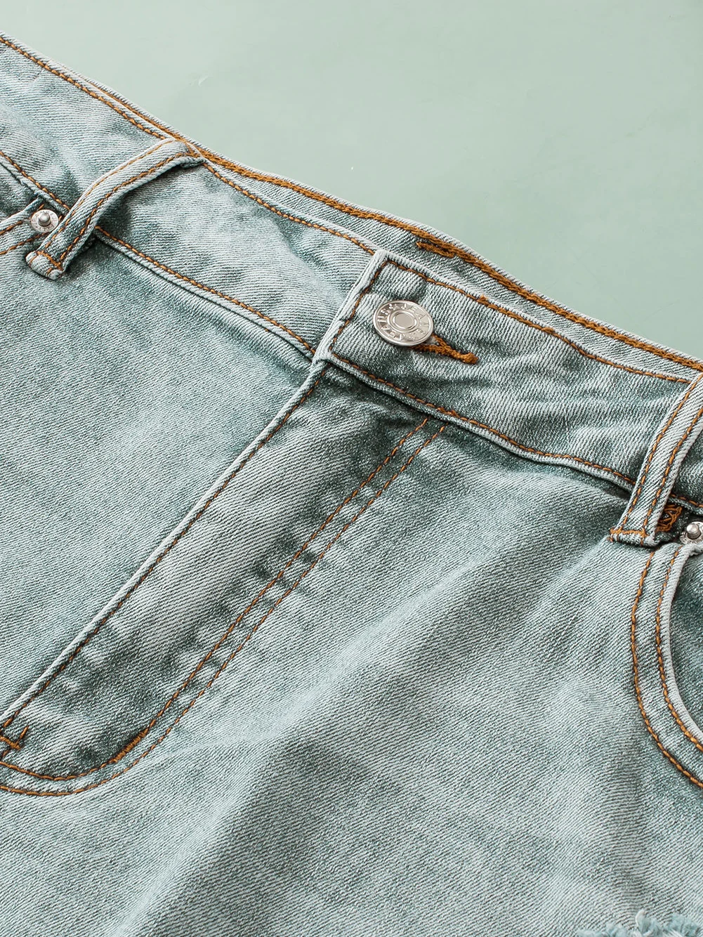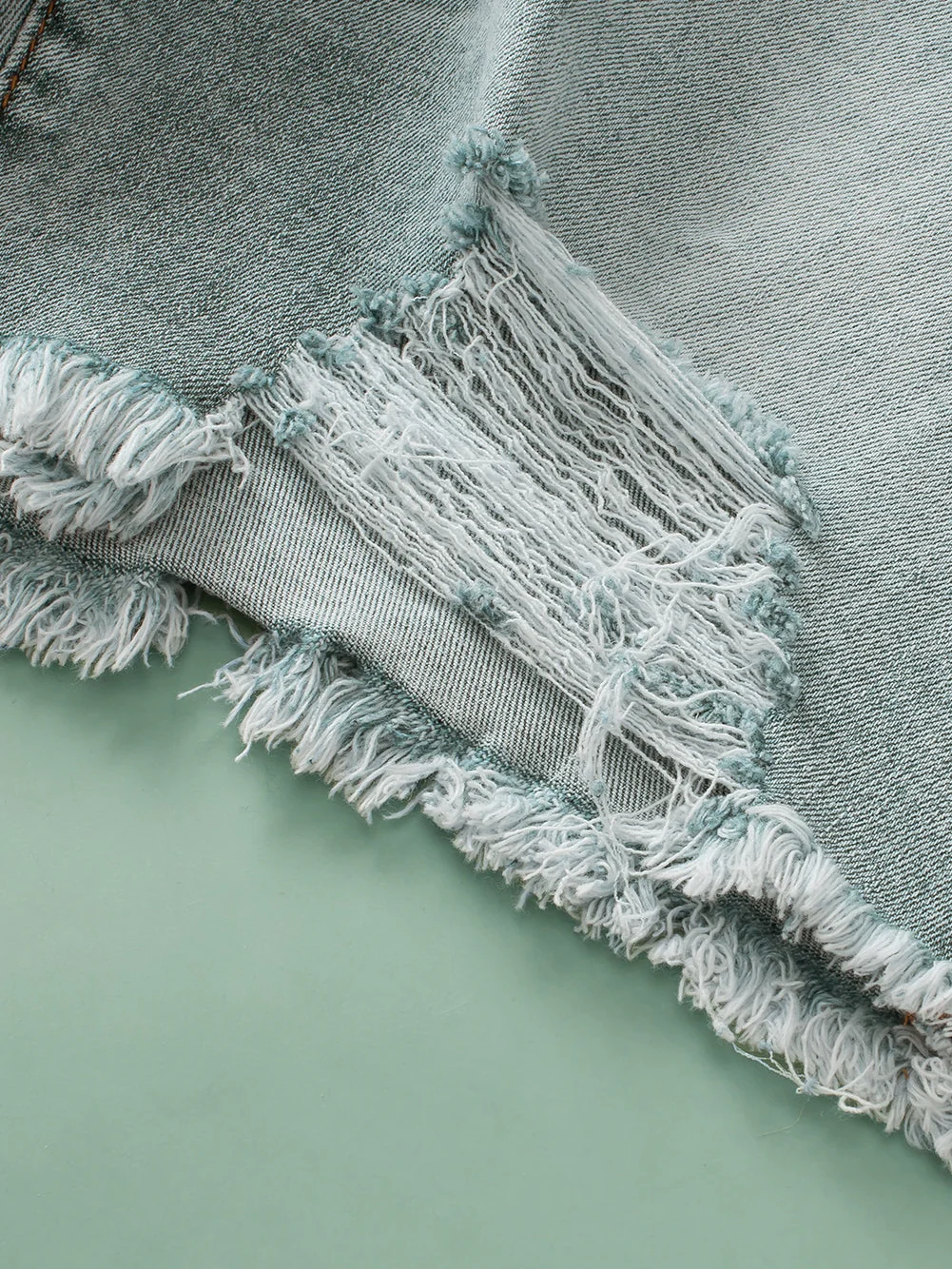 Light Blue Plus Size Distressed Rolled Hem Denim Shorts