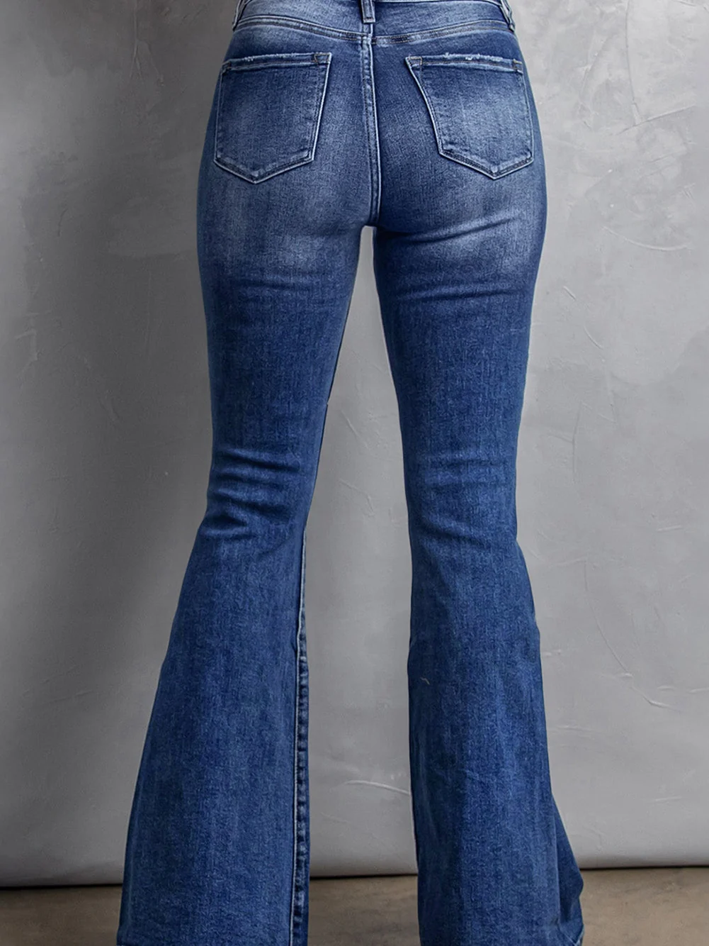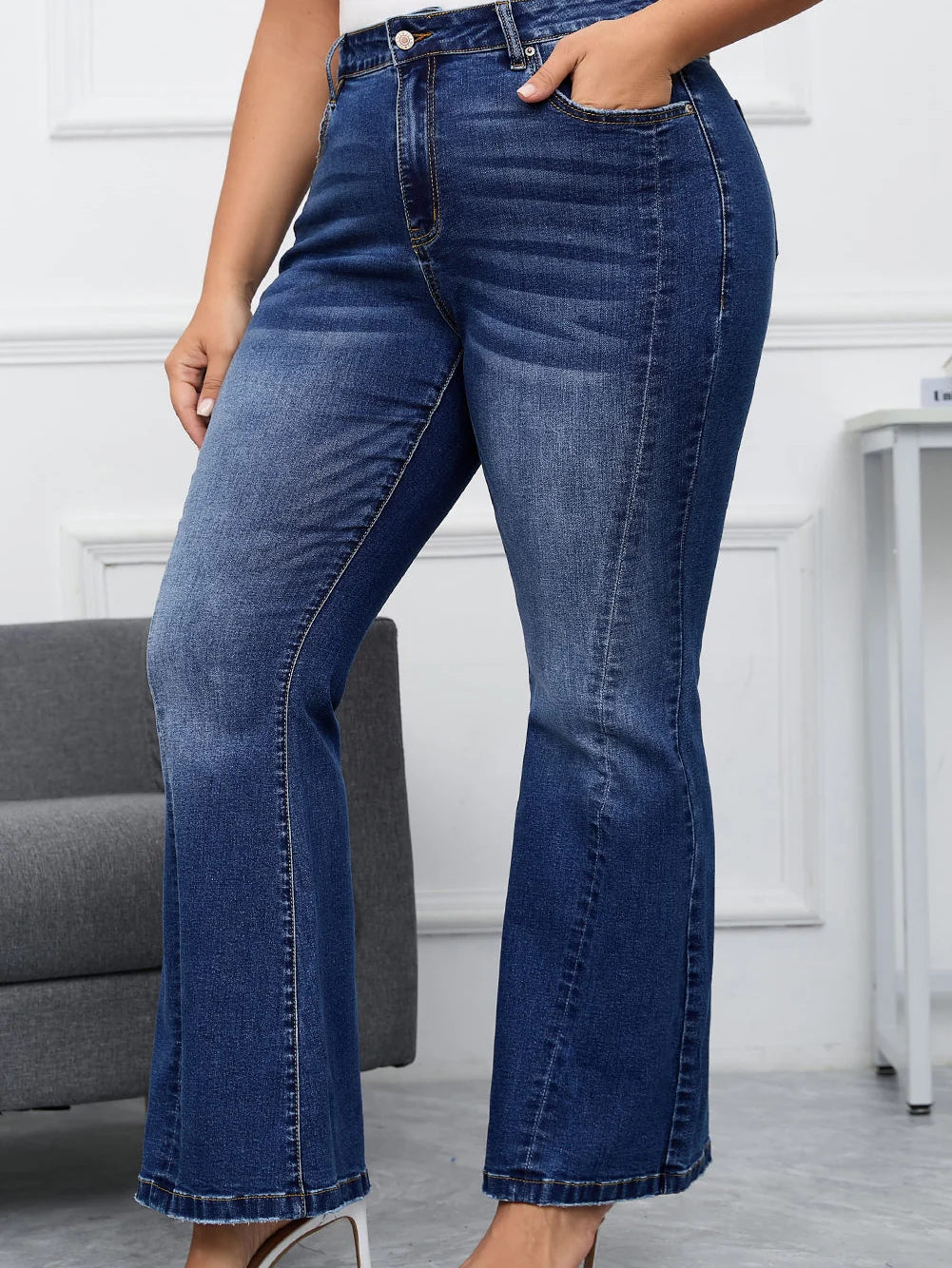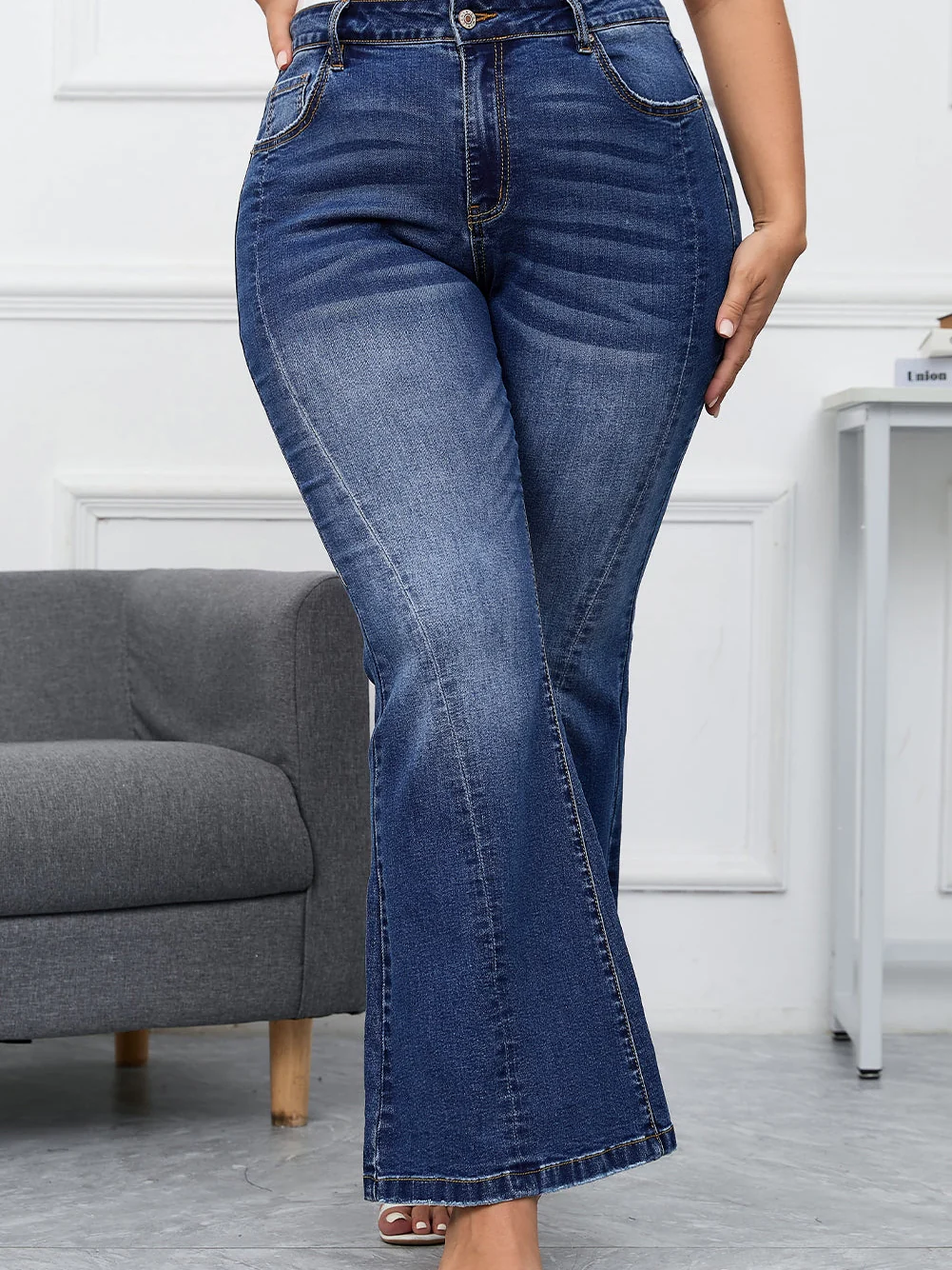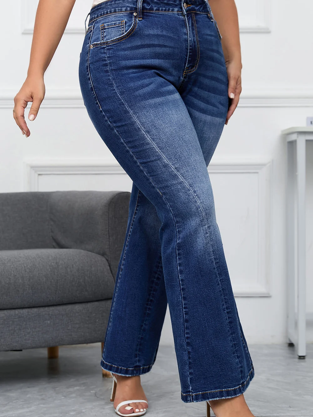 Vintage Washed Blue Flared Denim Jeans for Plus Size Women