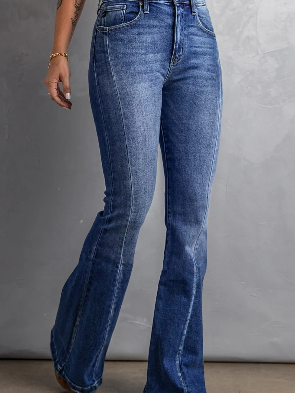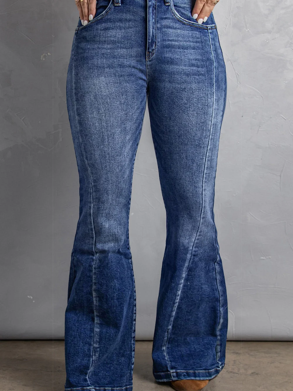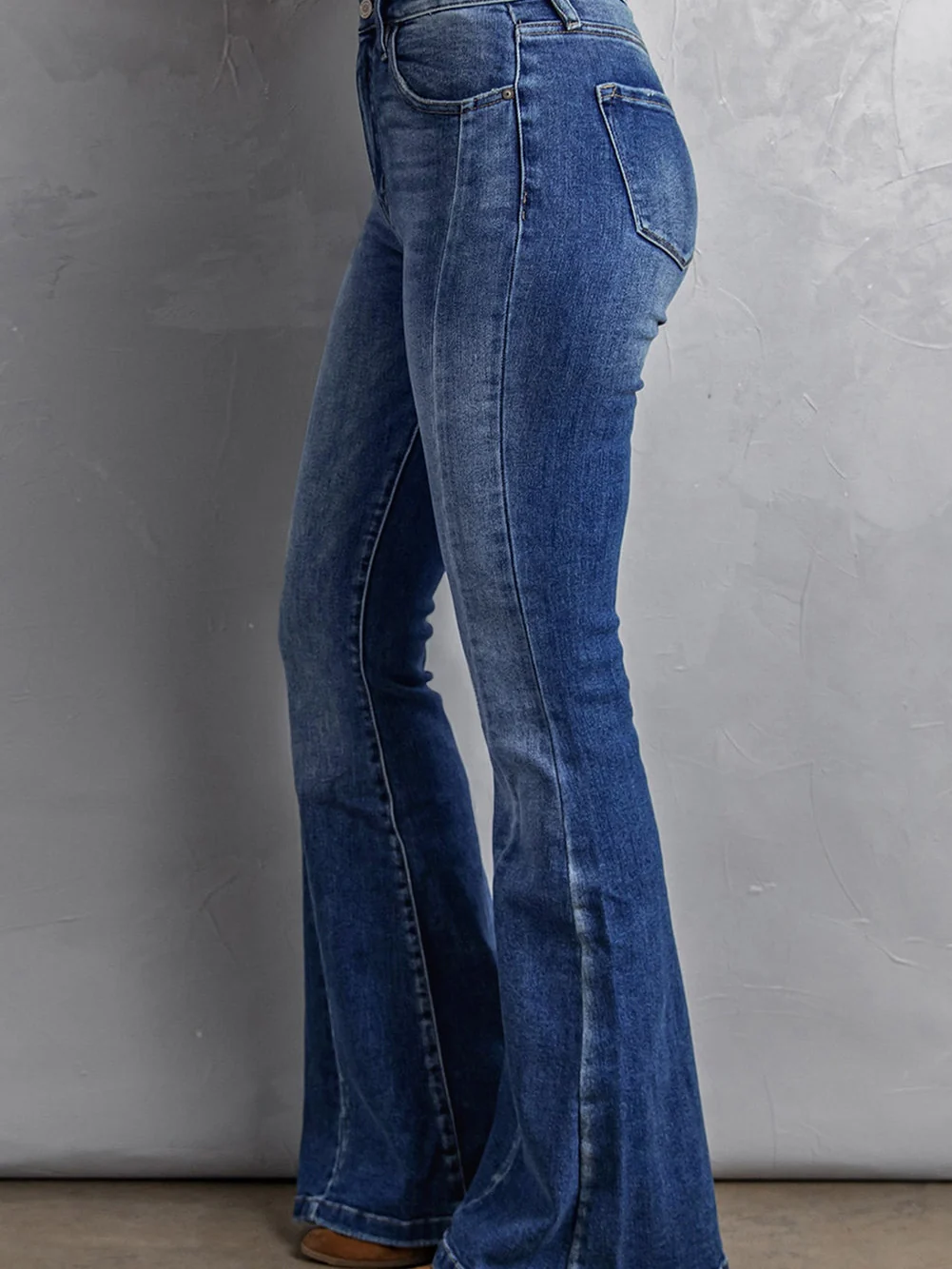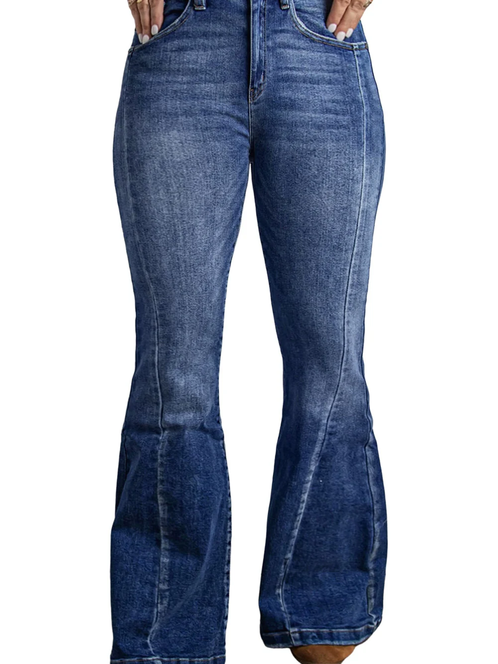 Vintage Washed Blue Flared Denim Jeans for Plus Size Women