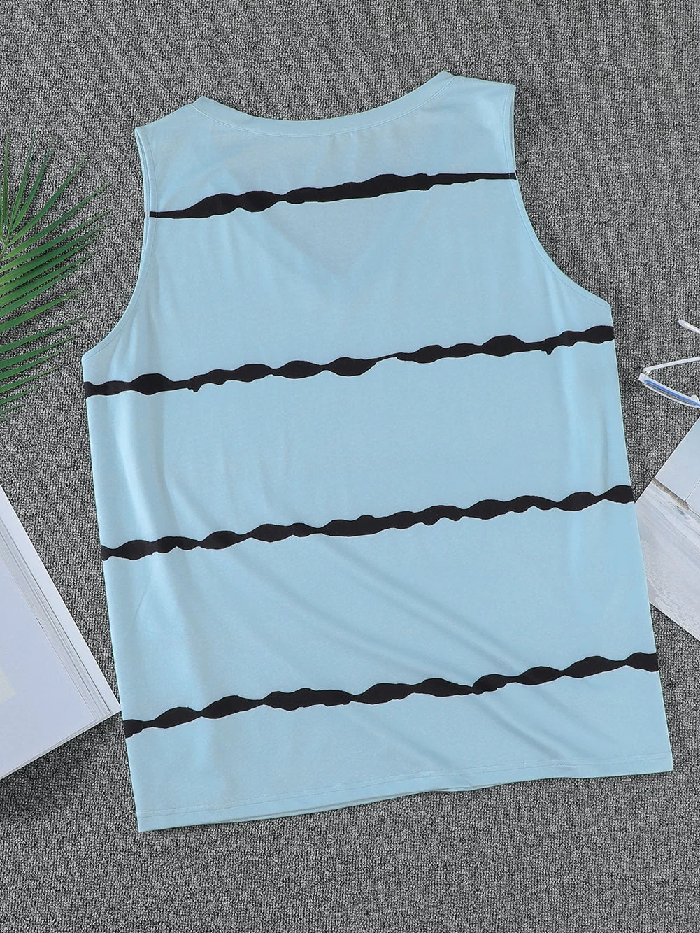 Gray Striped V Neck Plus Size Tank Top with Flag Print