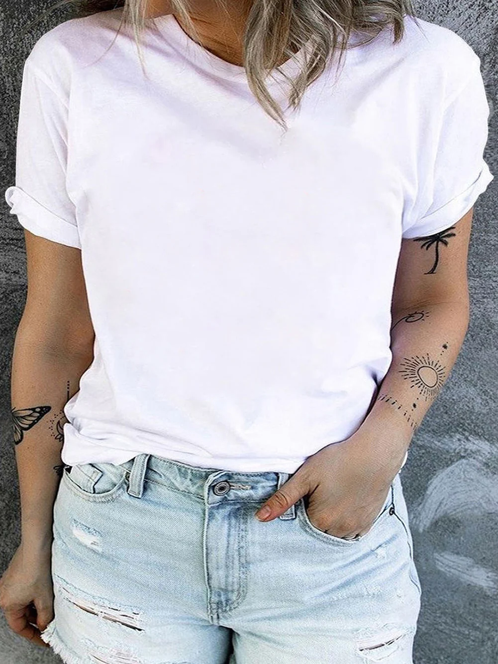Stylish White Rolled Sleeve Plus Size Tee