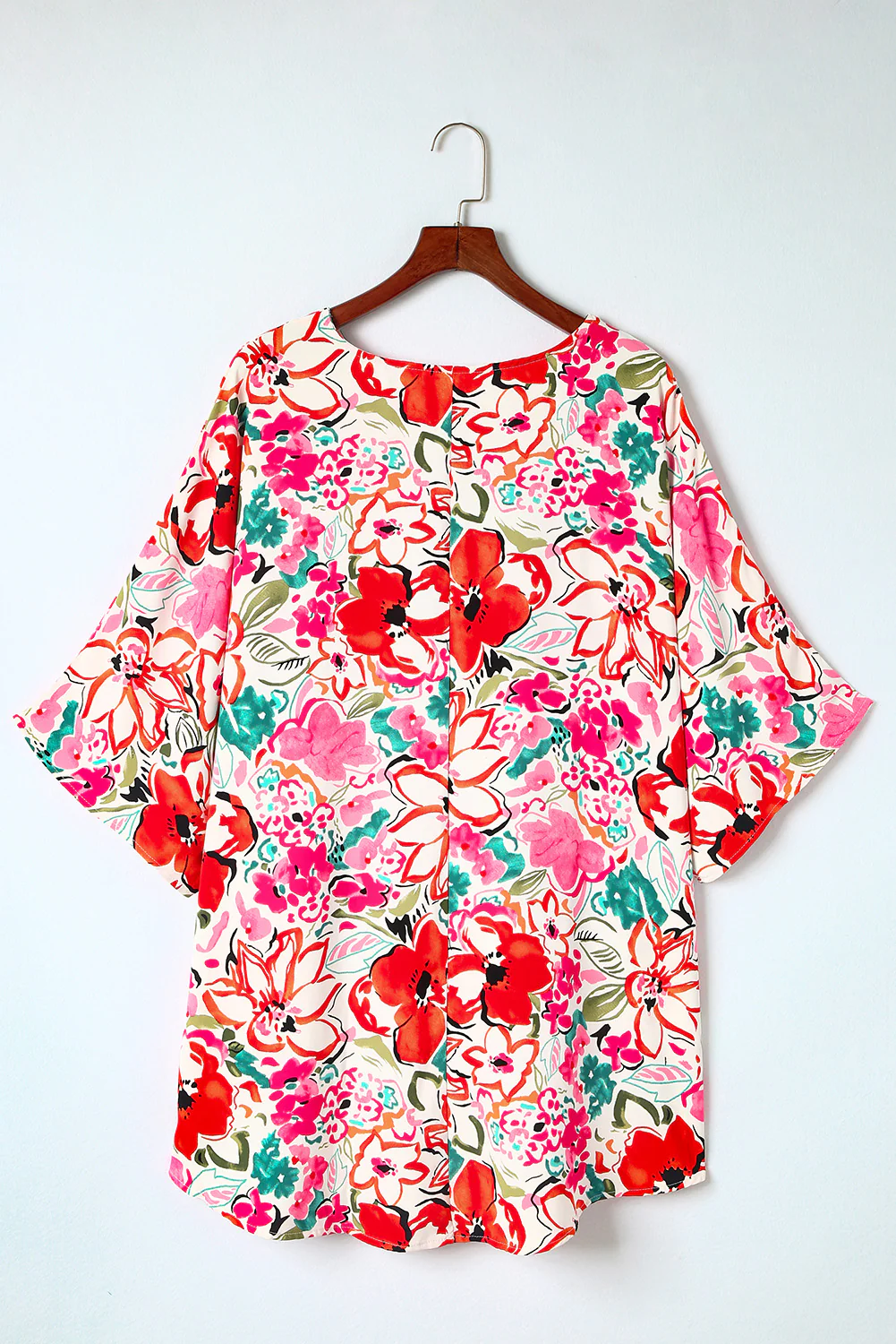 Floral Print Rose Kimono Sleeve Plus Size Blouse
