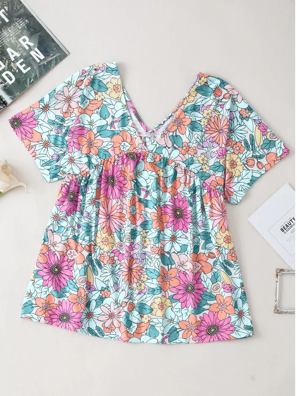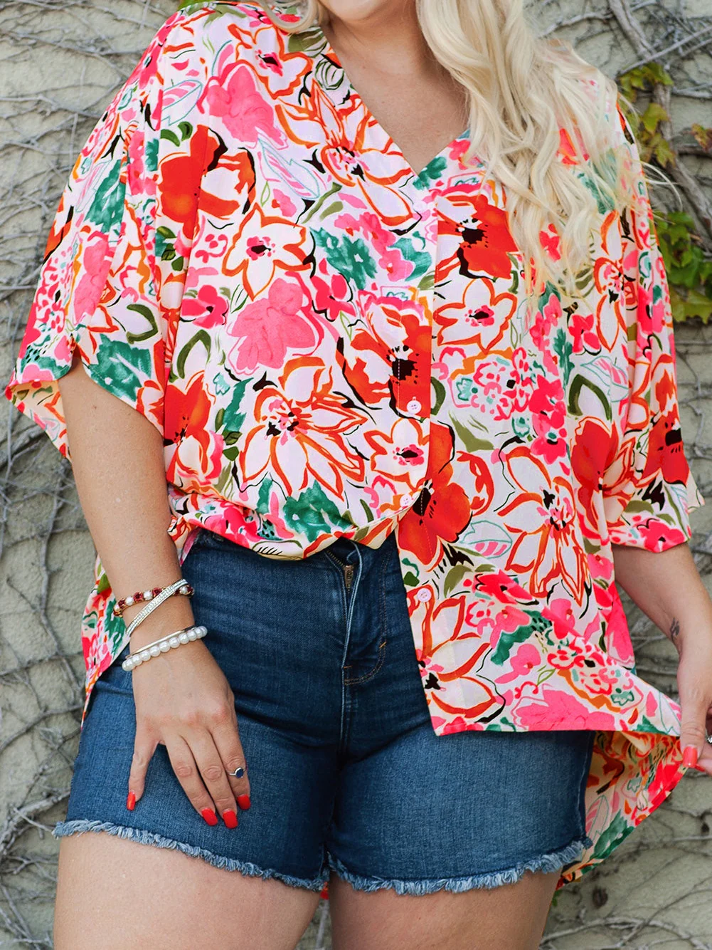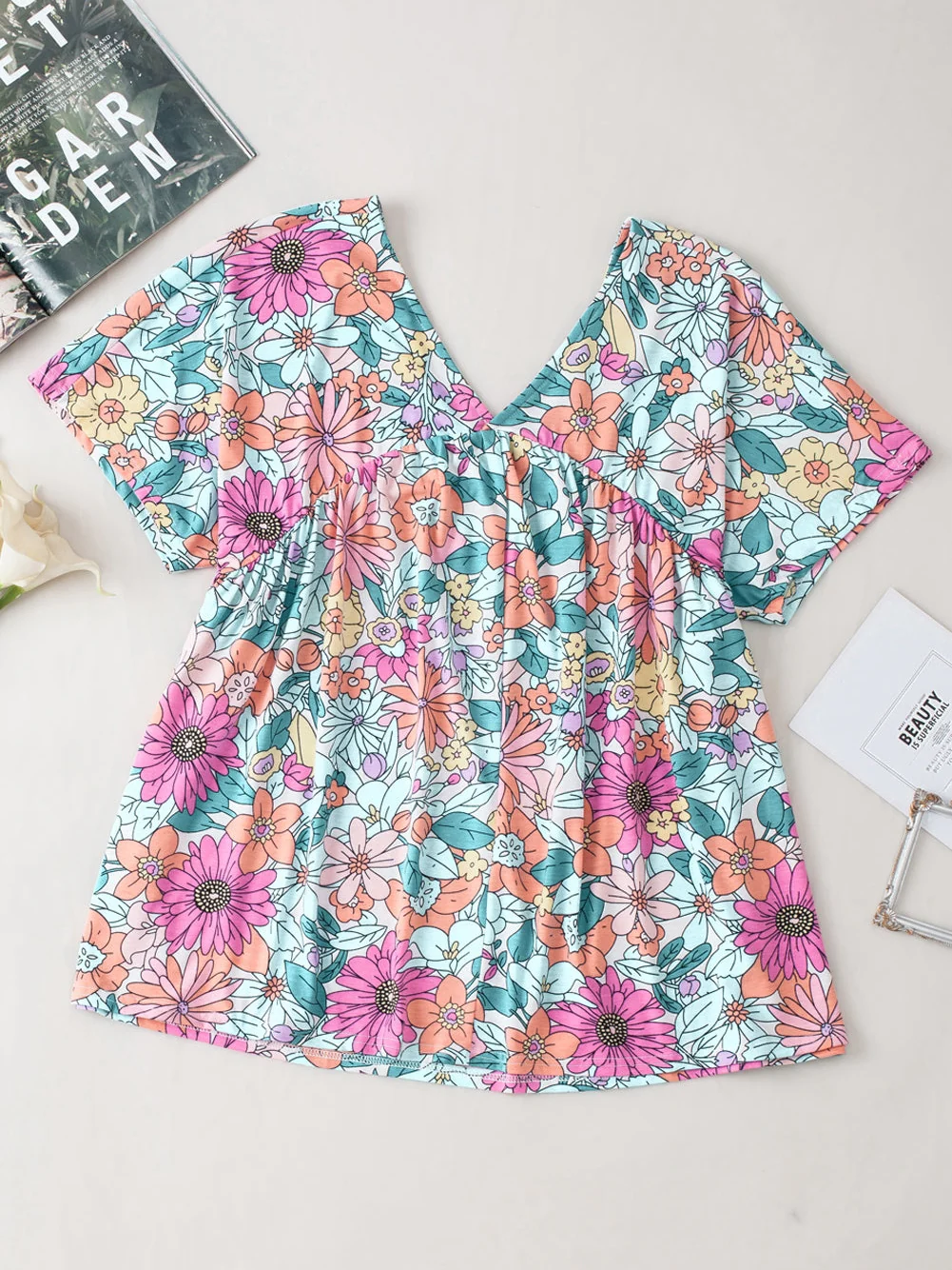 Summer Blossom V Neck Plus Size Blouse for Women