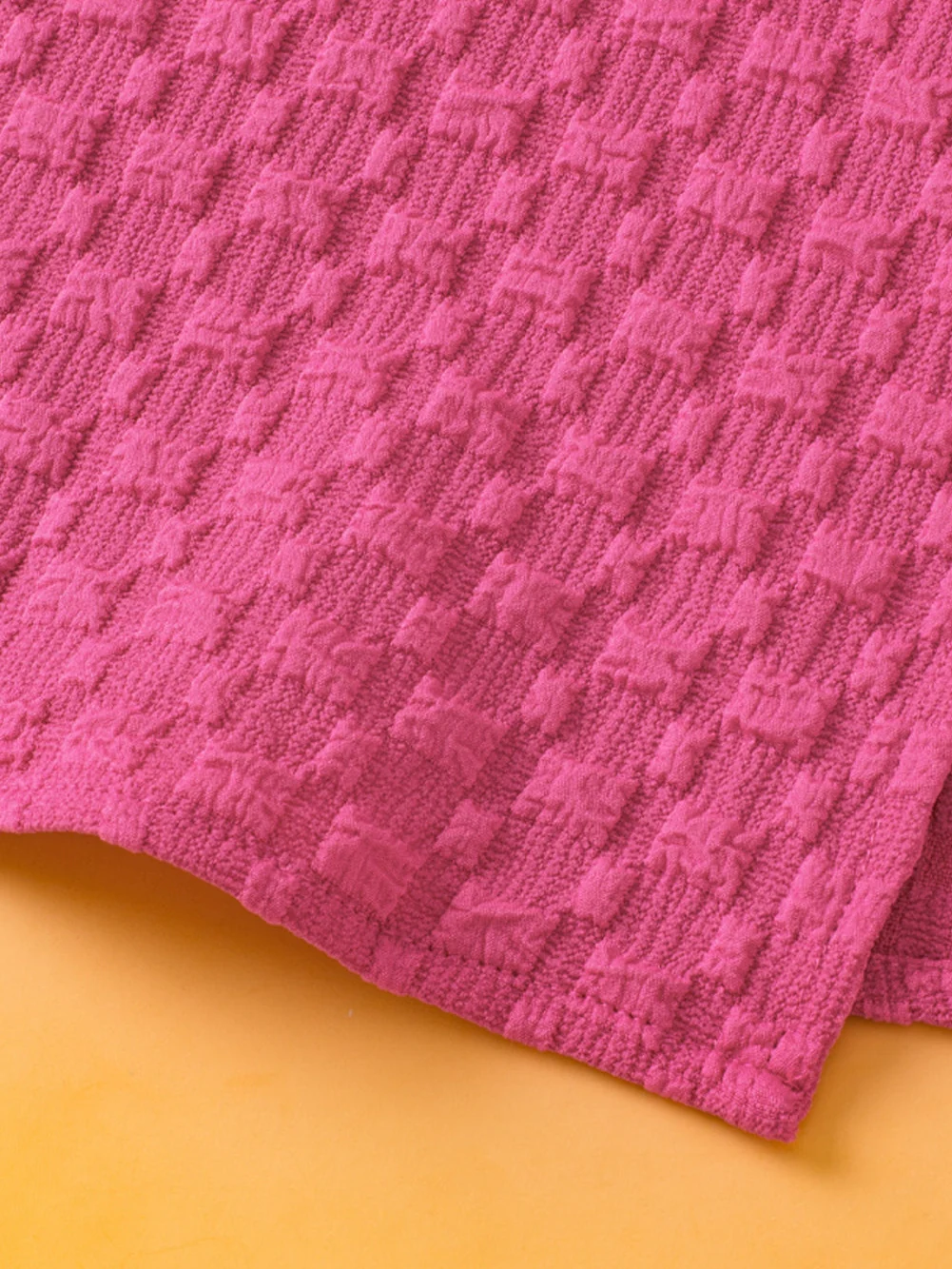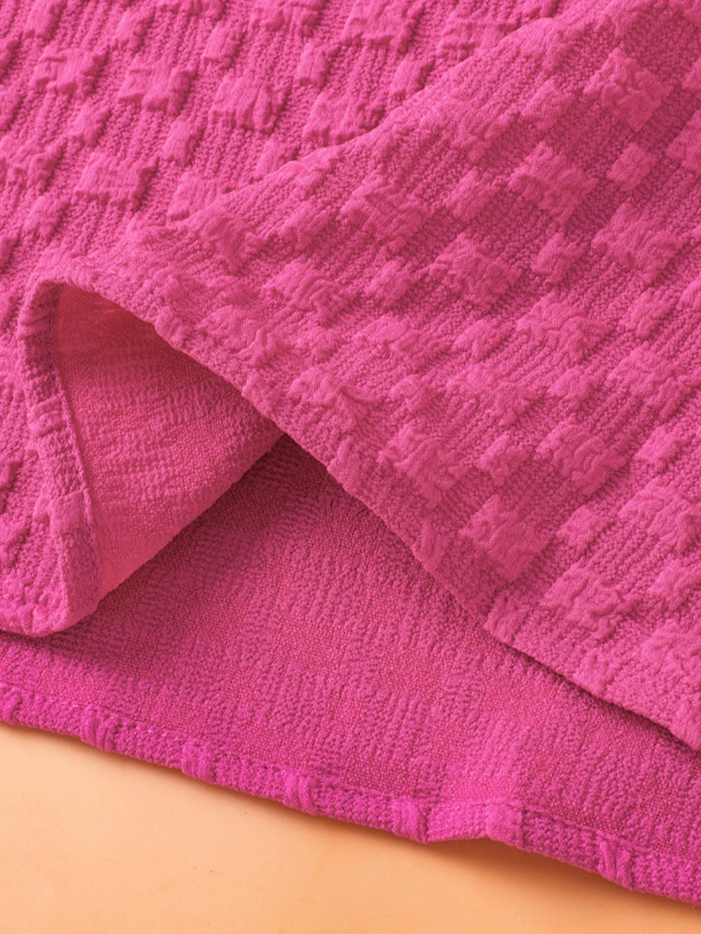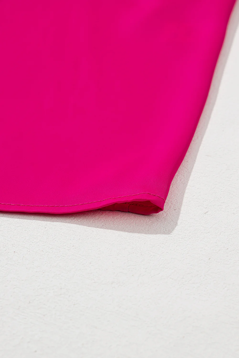 Bright Pink Plus Size Textured Folded Sleeve V Neck T Shirt