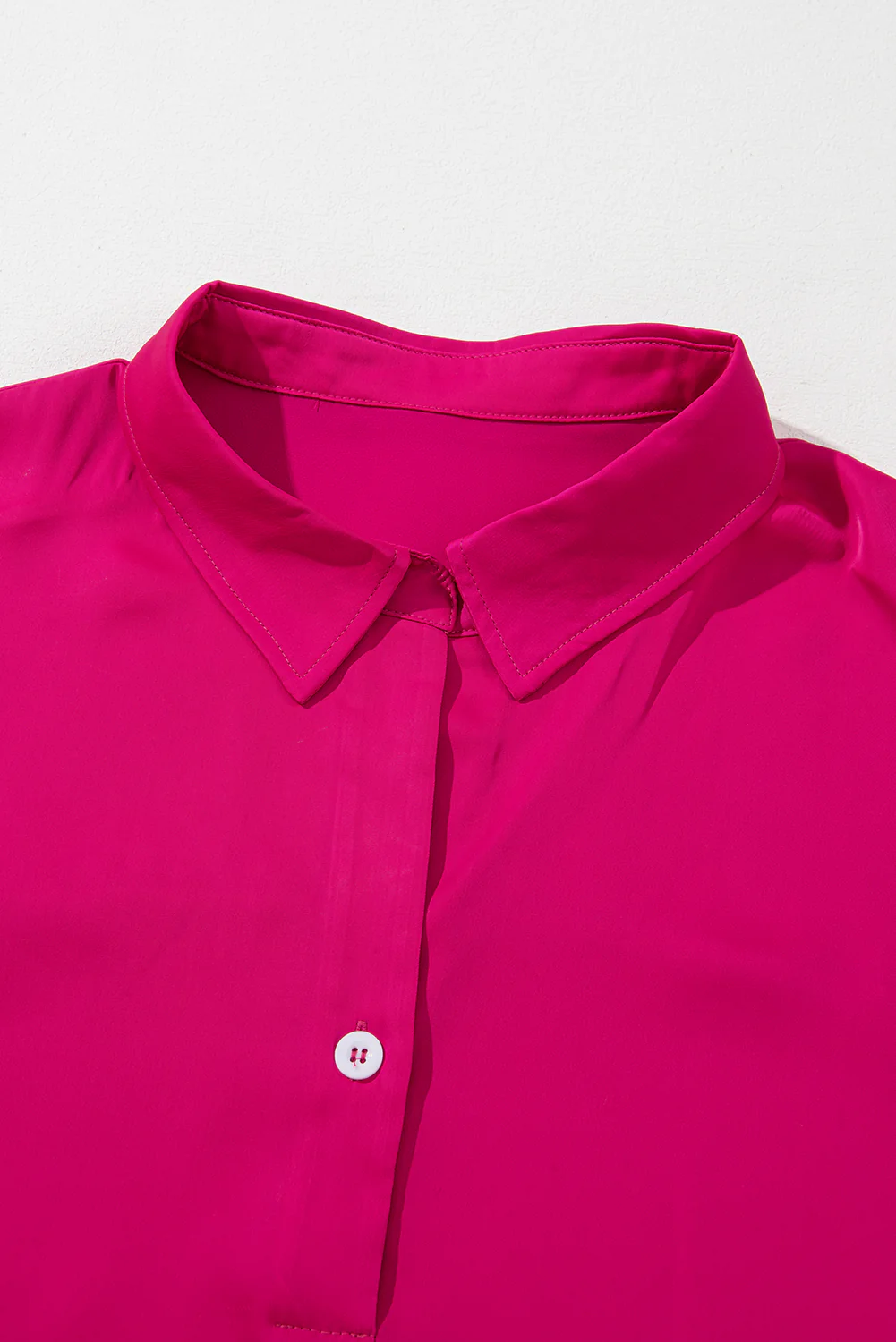 Bright Pink Collared V Neck Short Sleeve Shift Plus Size Dress