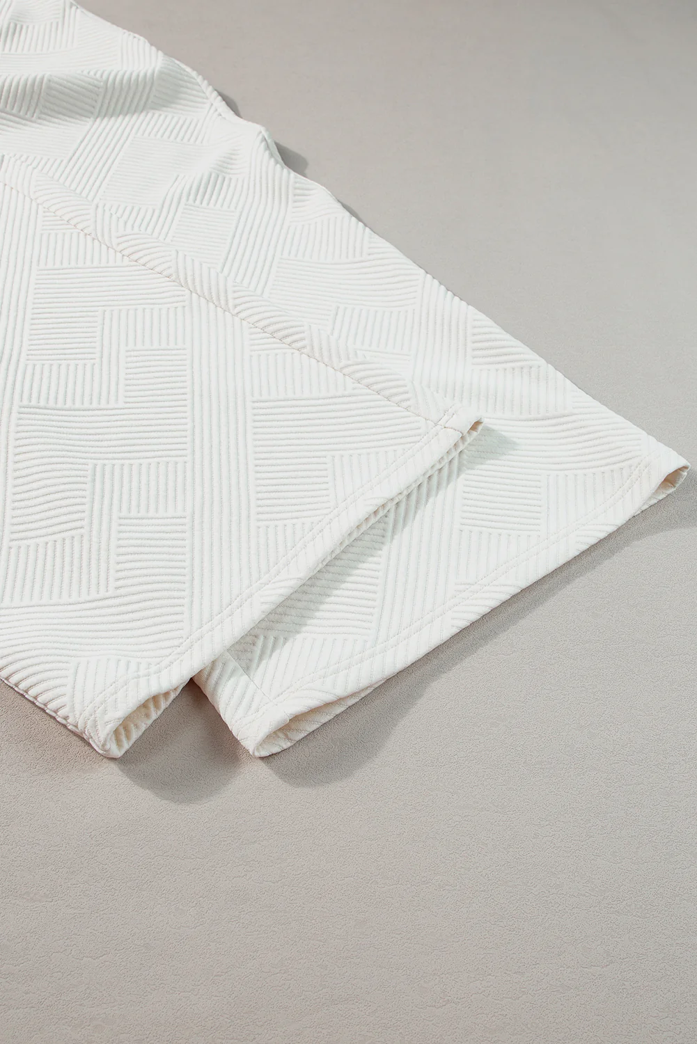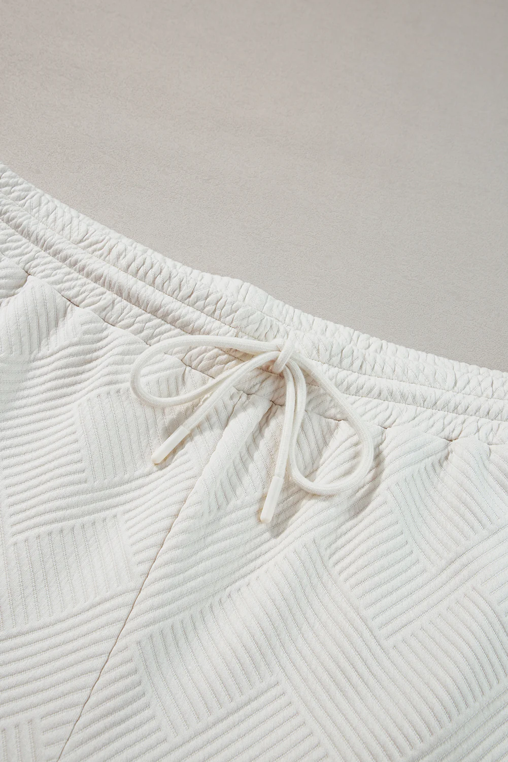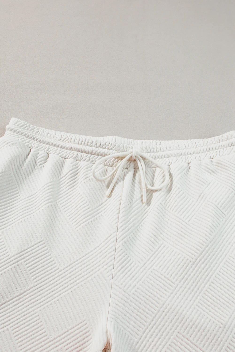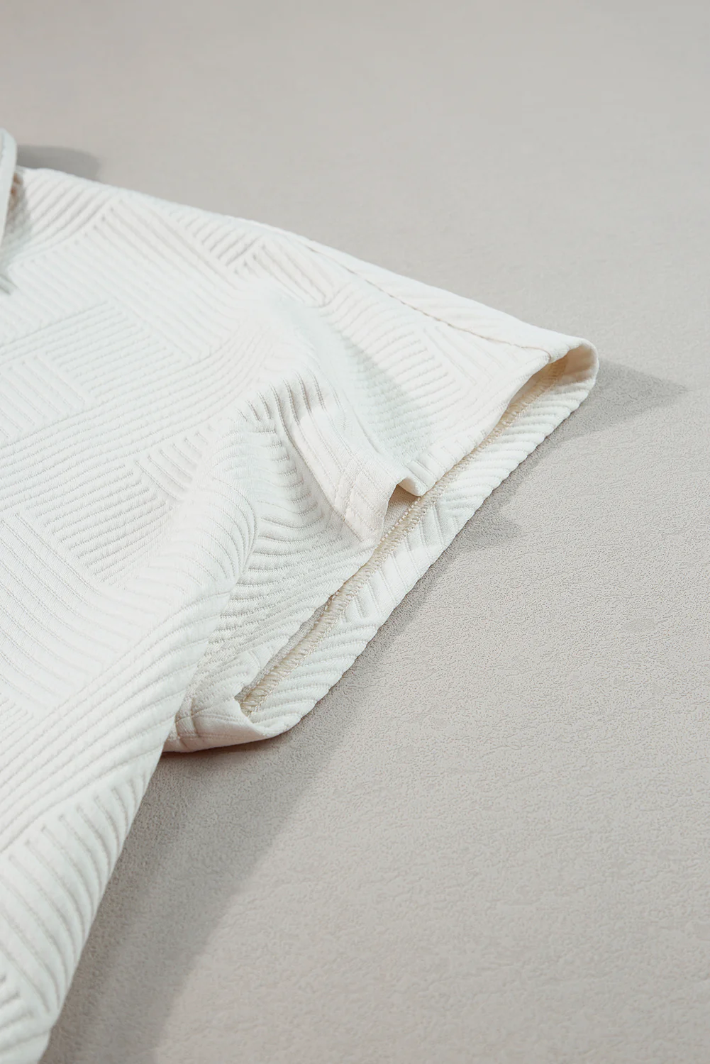 Beige Plus Size Textured Collared Top and Pants Set