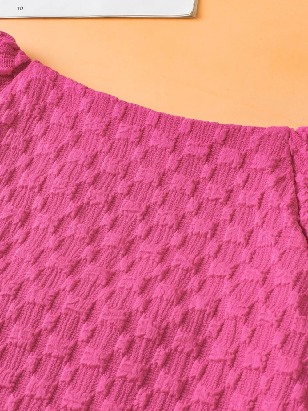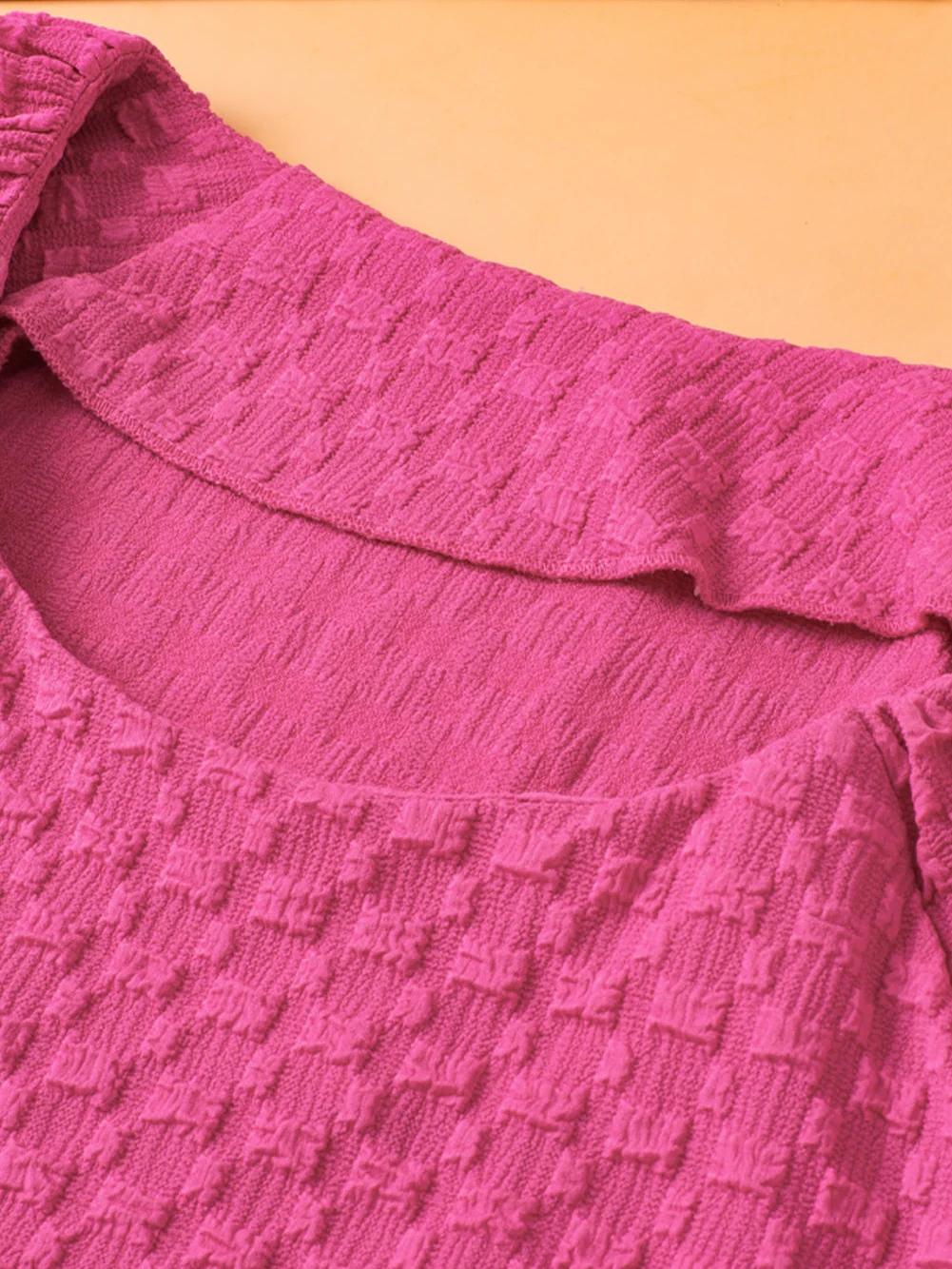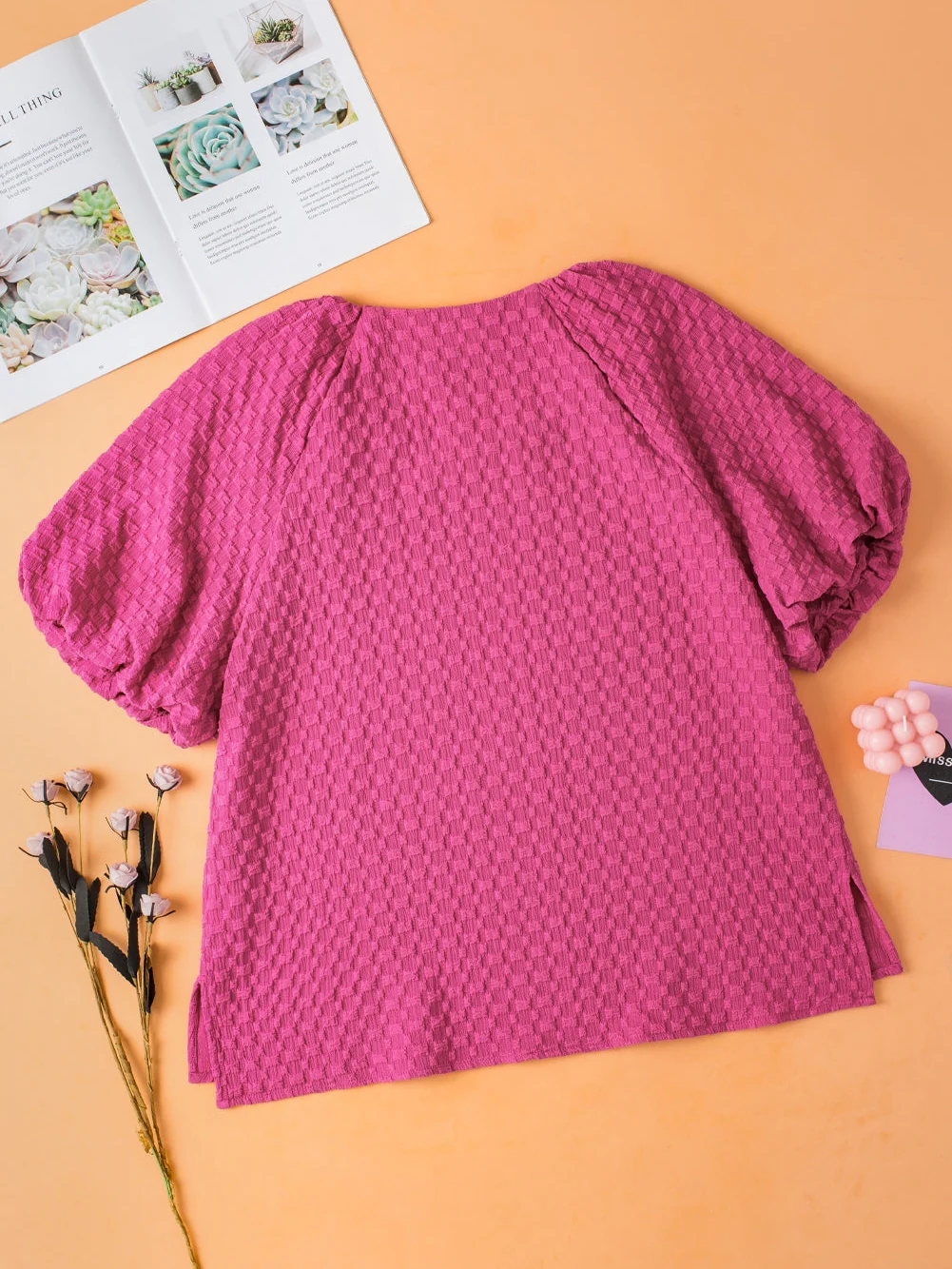 Coral Paradise Solid Textured Bubble Sleeve Plus Size Blouse