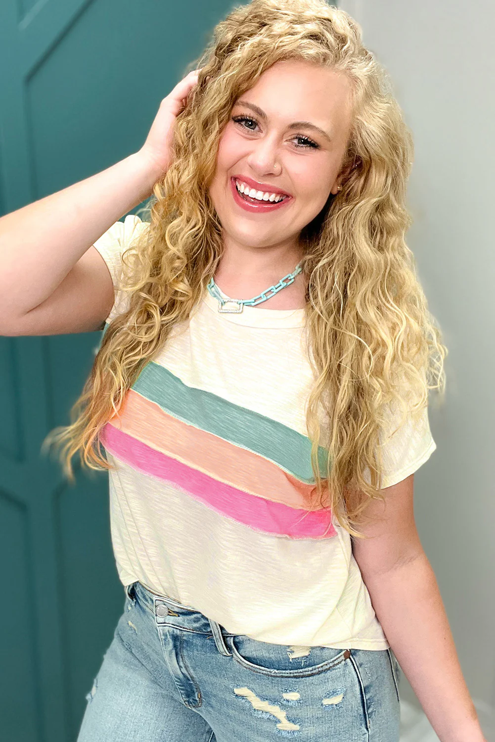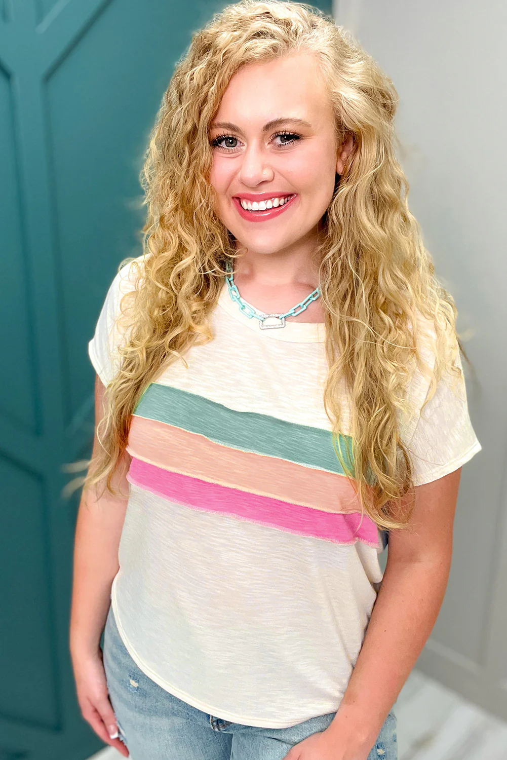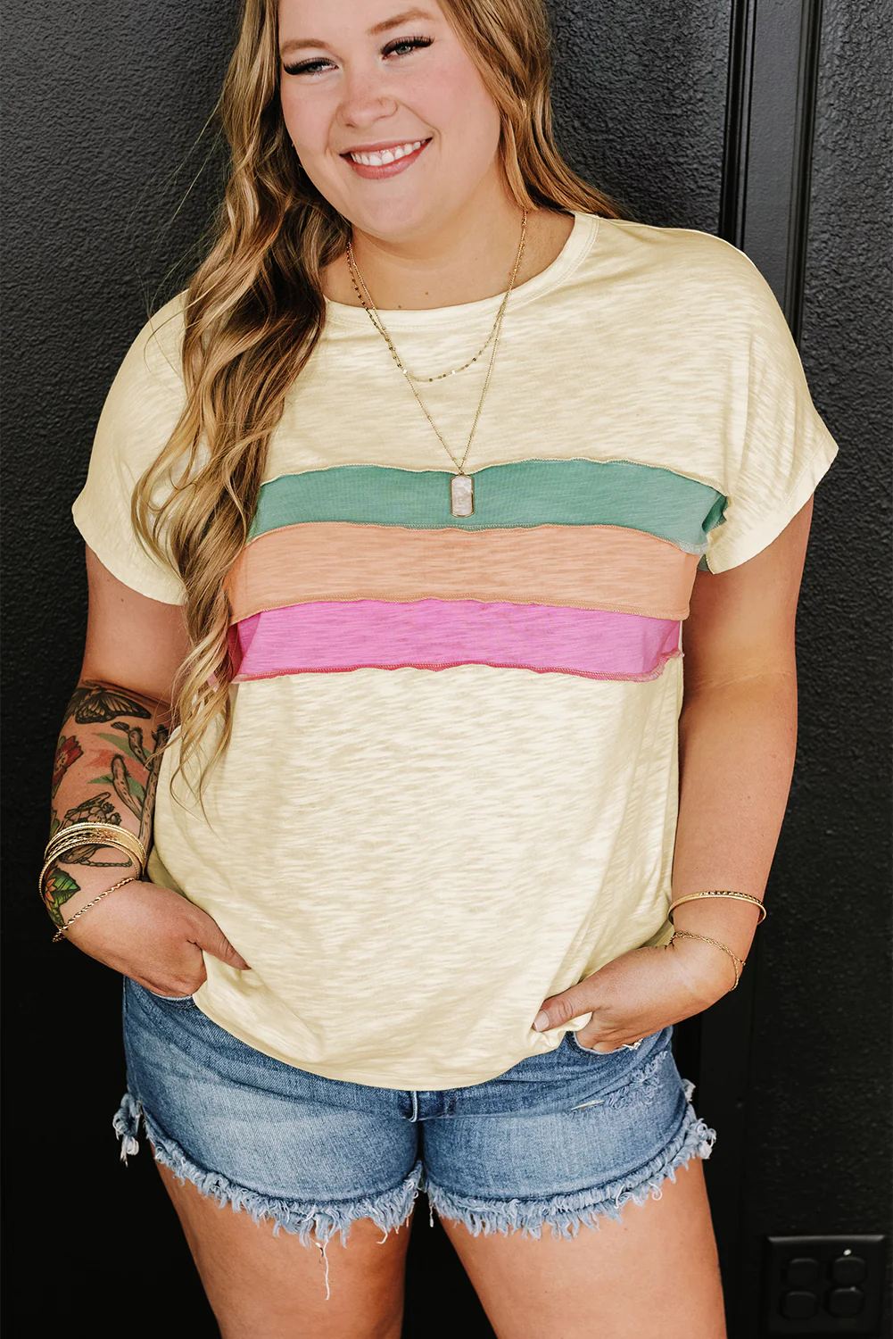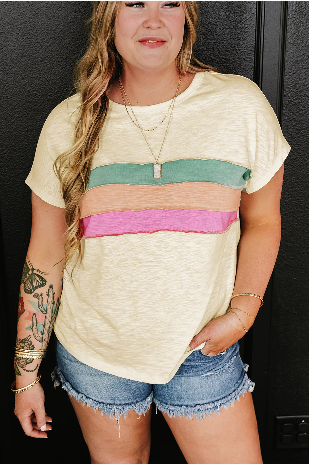 White Color Block Patchwork Plus Size T Shirt