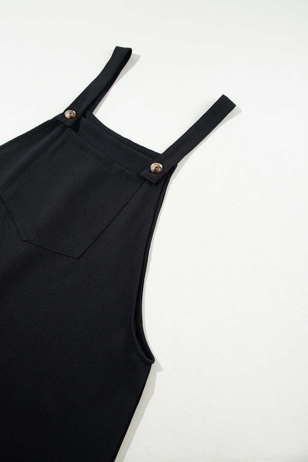 Black Solid Buttoned Straps Plus Size Overall Dress