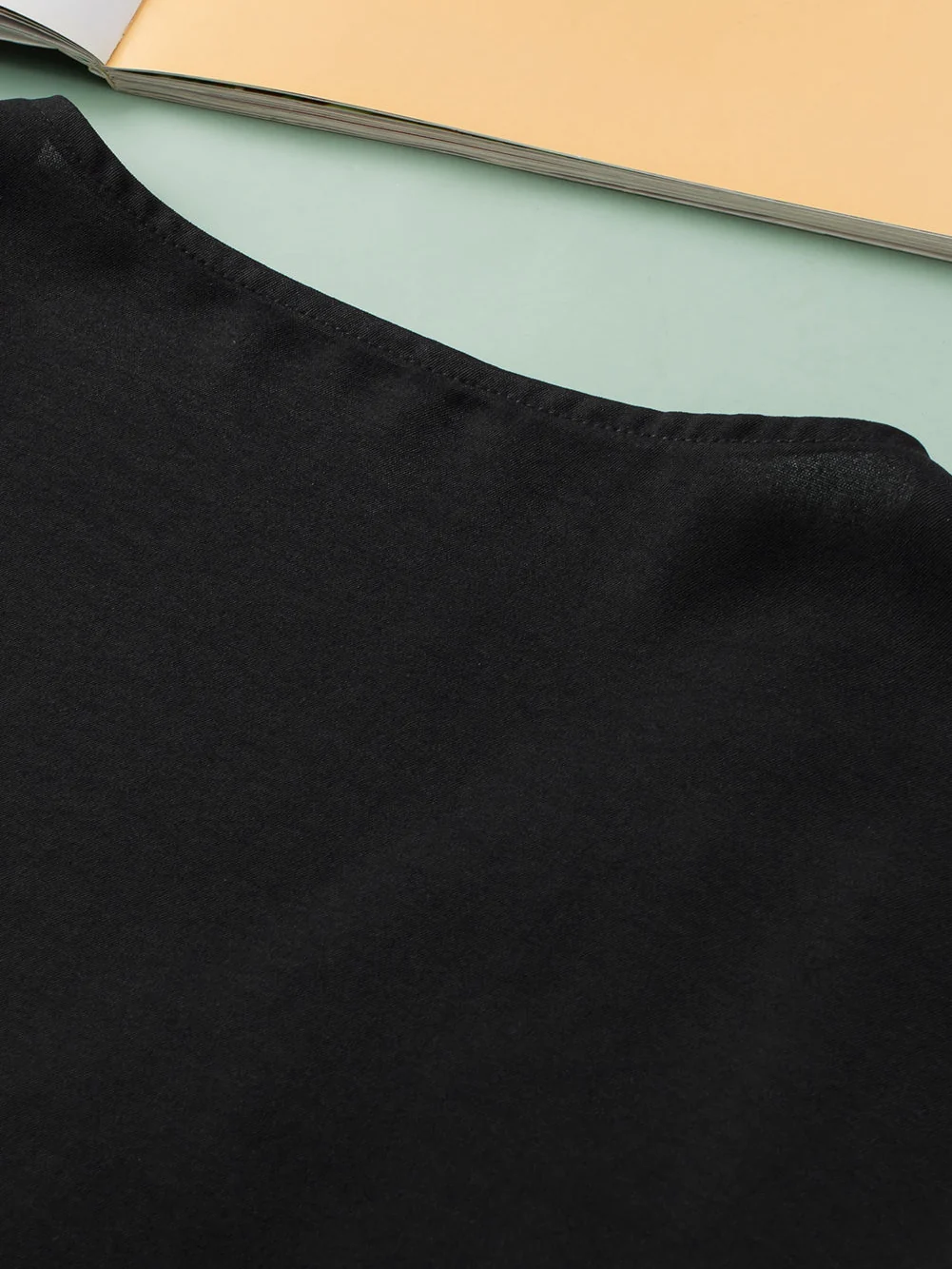 Black Lace Trim Short Sleeve V Neck Plus Size Top