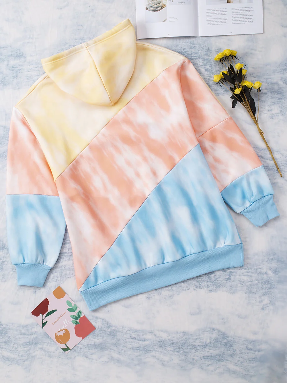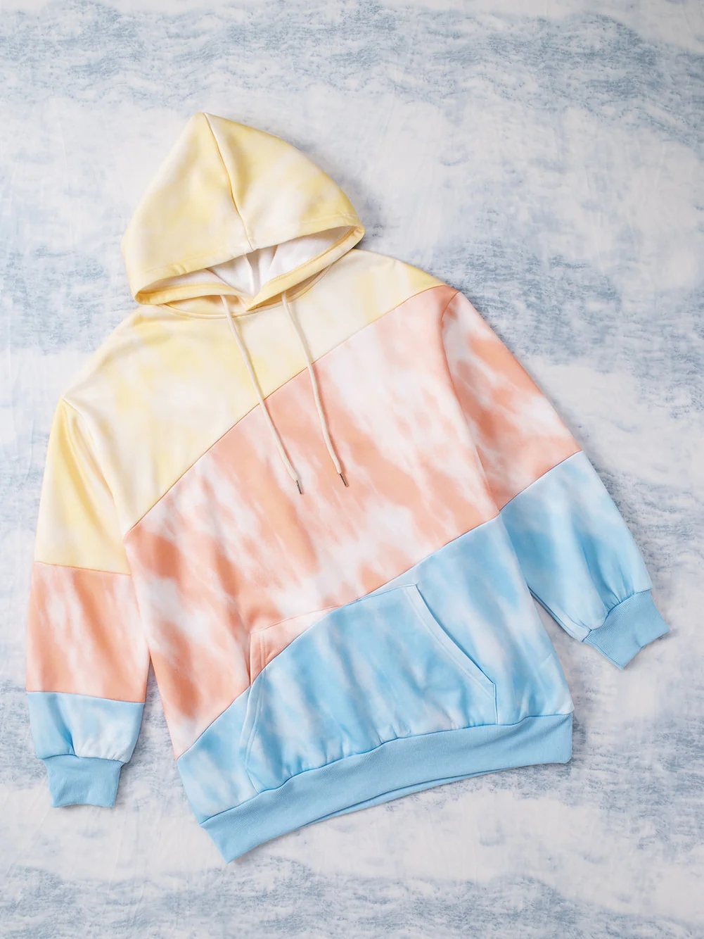 Cozy Sky Blue Plus Size Hoodie with Colorblock Design