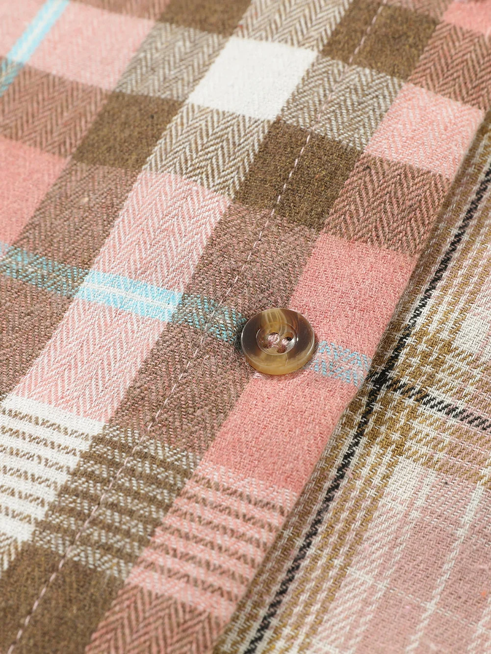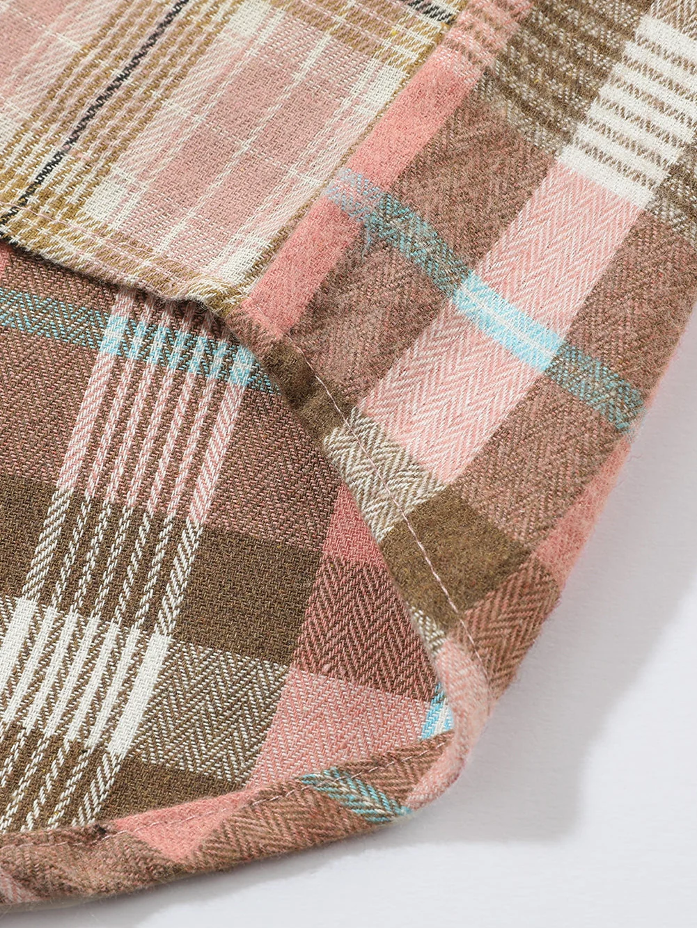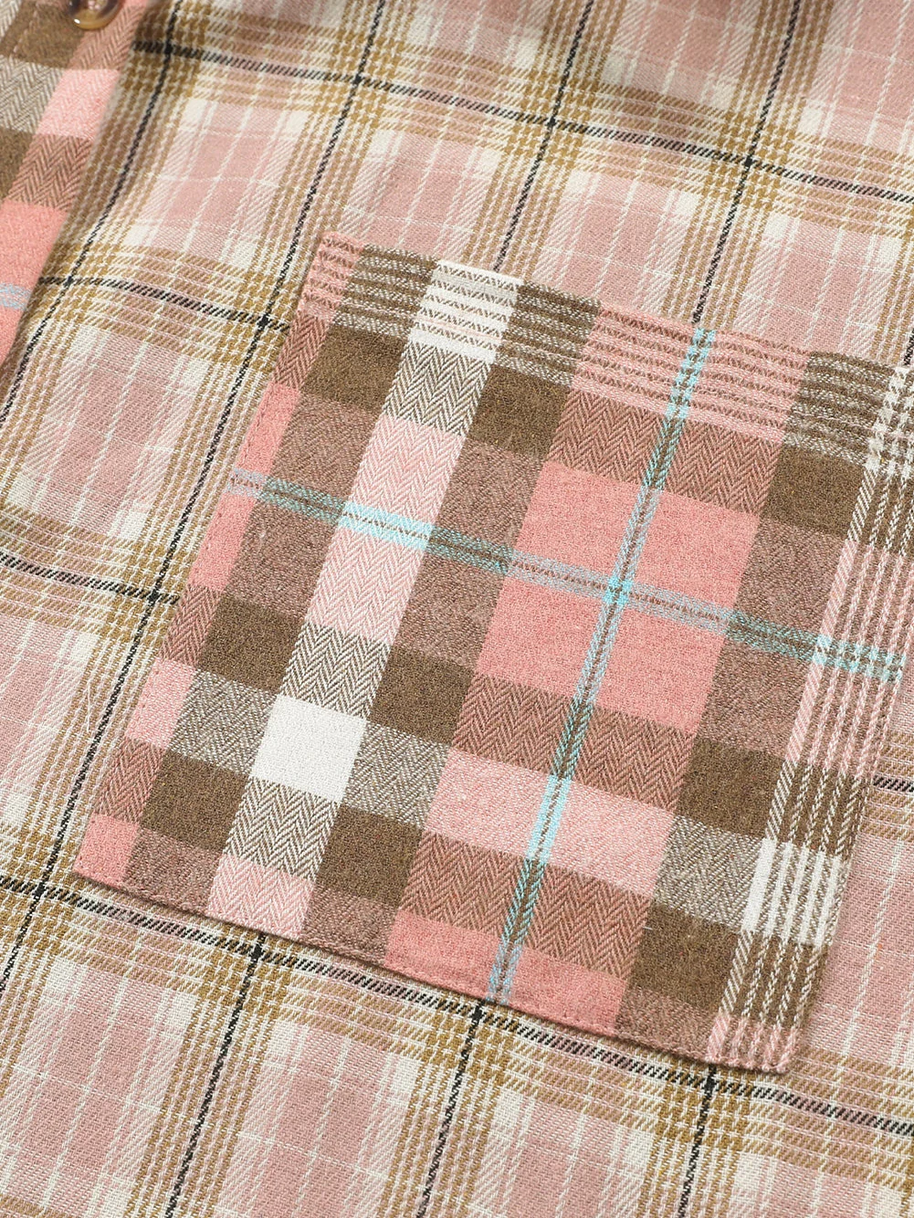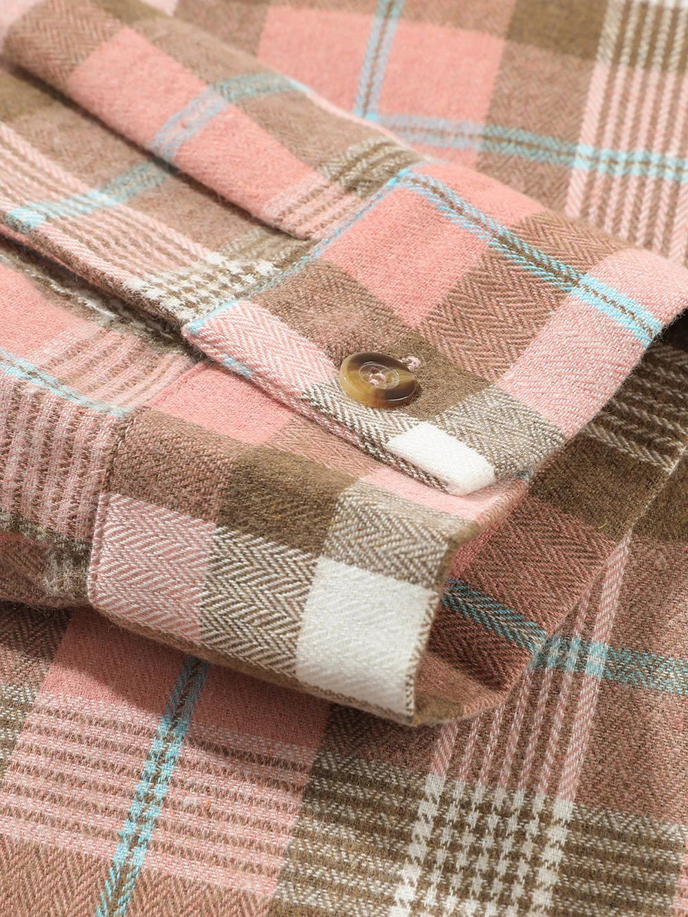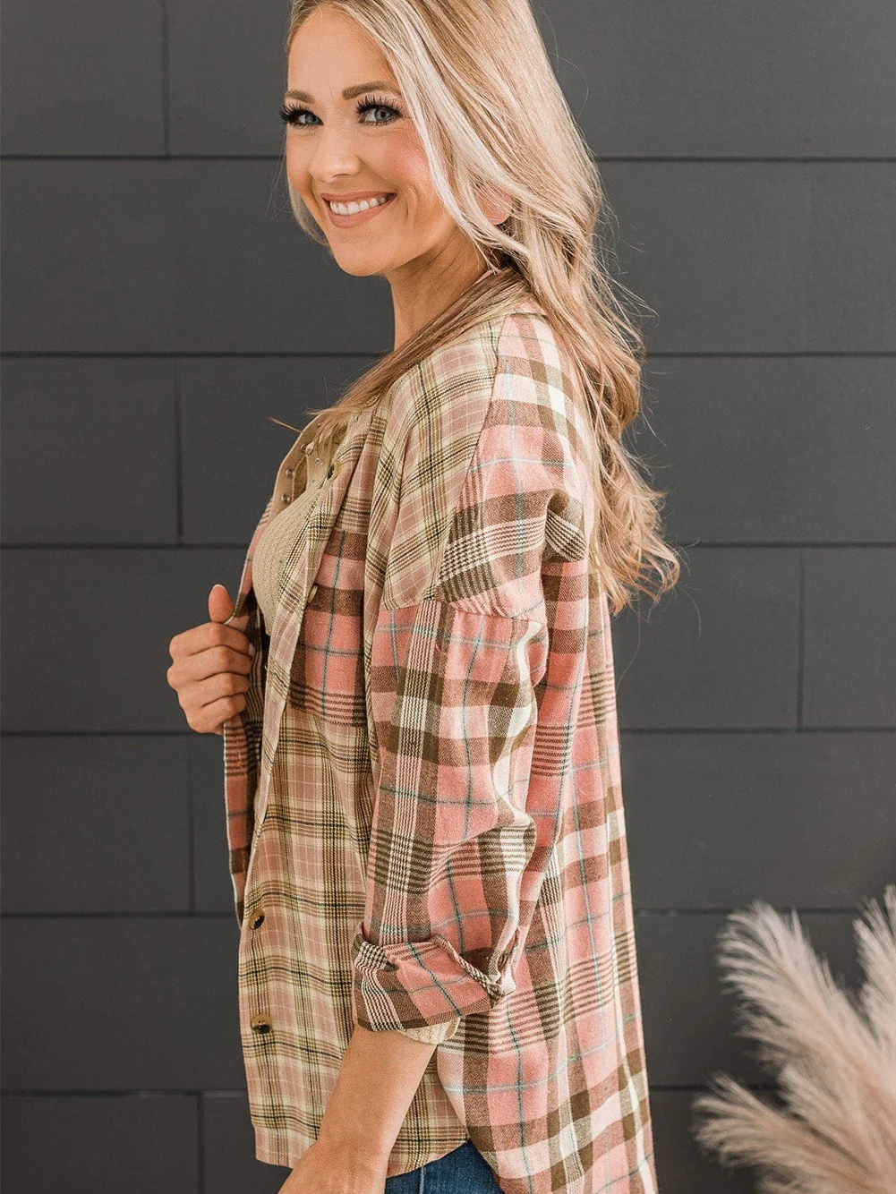Pink Plaid Pocketed Plus Size Shirt With Long Sleeves