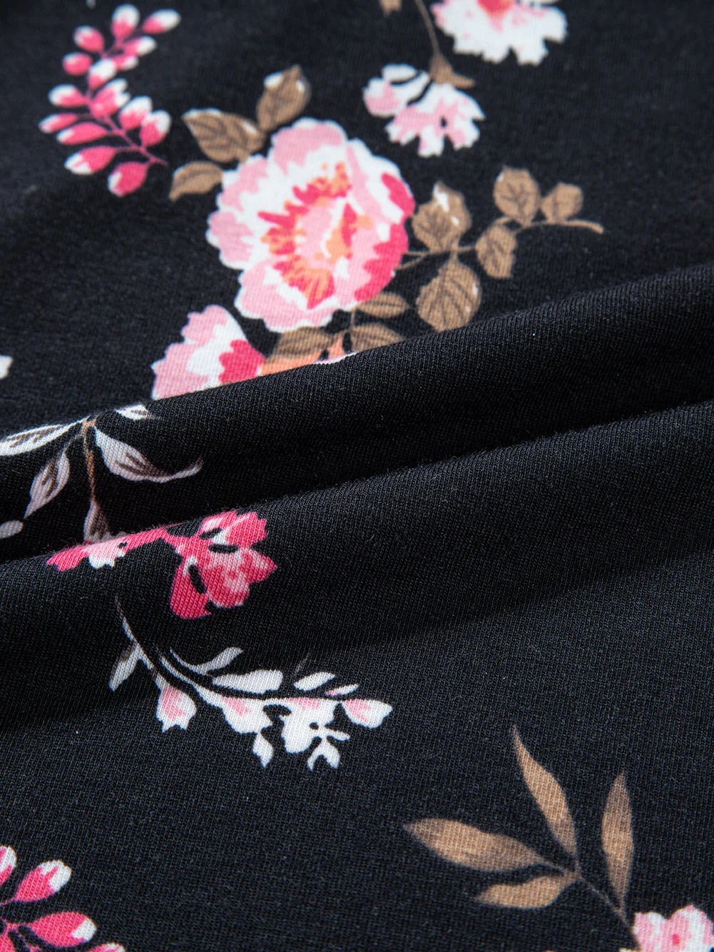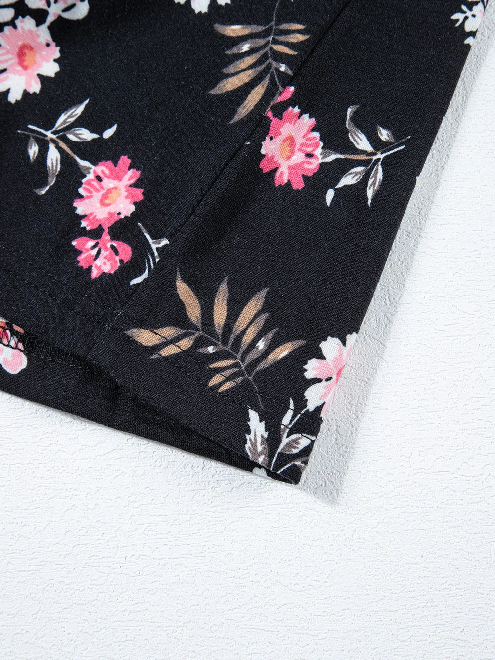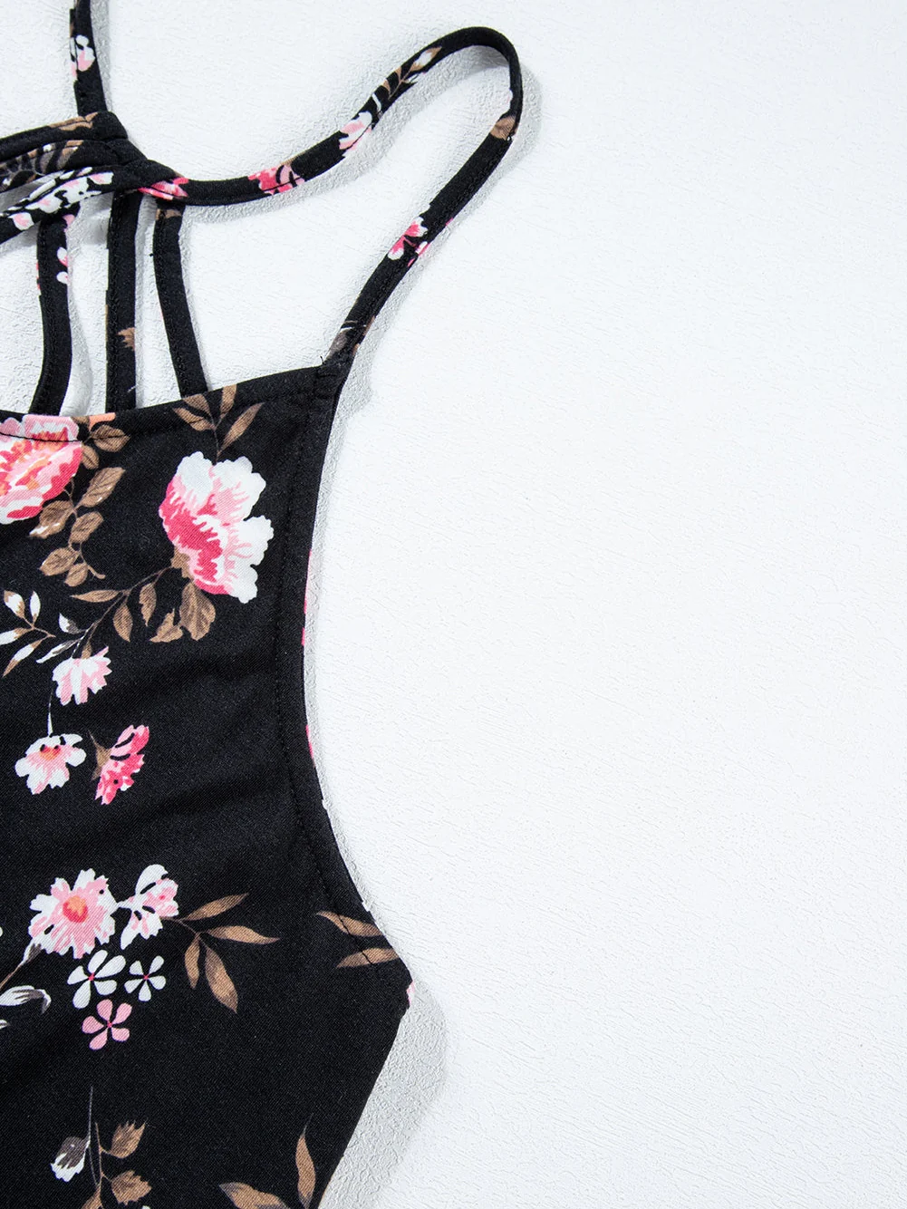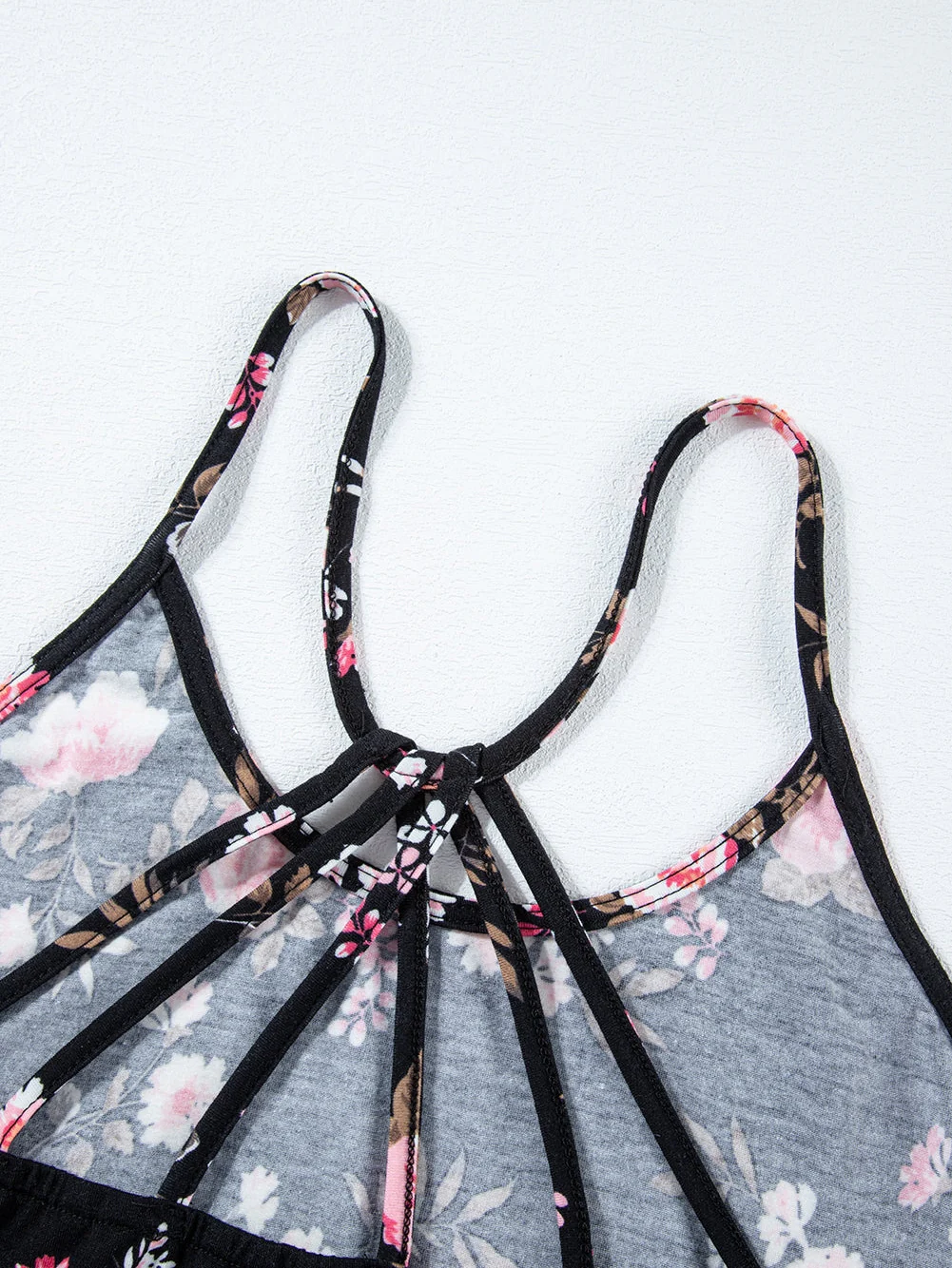Floral Strappy Racerback Tank Top in Black Plus Size