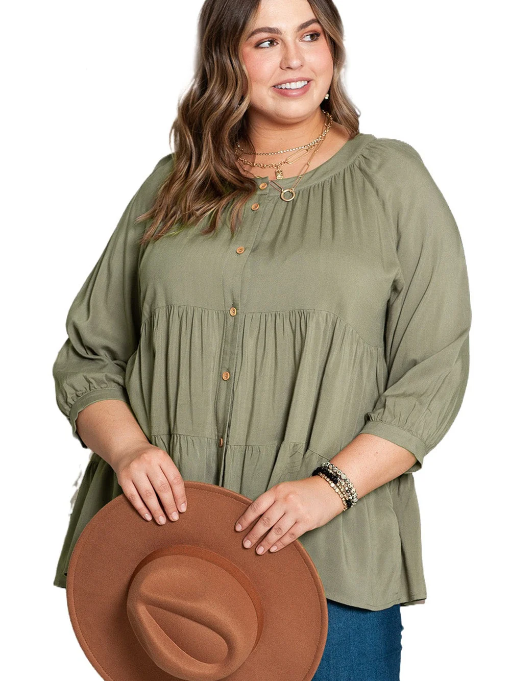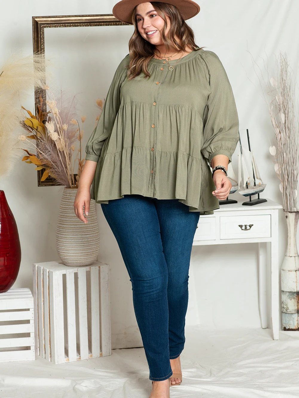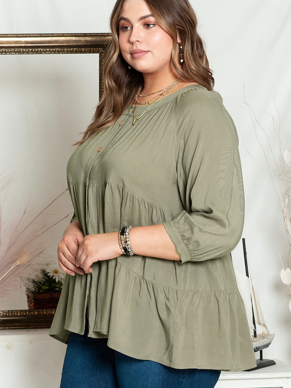Emerald Plus Size Ruffled Tiered Split Neck Blouse