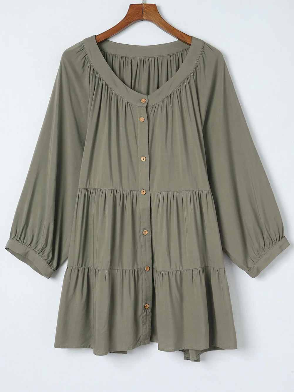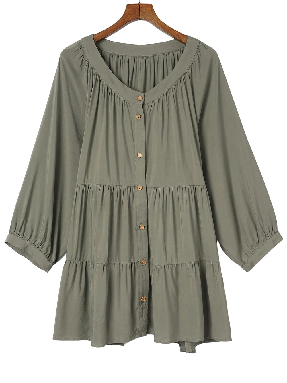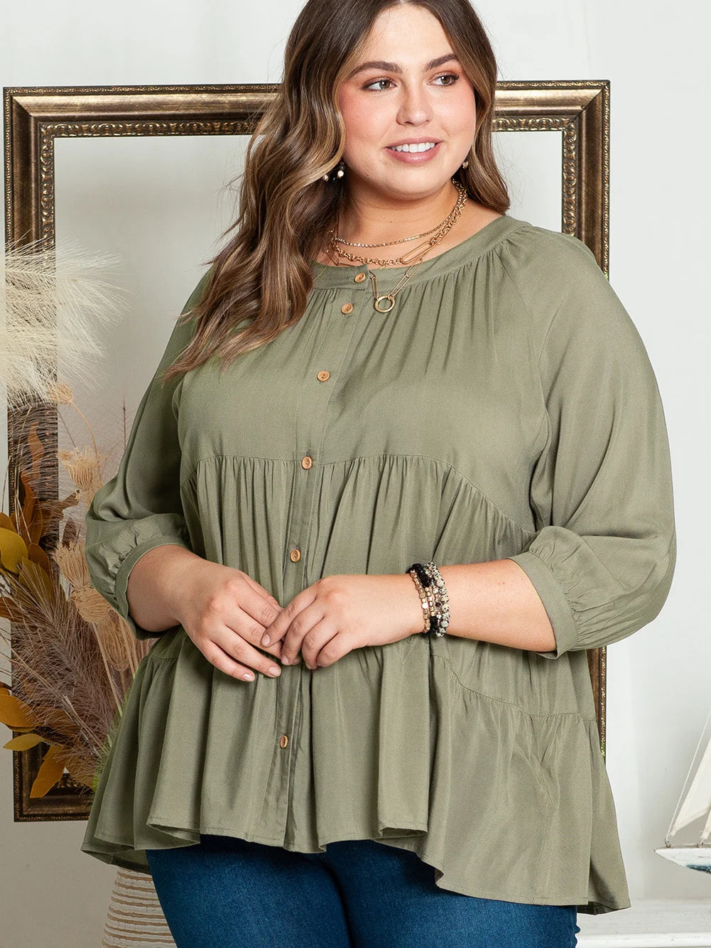 Emerald Plus Size Ruffled Tiered Split Neck Blouse