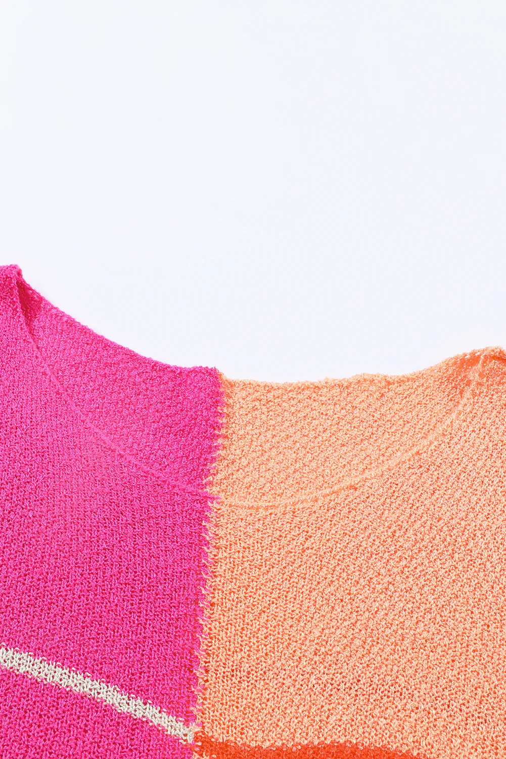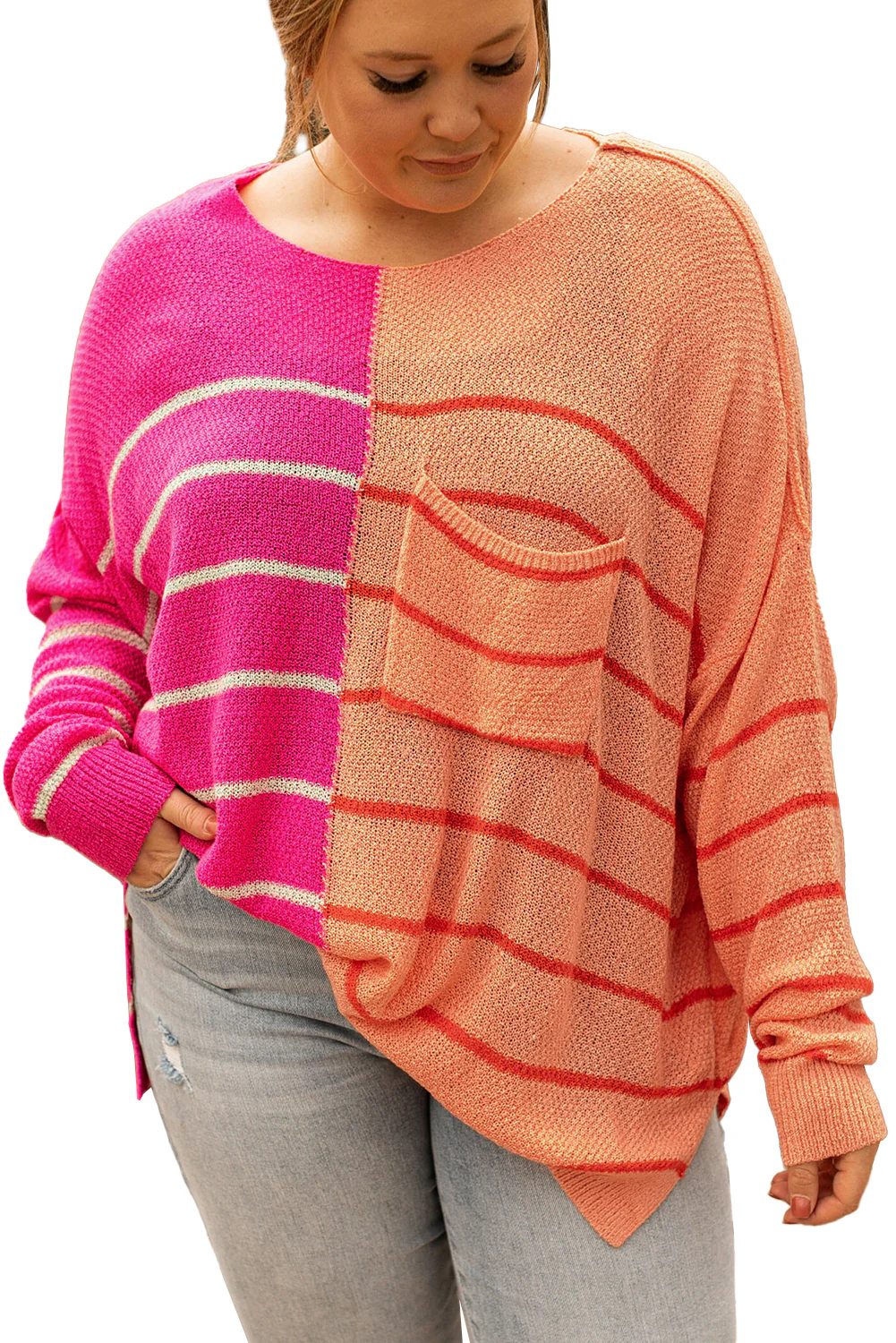 Yellow Striped Patchwork Knit Sweater for Plus Size Women