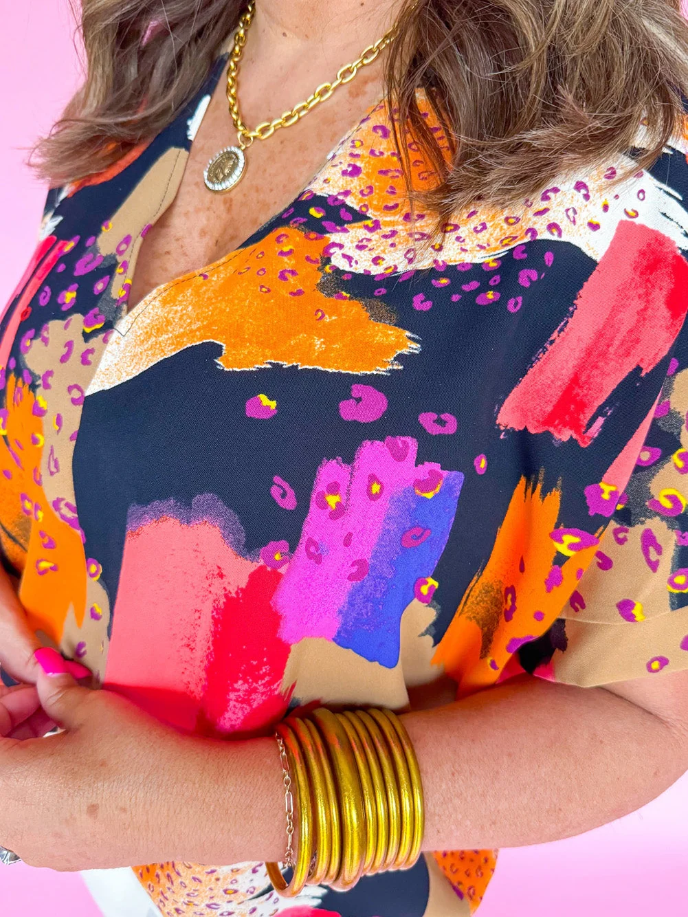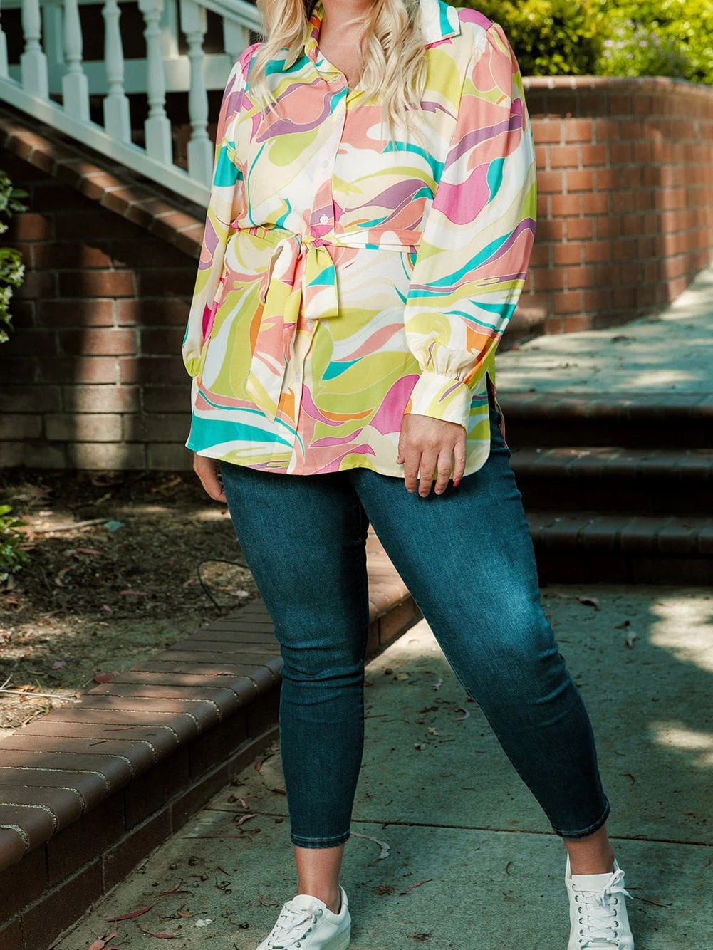 Sunny Plus Size Abstract Print Relaxed Tunic Blouse
