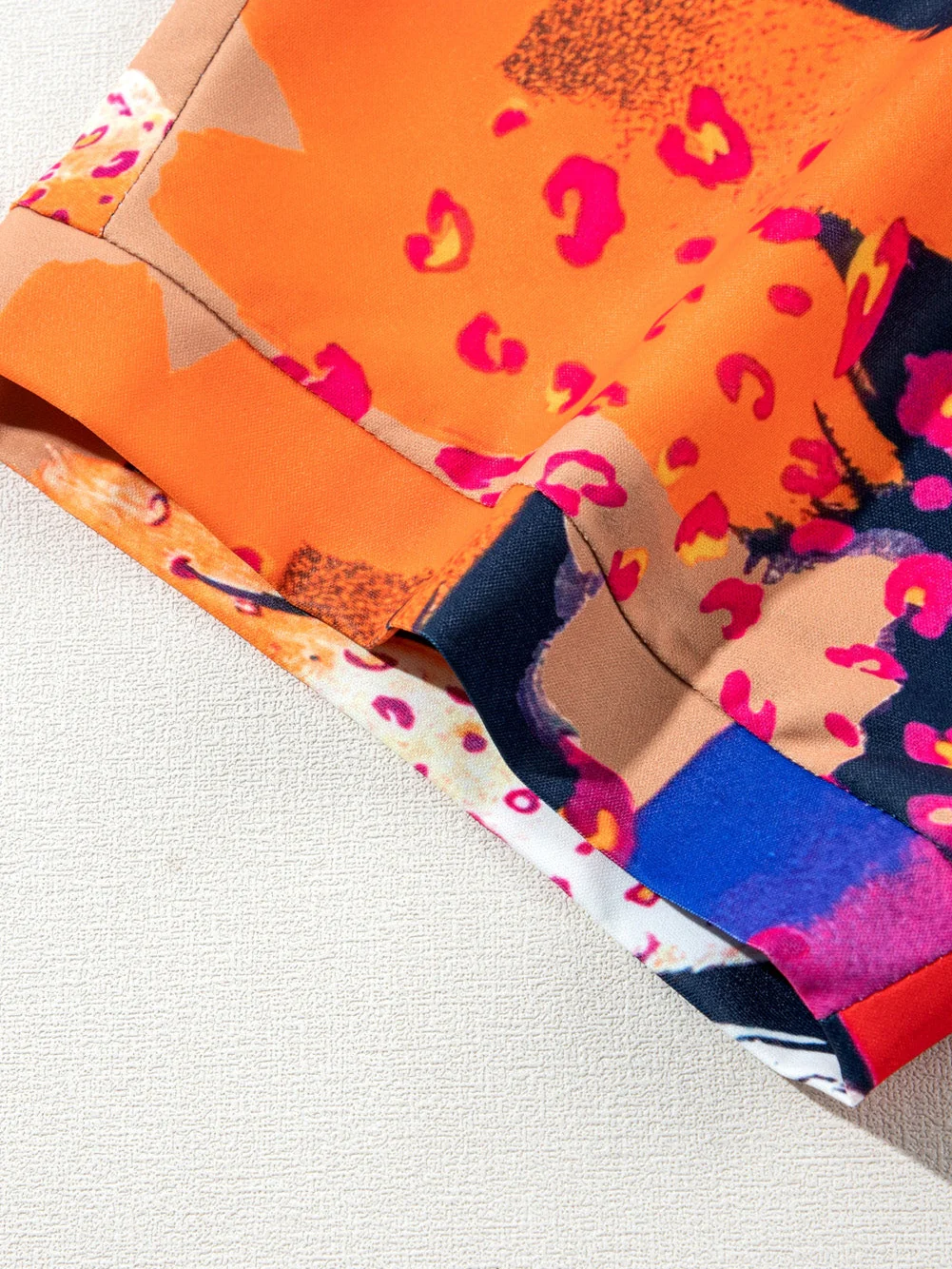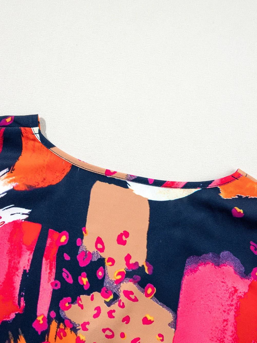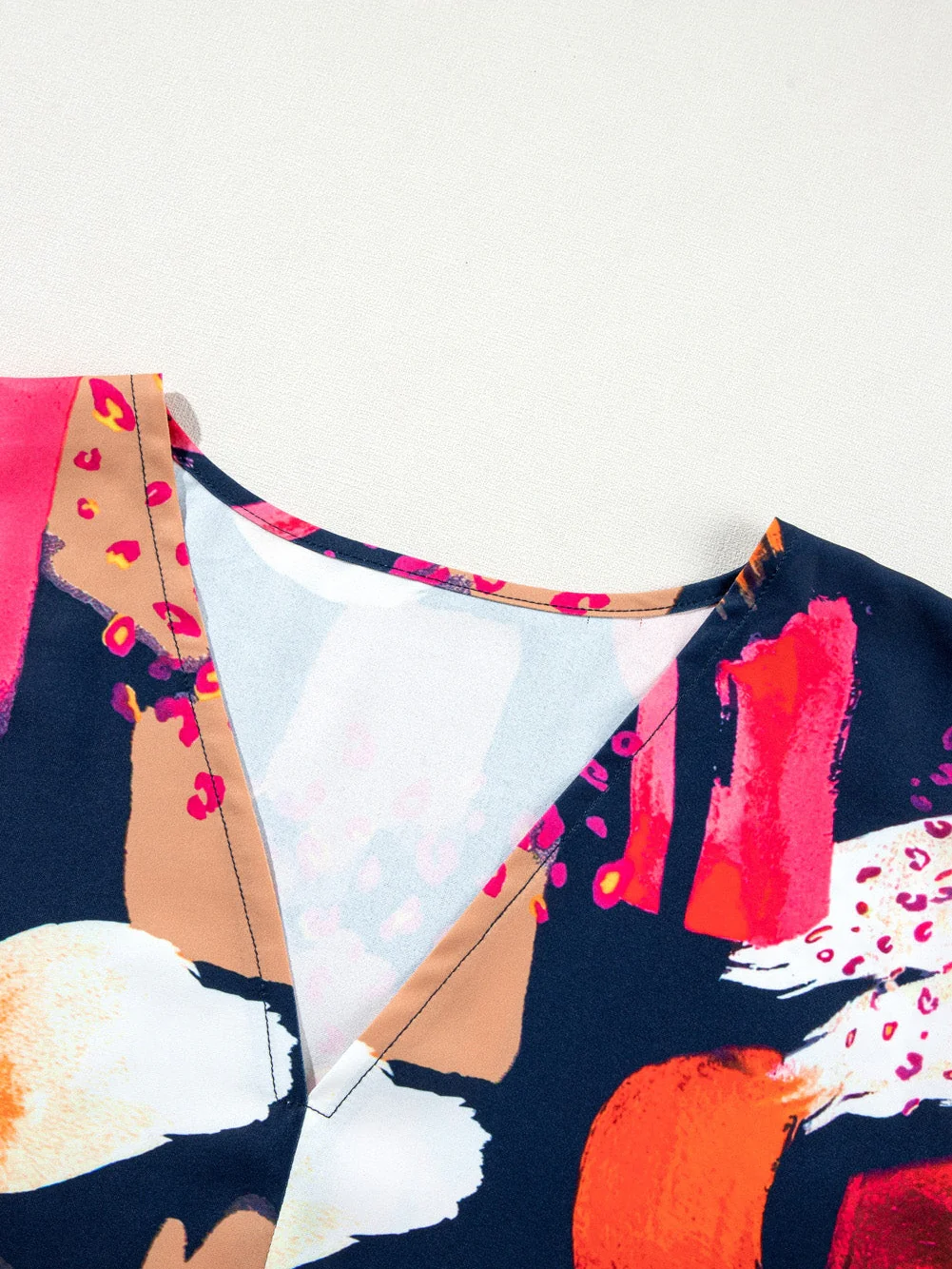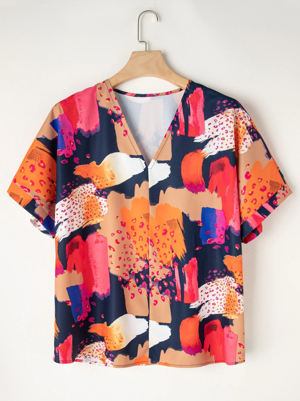 Multicolour Abstract Print V Neck Shift Plus Size Blouse