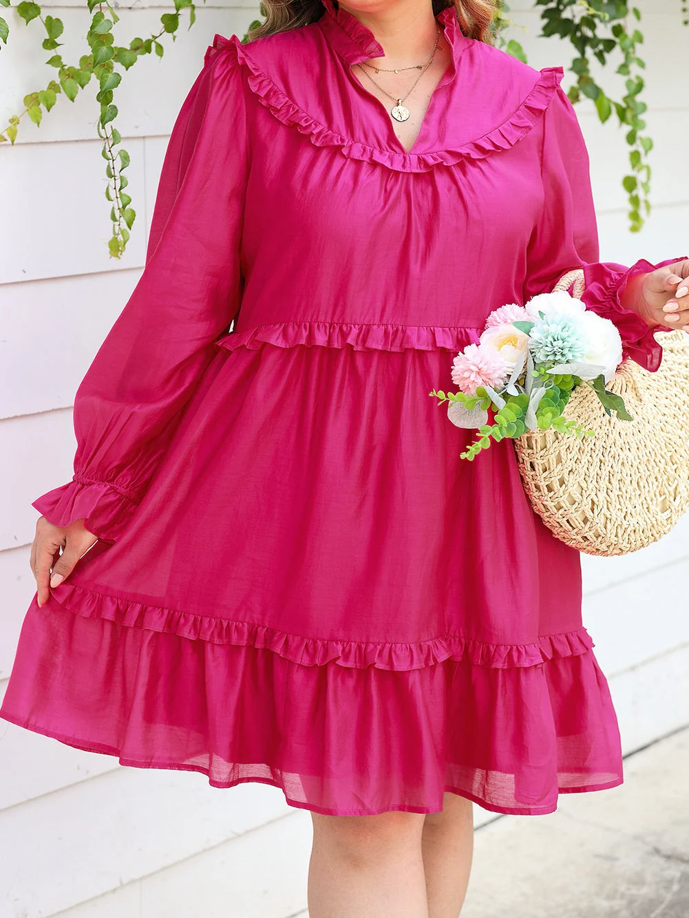 Rosy V-Neck Ruffle Detail Plus Size Shift Dress