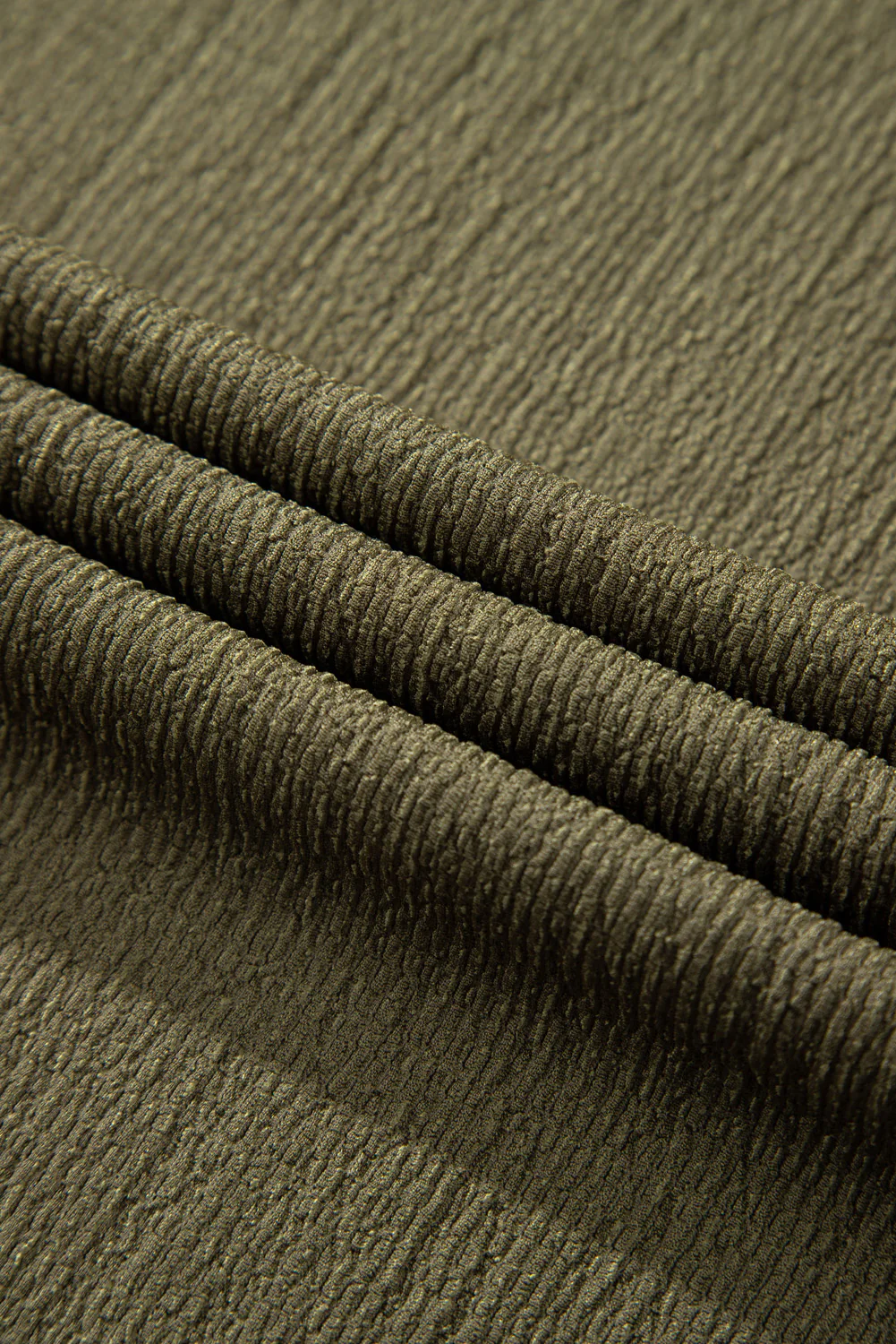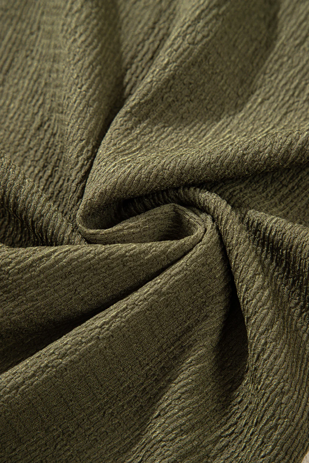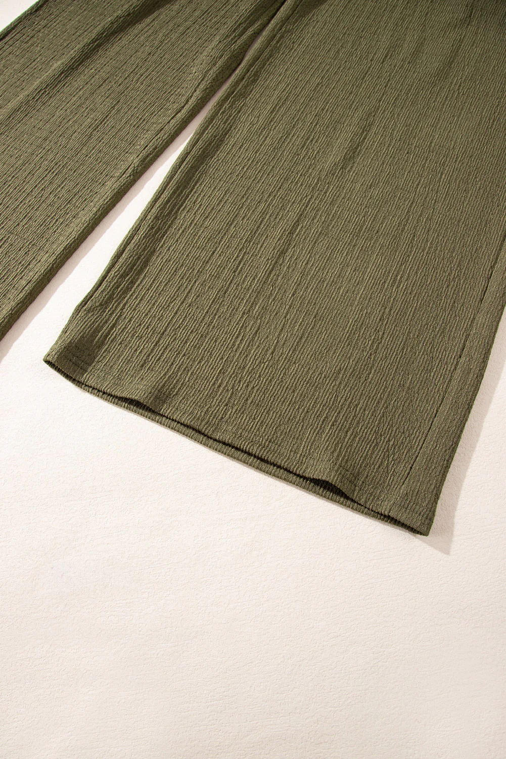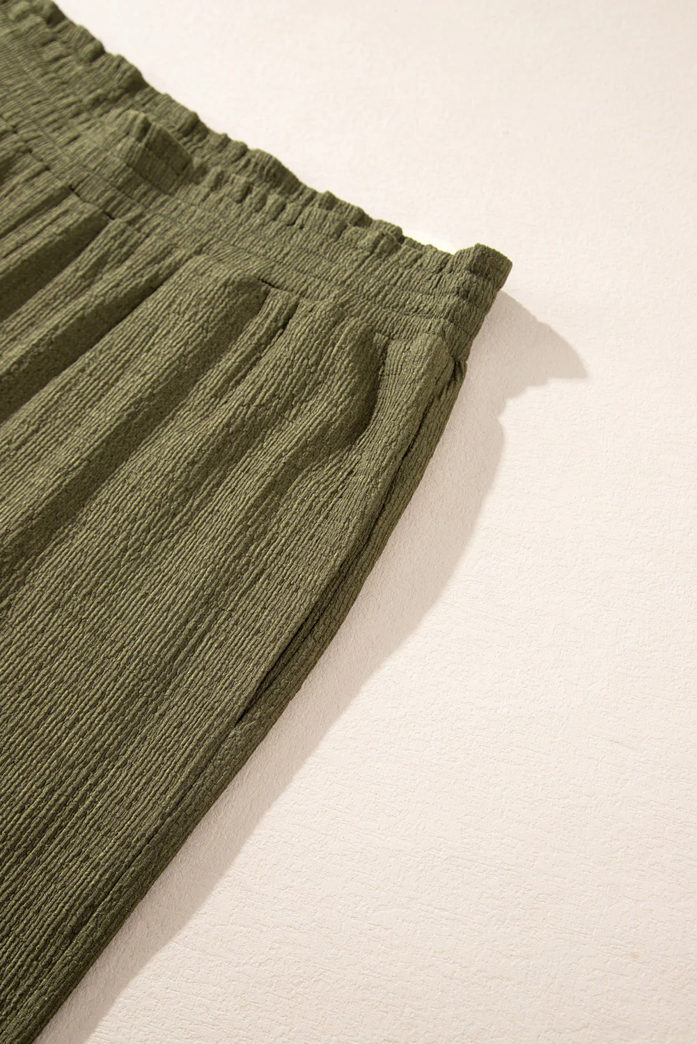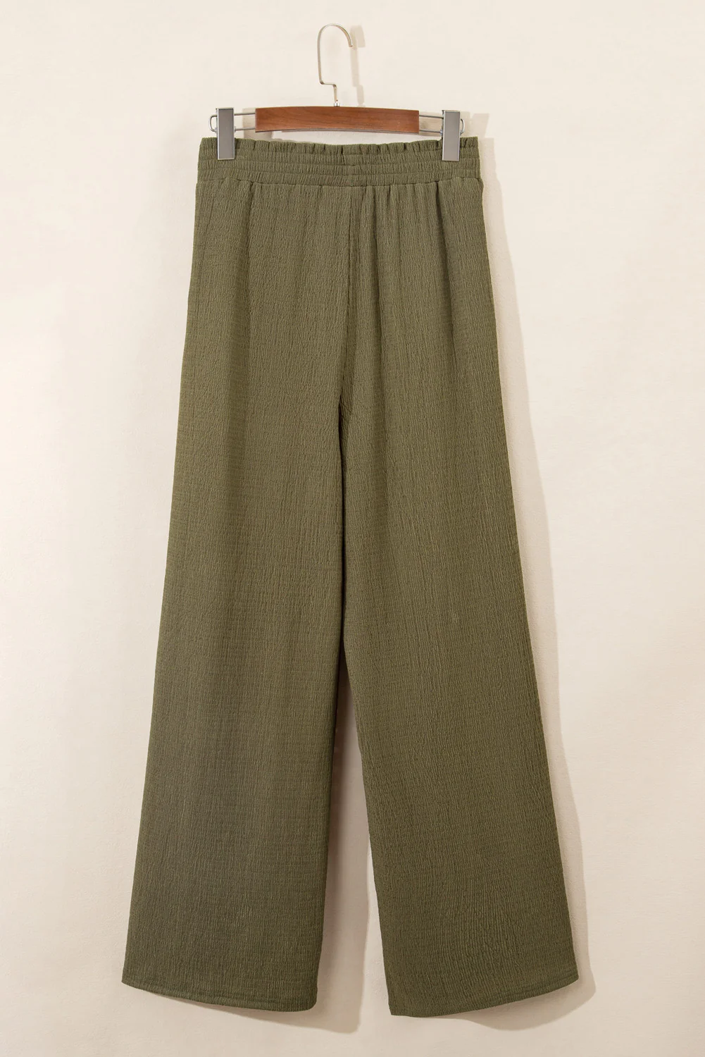 Jungle Green Plus Size Textured Shirred High Waist Casual Pants