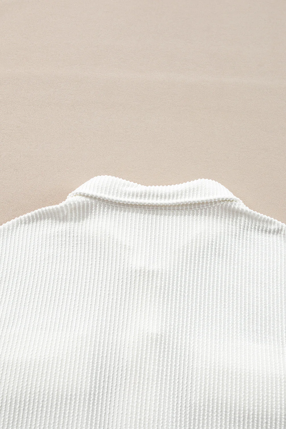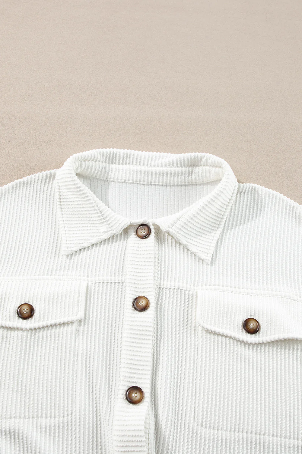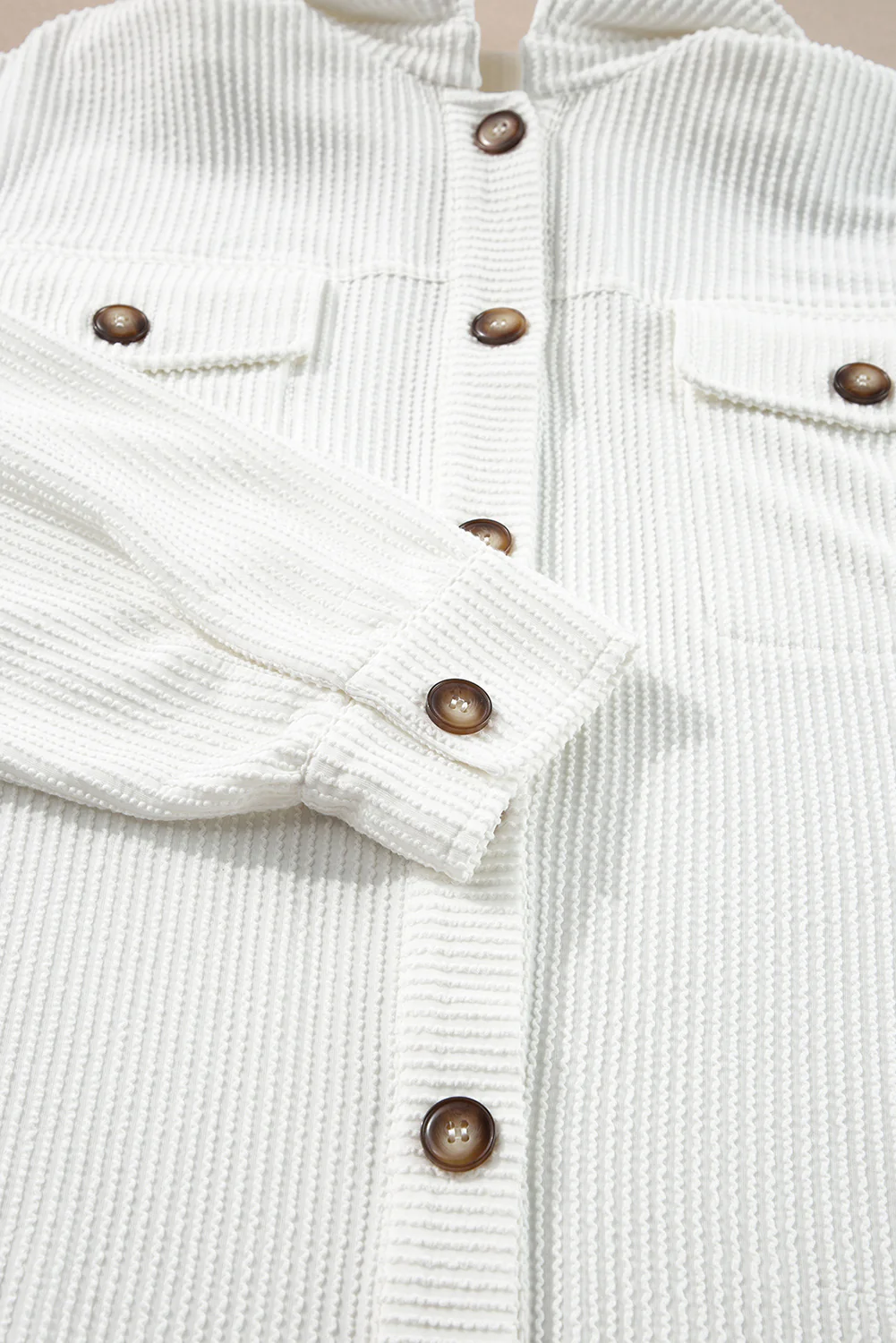 White Solid Corded Drop Shoulder Plus Size Shacket