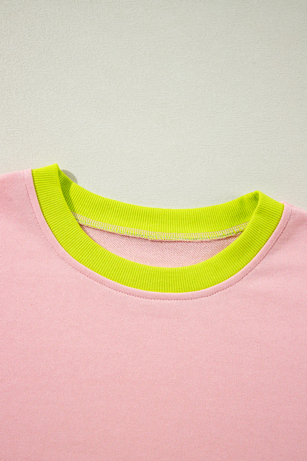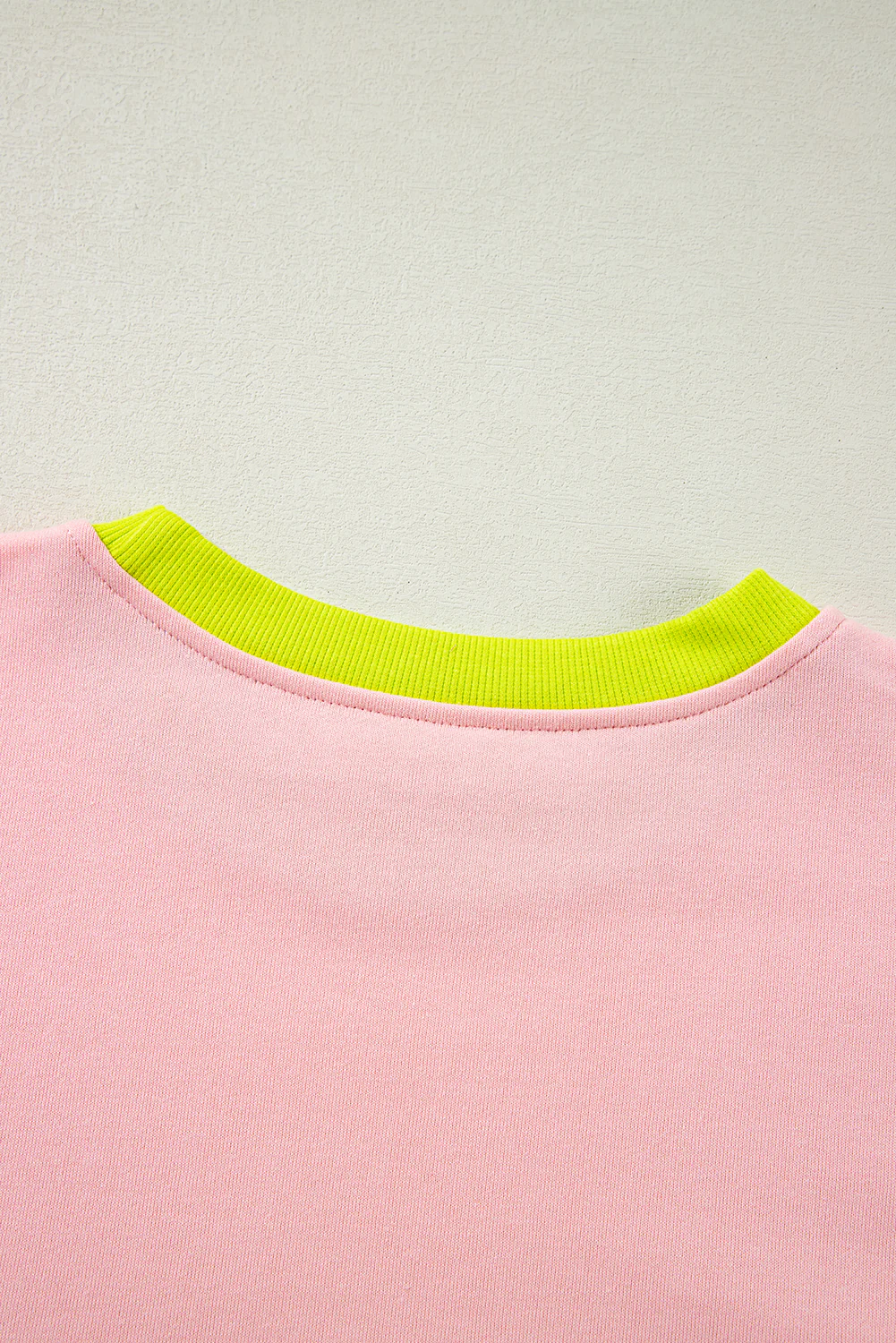 Light Pink Plus Size Colorblock Patchwork Crew Neck Sweatshirt