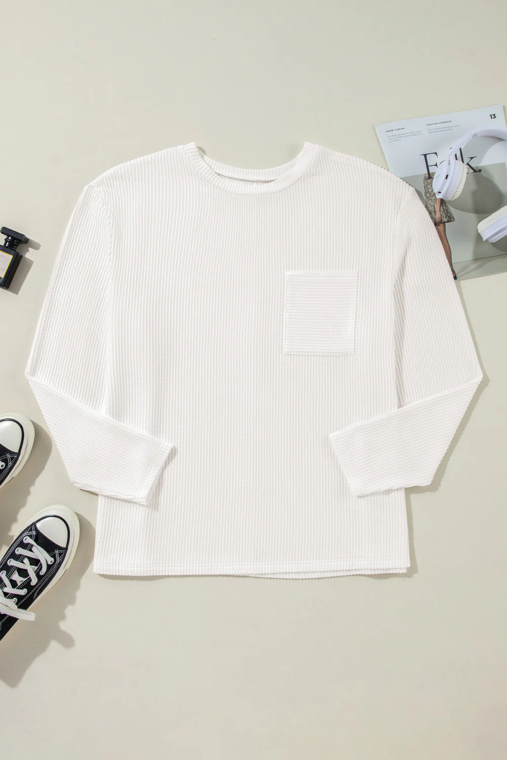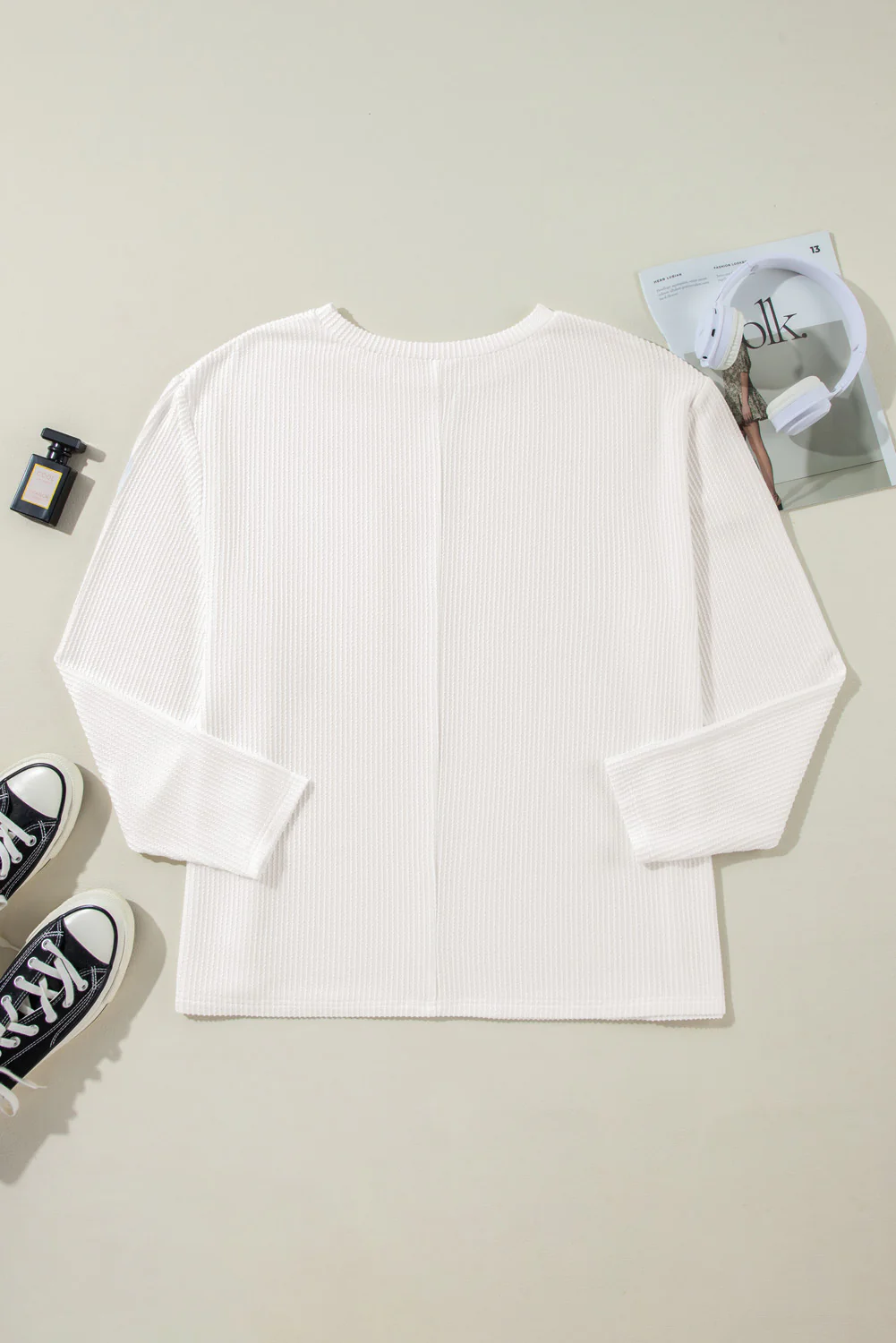 White Plus Size Ribbed Textured Long Sleeve T Shirt