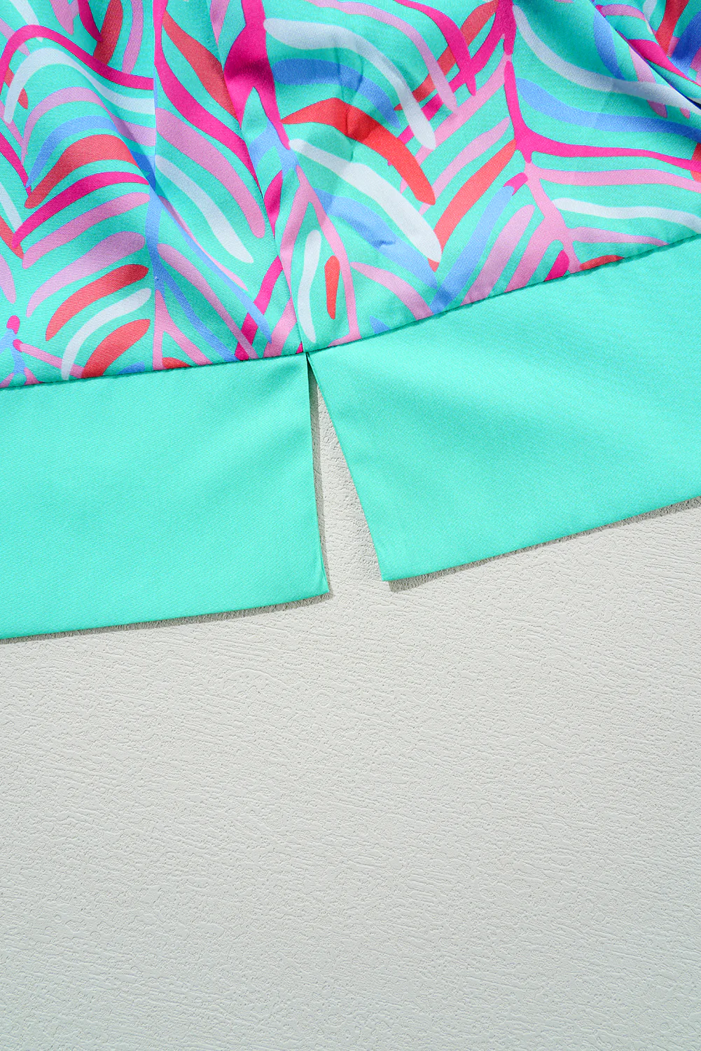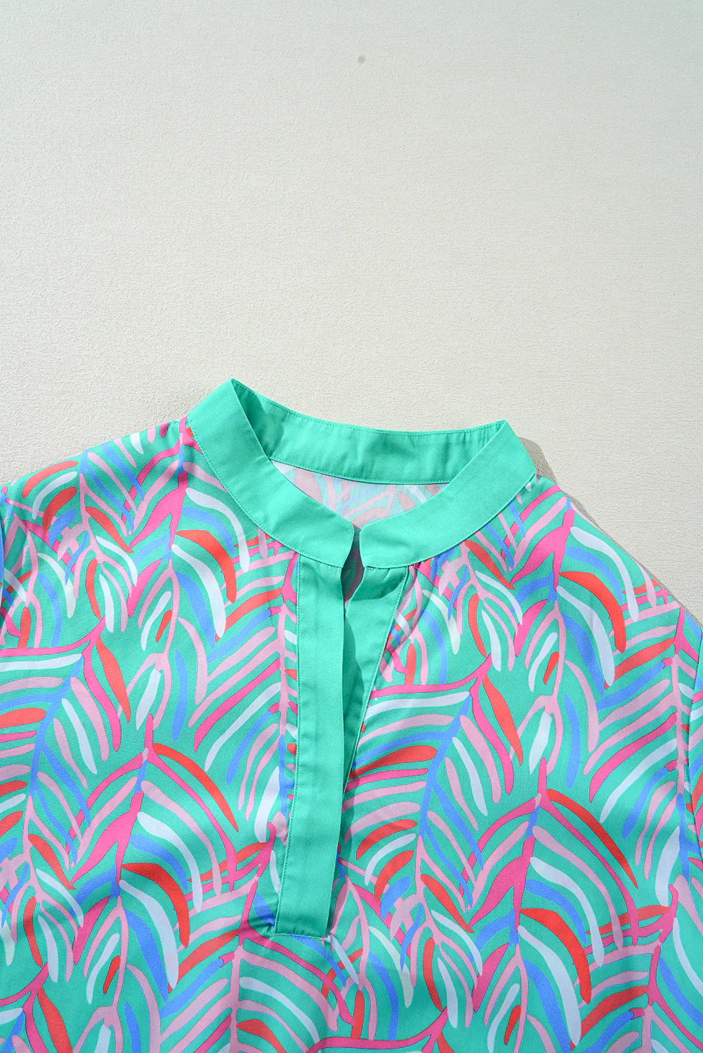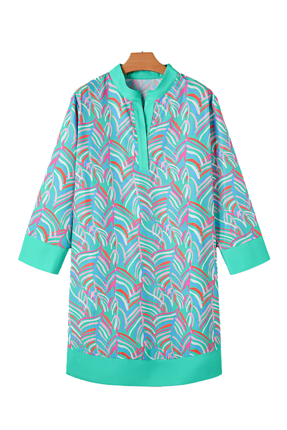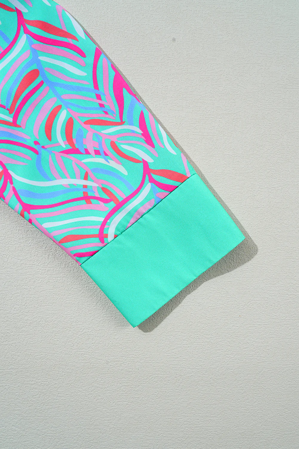 Green Plus Size Palm Pattern Long Sleeve Shift Dress