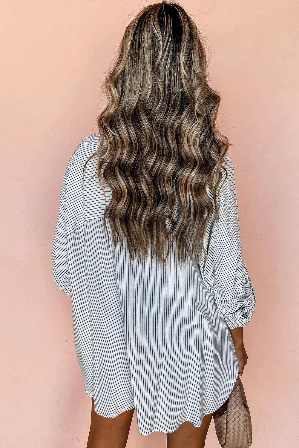 White Stripe Rolled Tab Sleeve Buttoned Plus Size Shirt
