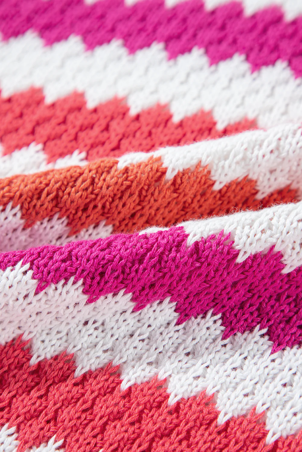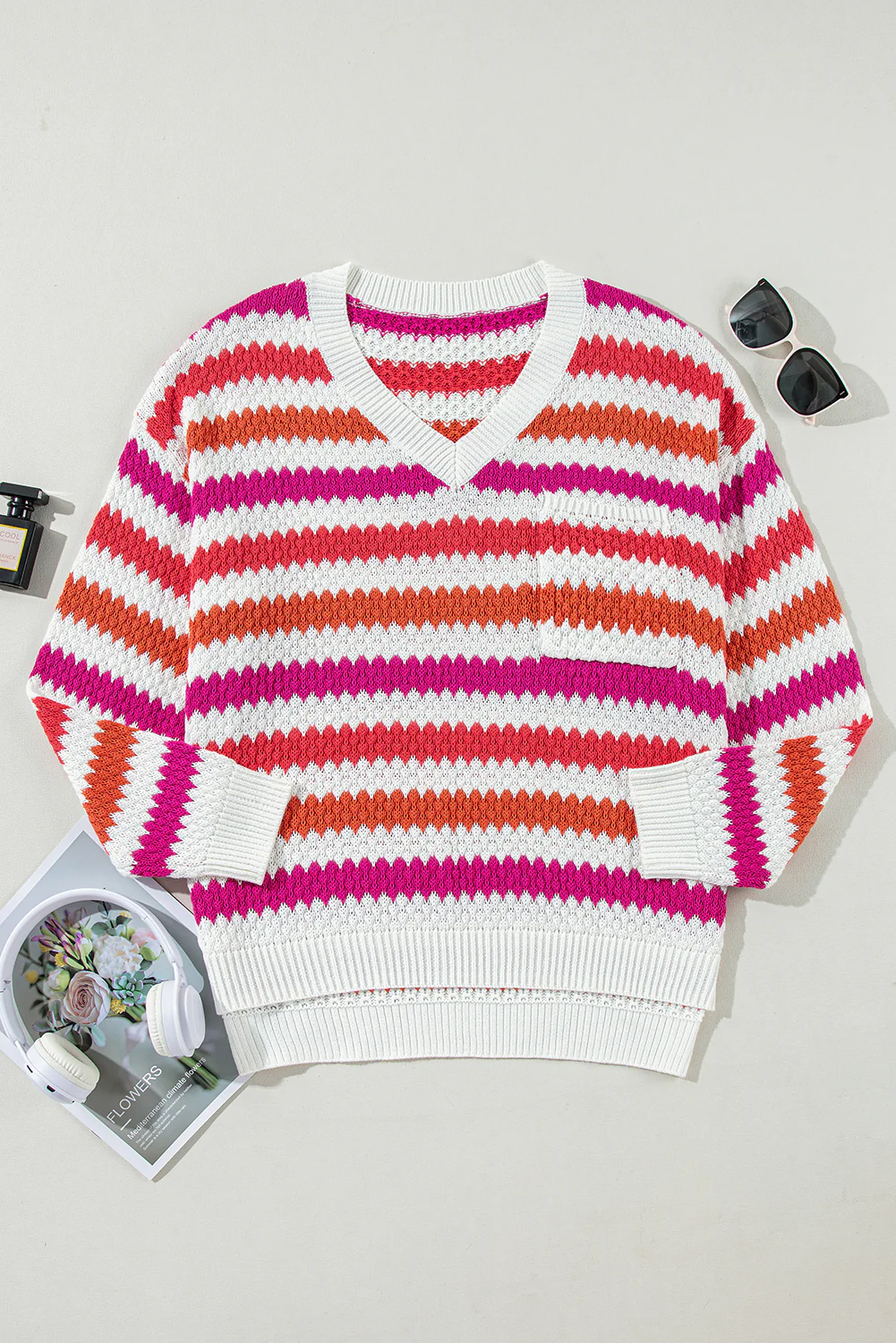 Pink Stripe V Neck Drop Shoulder Plus Size Sweater