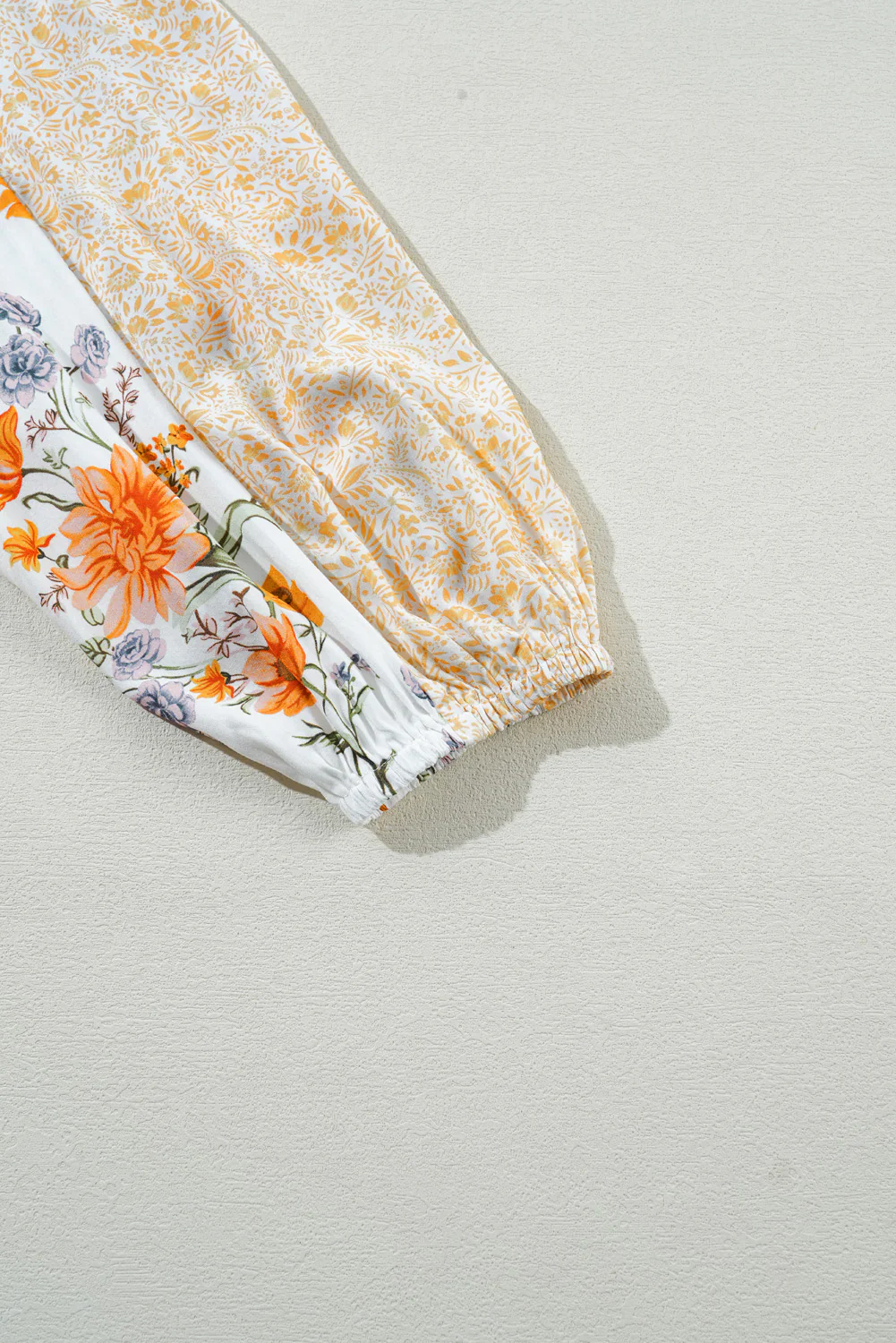 Apricot Pink Plus Size Flower Patchwork Exposed Seam High Low Top