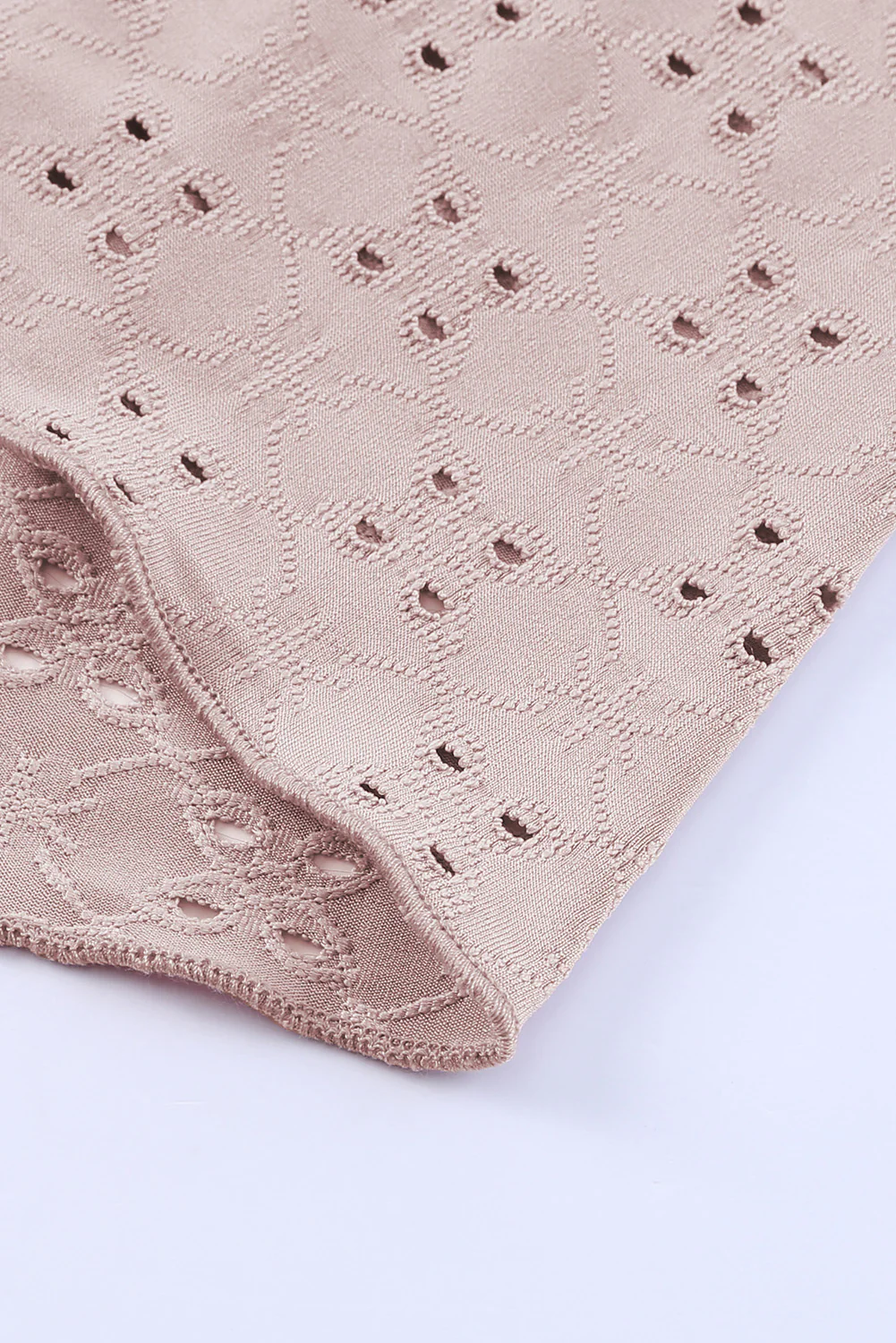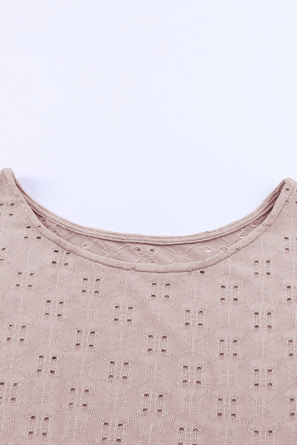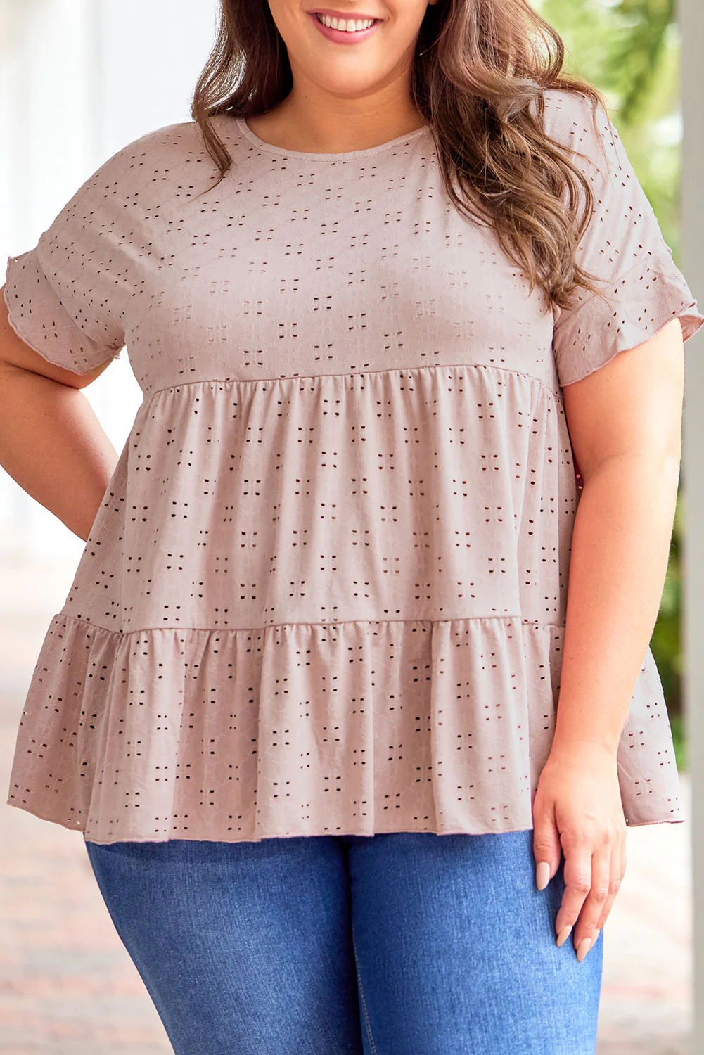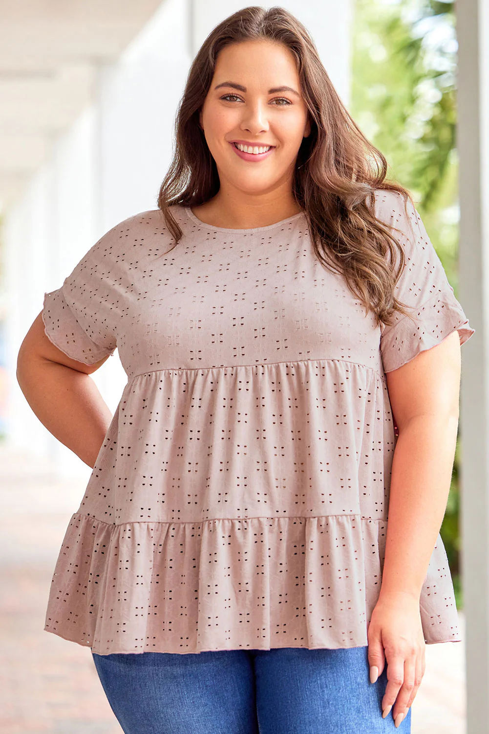 Pink Plus Size Eyelet Pattern Ruffle Sleeve Babydoll Top