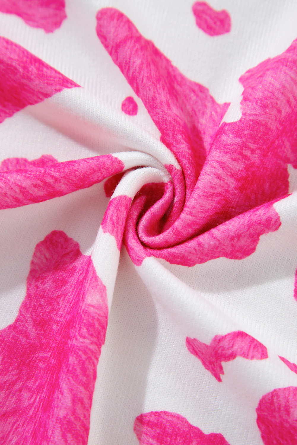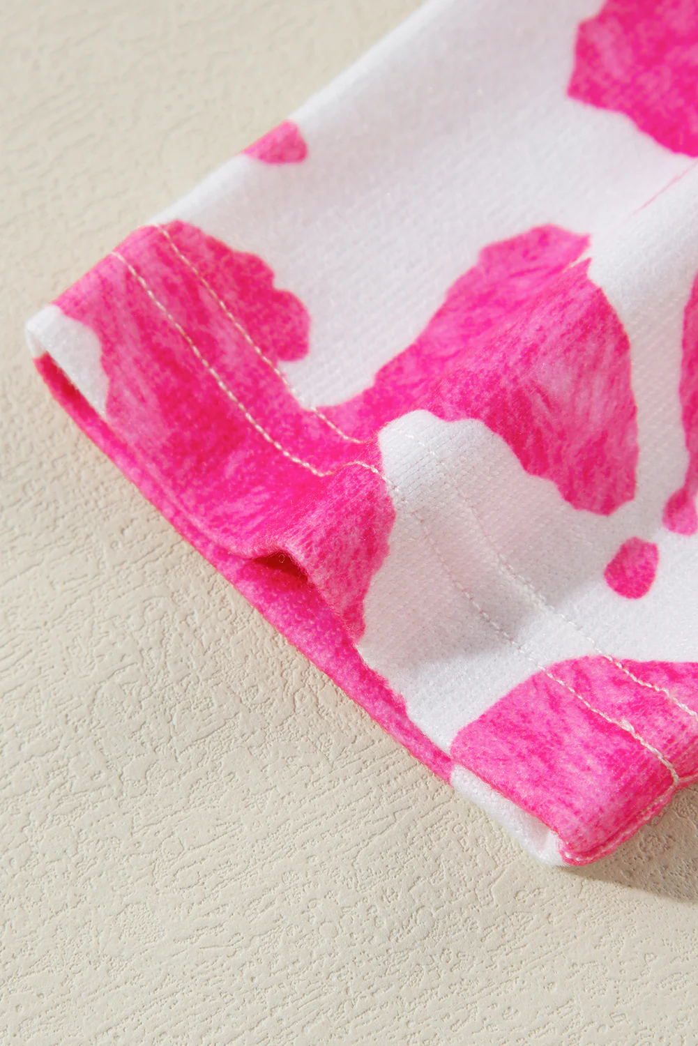 Pink Plus Size Abstract Floral Print V Neck Blouse