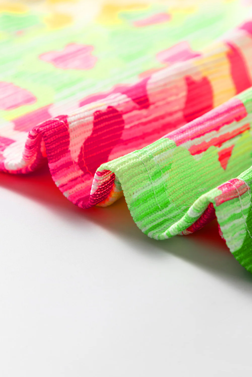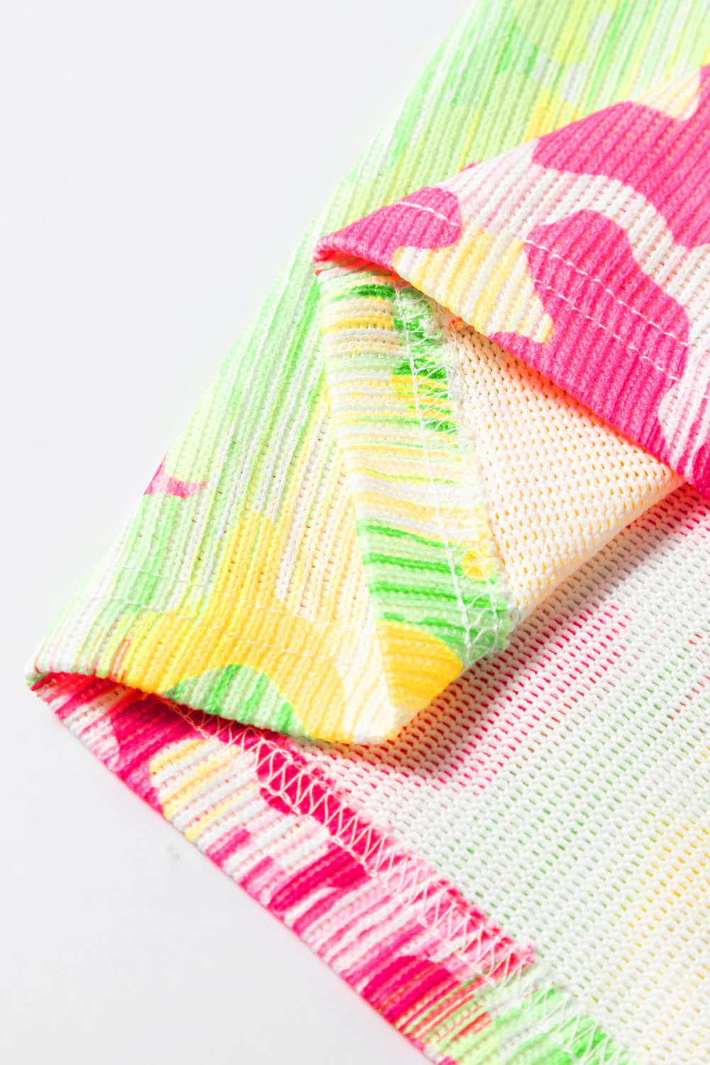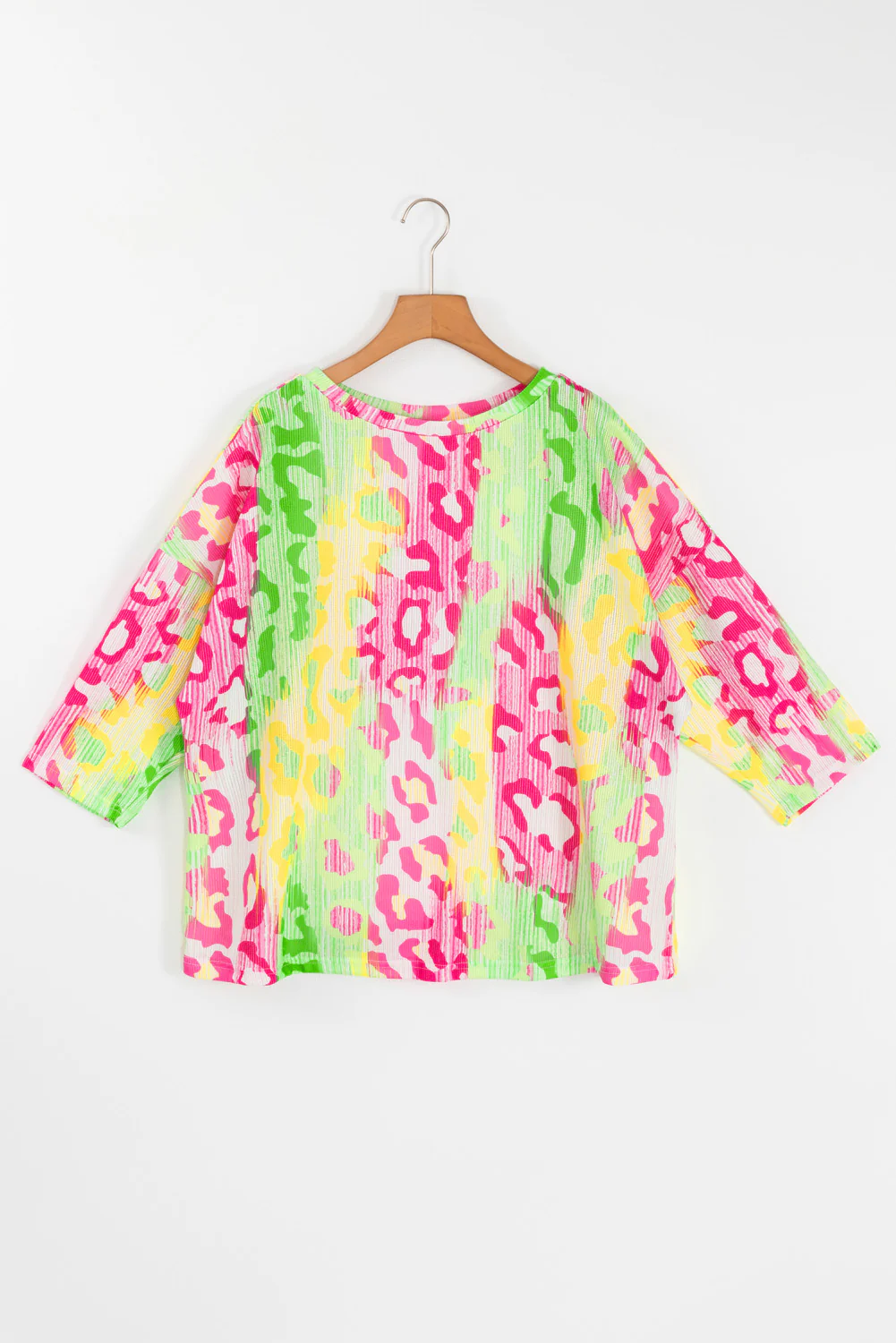 Multicolour Leopard Color Block Knitted Crewneck Plus Size T Shirt