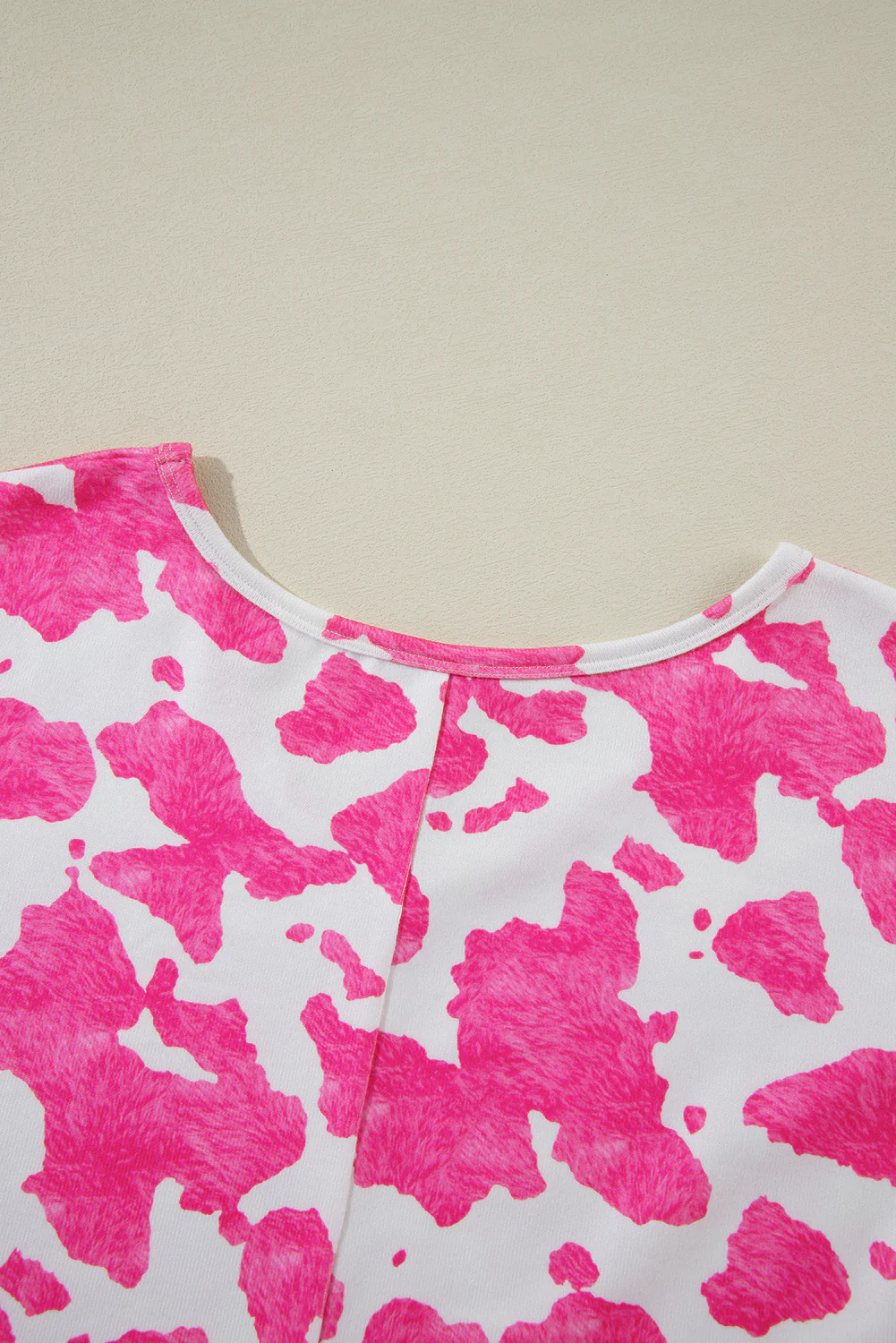 Rose Animal Print Long Sleeve V Neck Plus Size Top