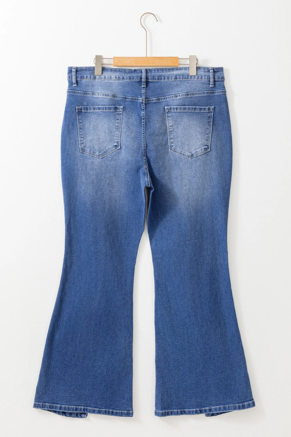 Blue Plus Size Exposed Seam High Waist Flare Jeans
