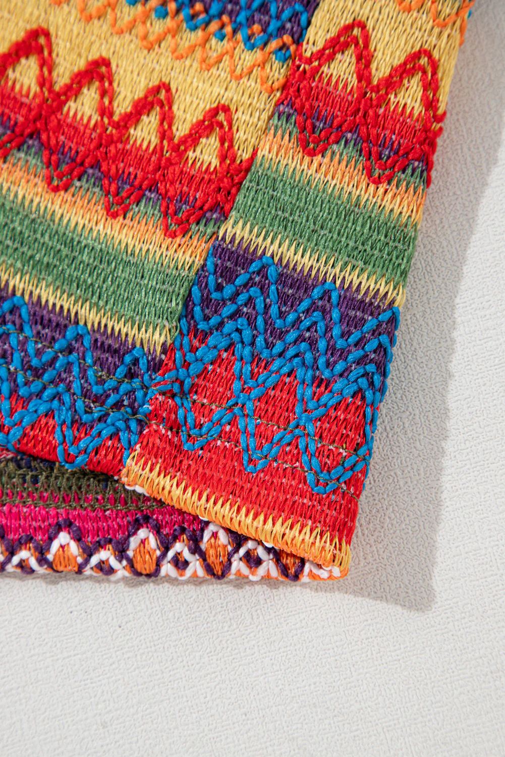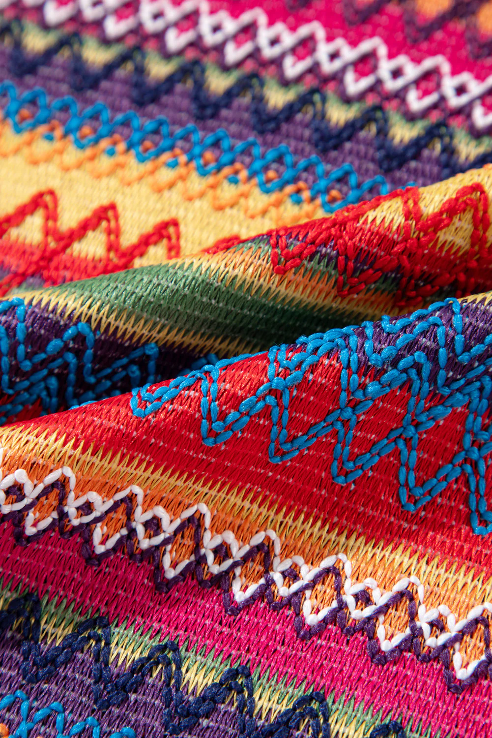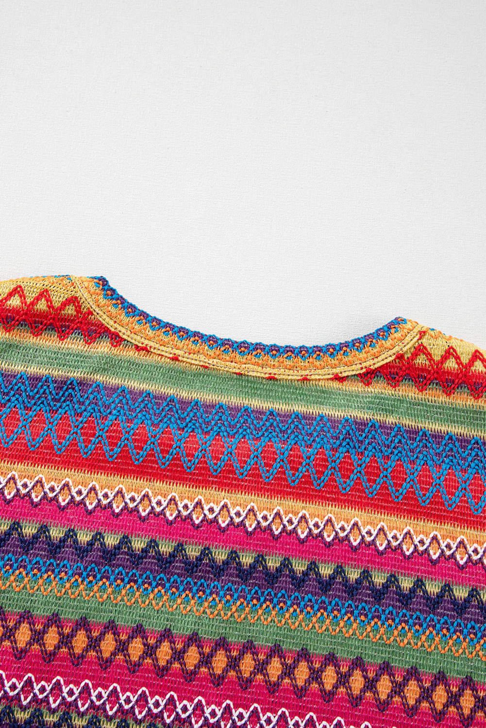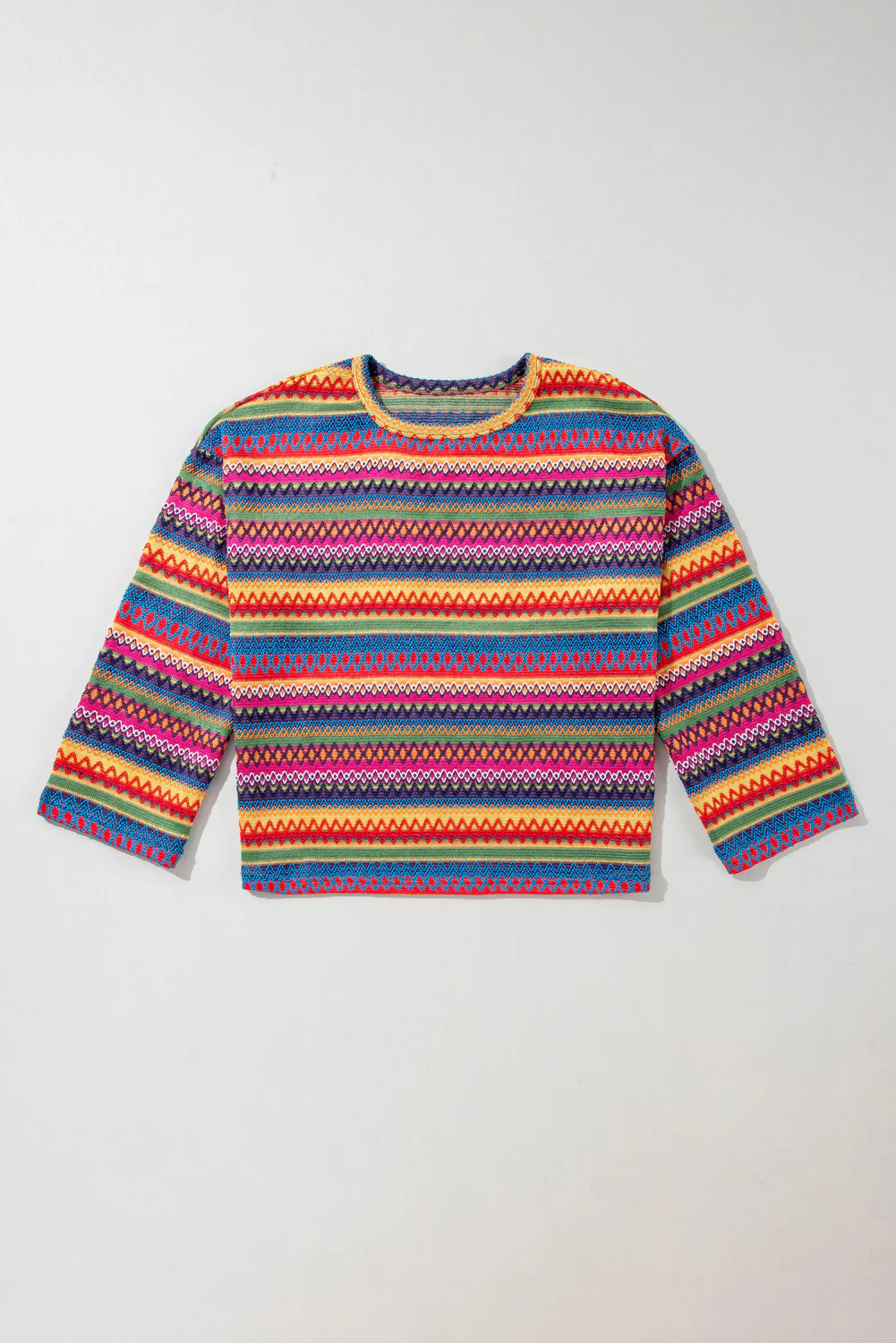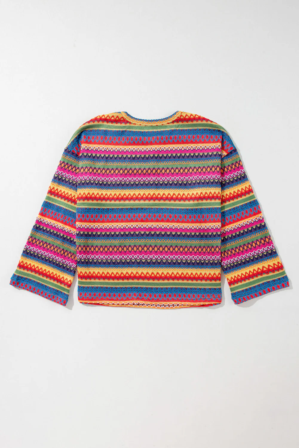 Red Ethnic Striped Print Long Sleeve Plus Size Top