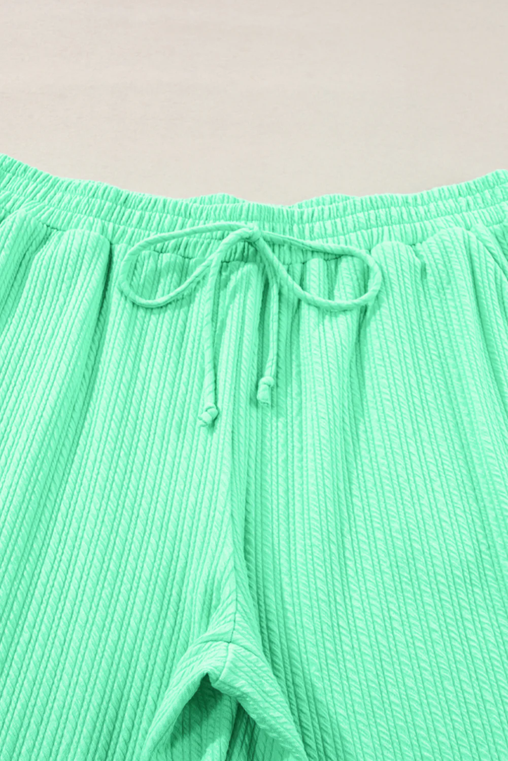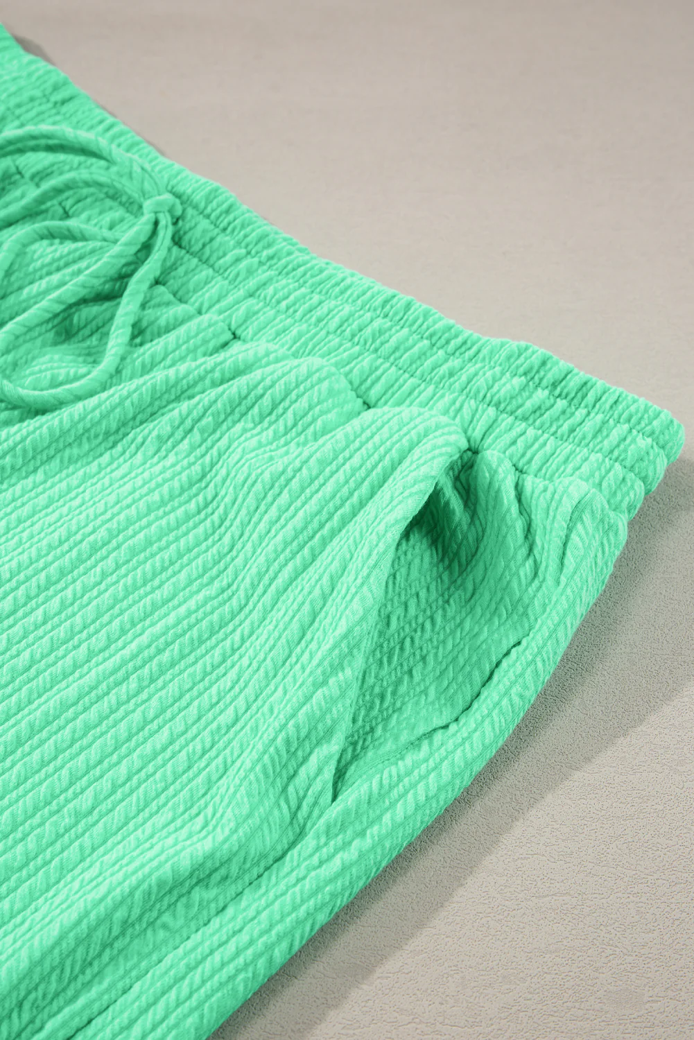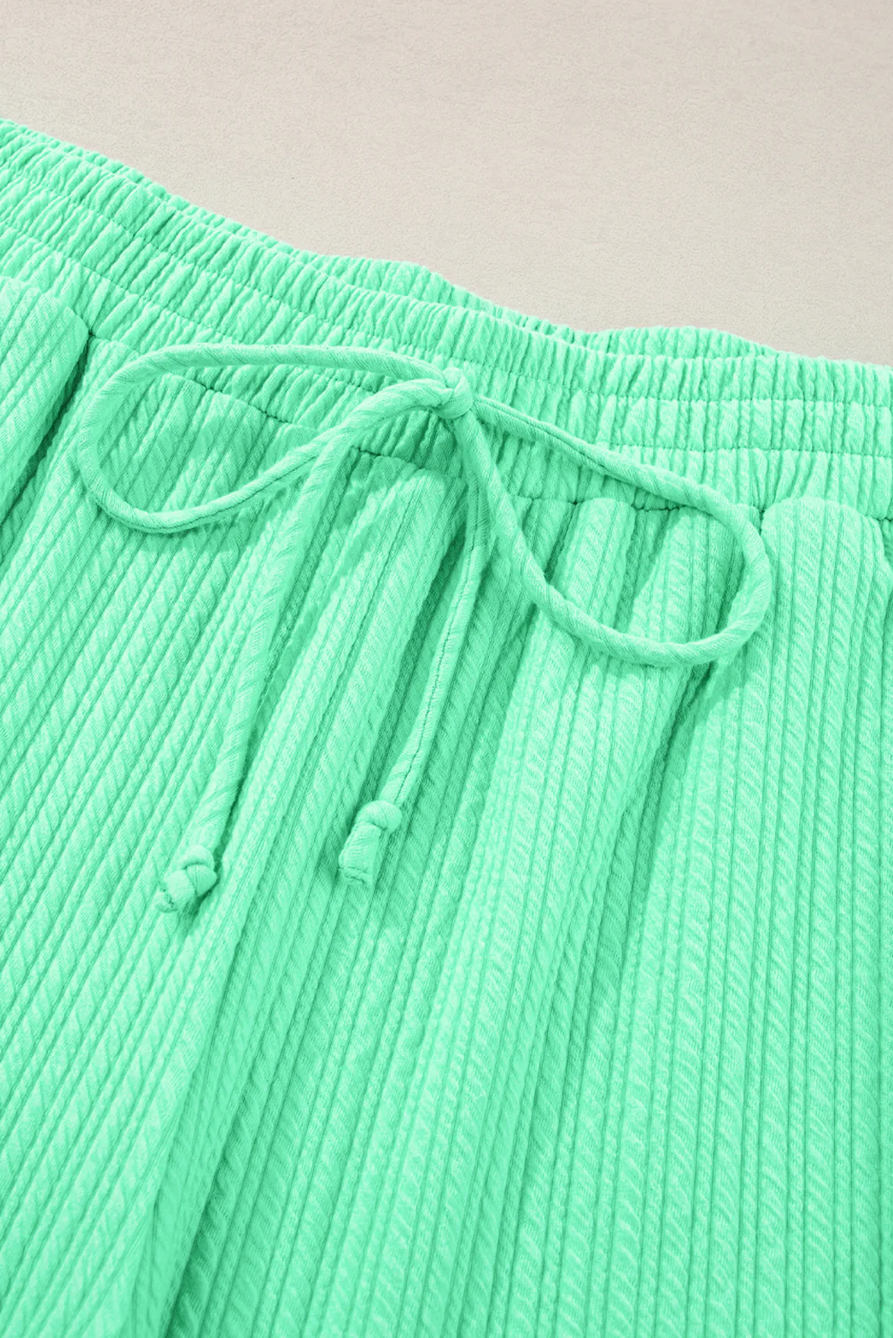 Mint Green Textured Batwing Sleeve Tee Wide Leg Pants Plus Size Set