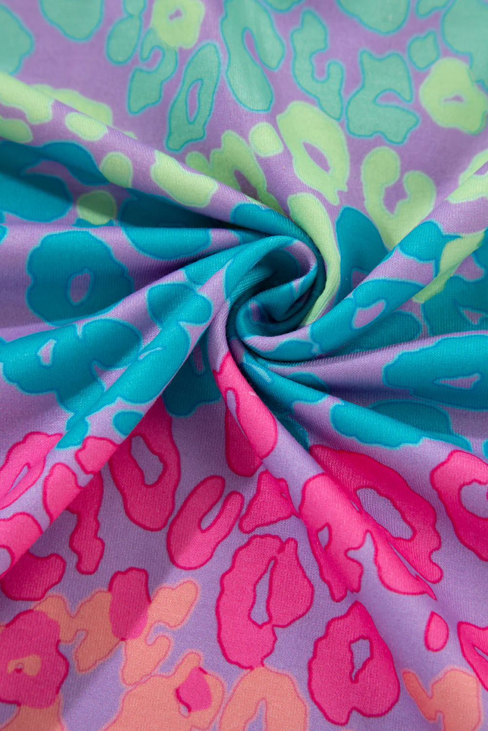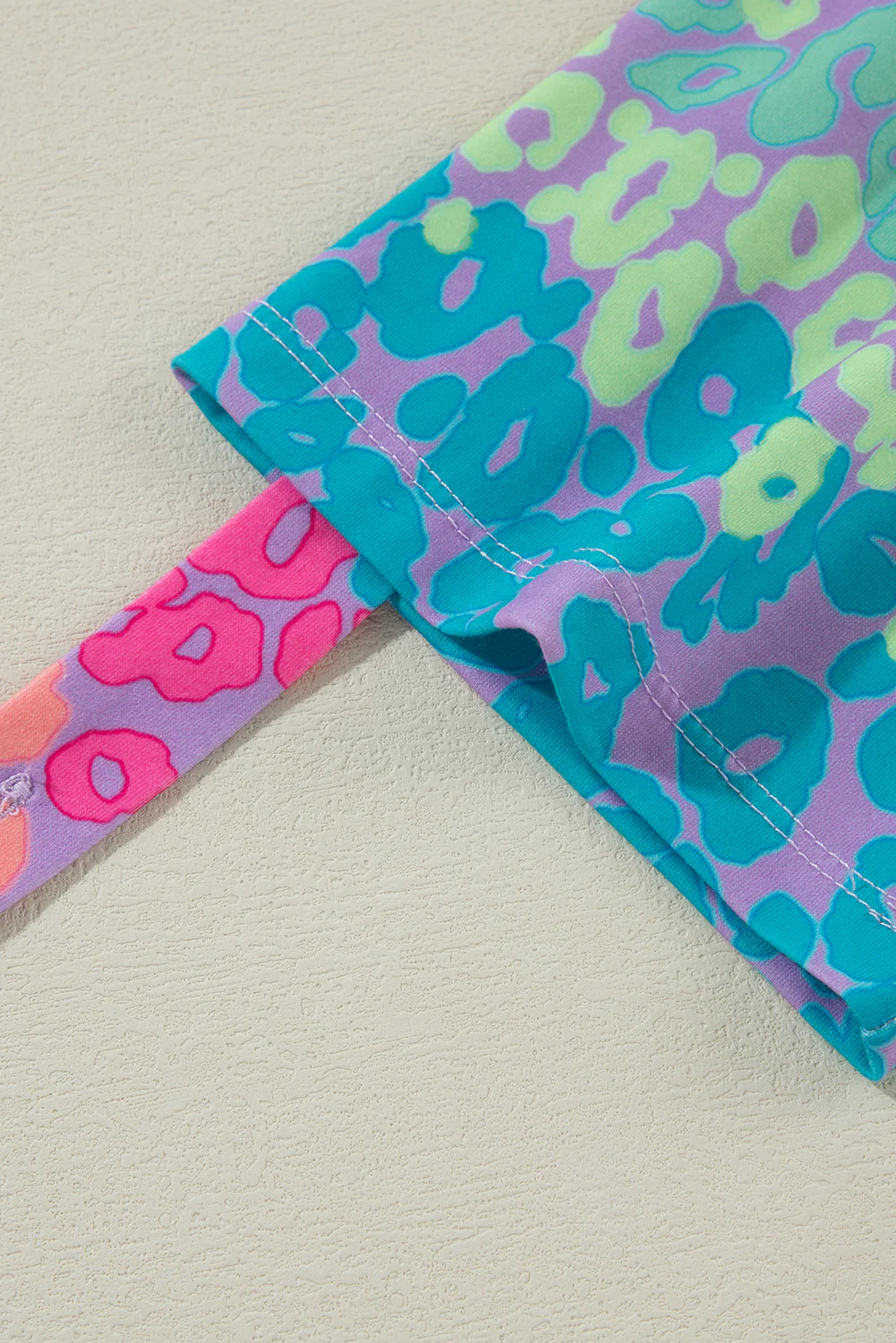 Green Leopard Stripes 3/4 Rolled Sleeve Plus Size Top